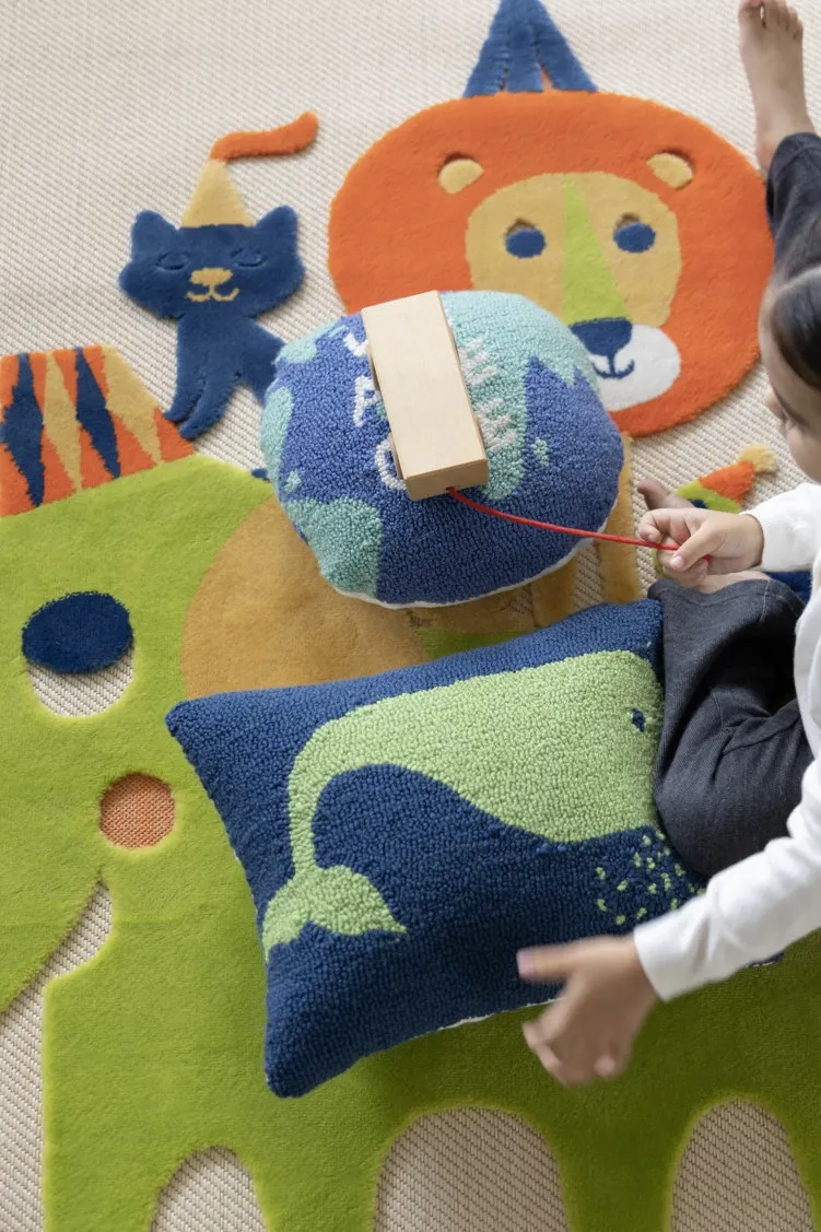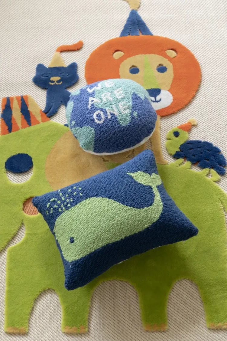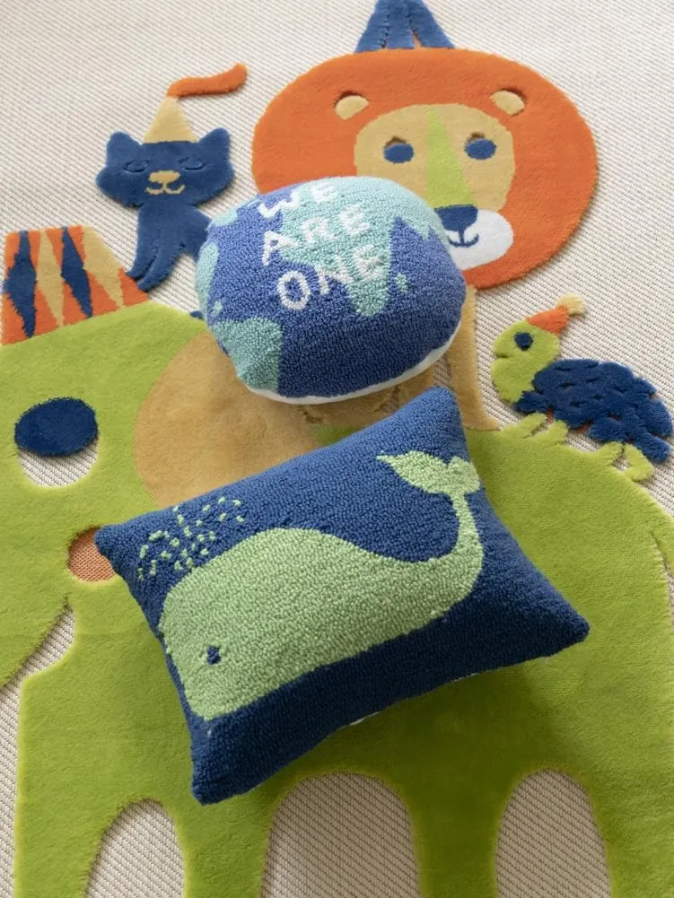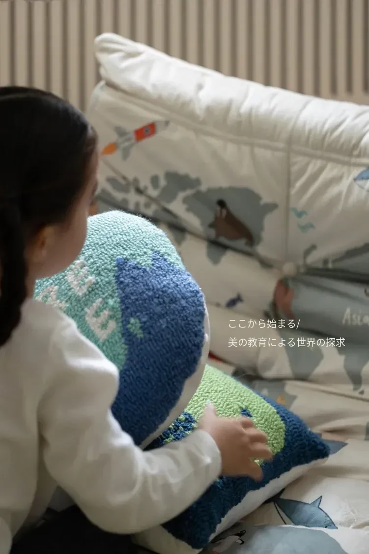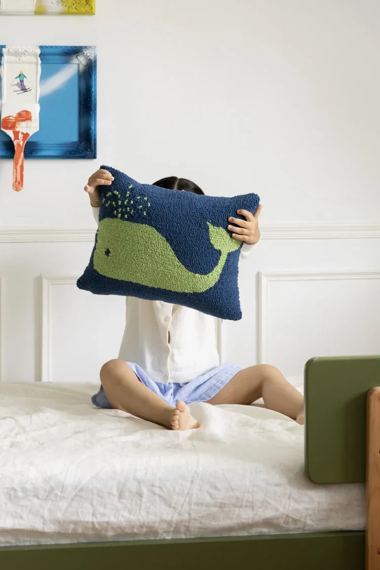 若奈 KIDS海洋の色彩をテーマにした大人も楽しめる刺繍クッション!デザイナーによる特別設計の子供用クジラ型腰枕で、心地よい抱き心地と楽しいインテリアを実現。お子様の成長をサポートする素敵なアイテムです!