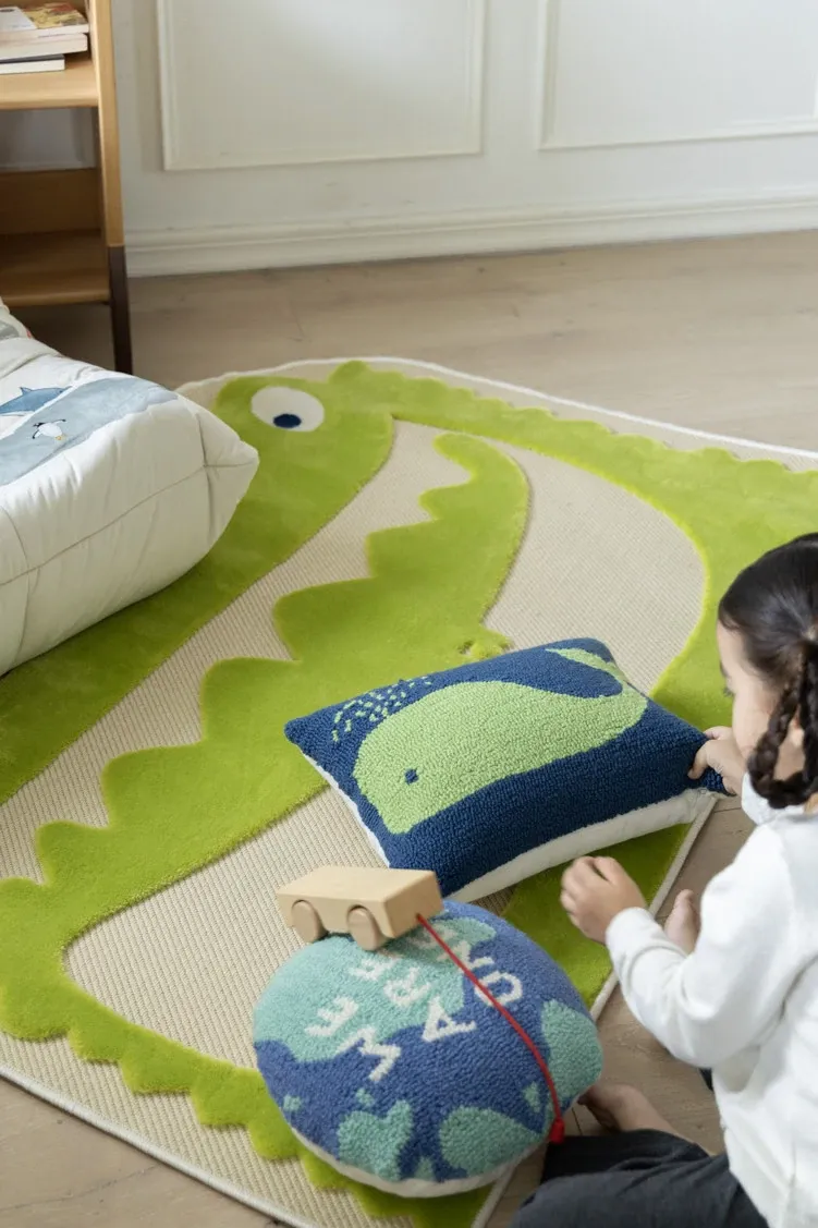 若奈キッズ 大型カリフォルニアラグ 洗える!勇敢な探検家の立体浮き彫り小さなワニデザインの子供用ラグ