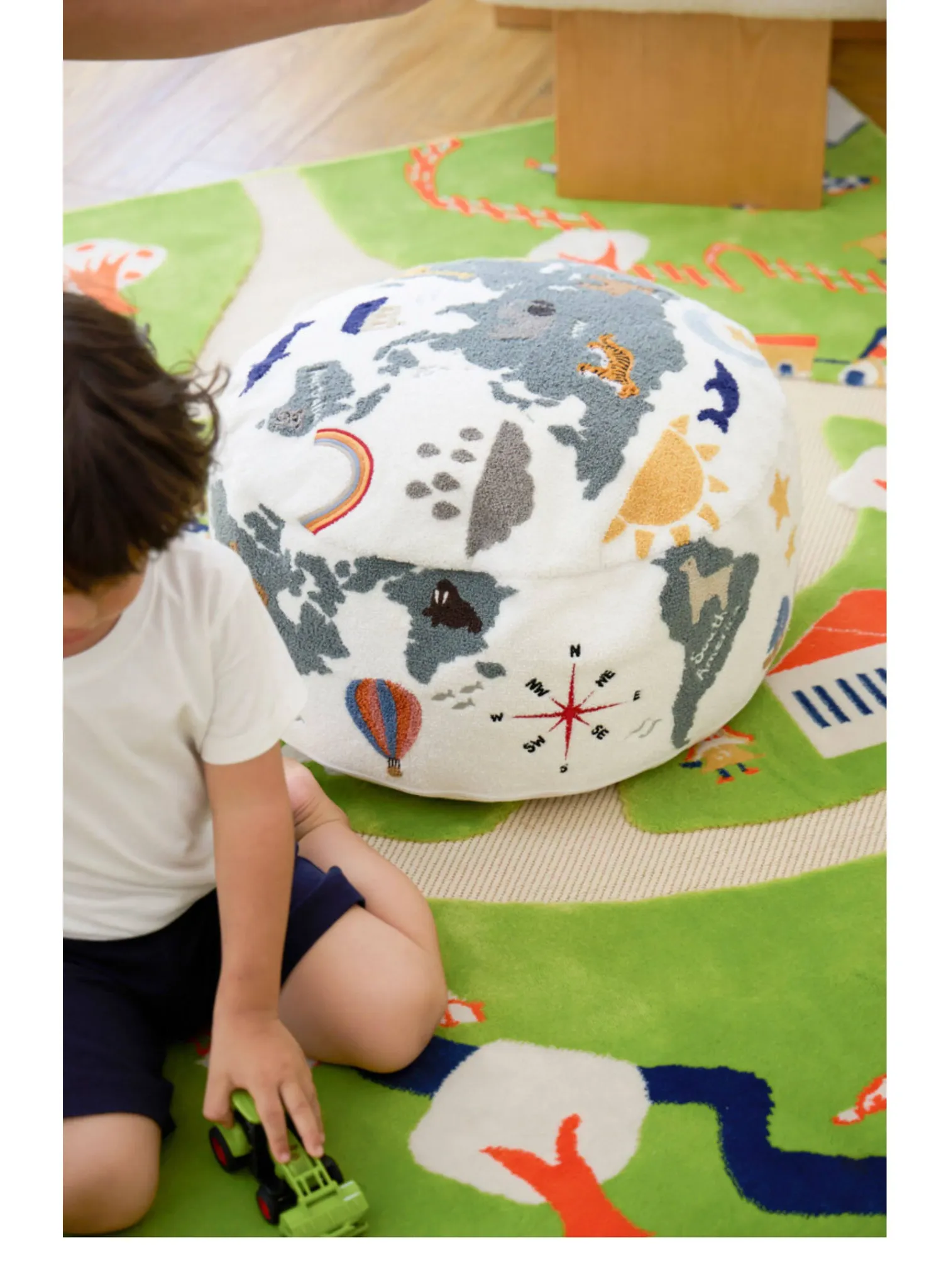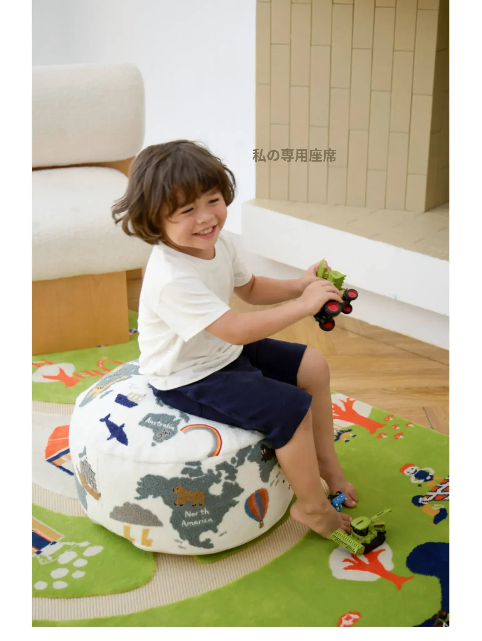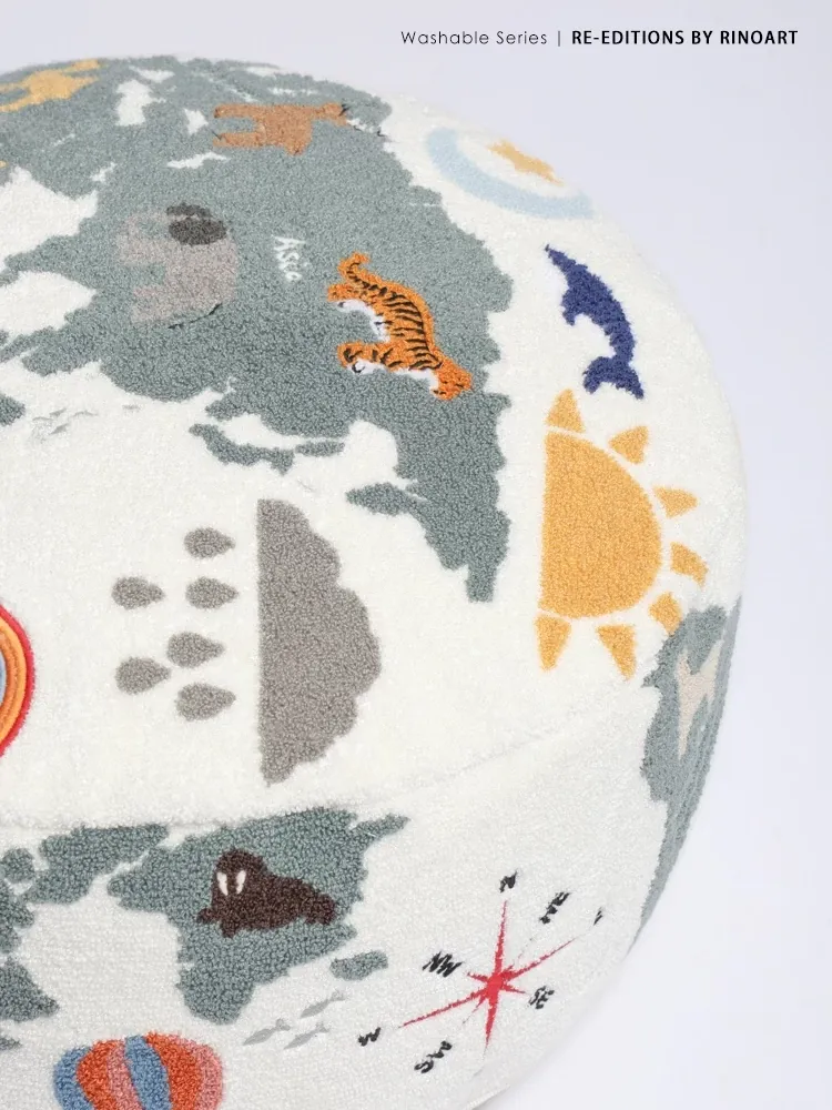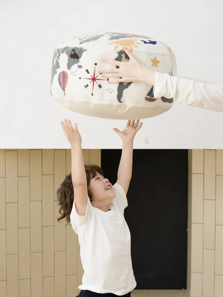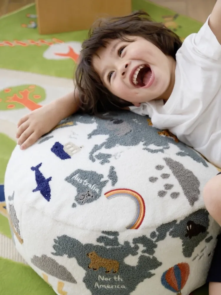 若奈 KIDS 大きな子供用ホーム「世界を旅する」立体刺繍の子供用スツール、リビングにぴったり、洗える足置き台!快適さと楽しさを兼ね備えたアイテムで、お子様の遊び空間を彩ります。
