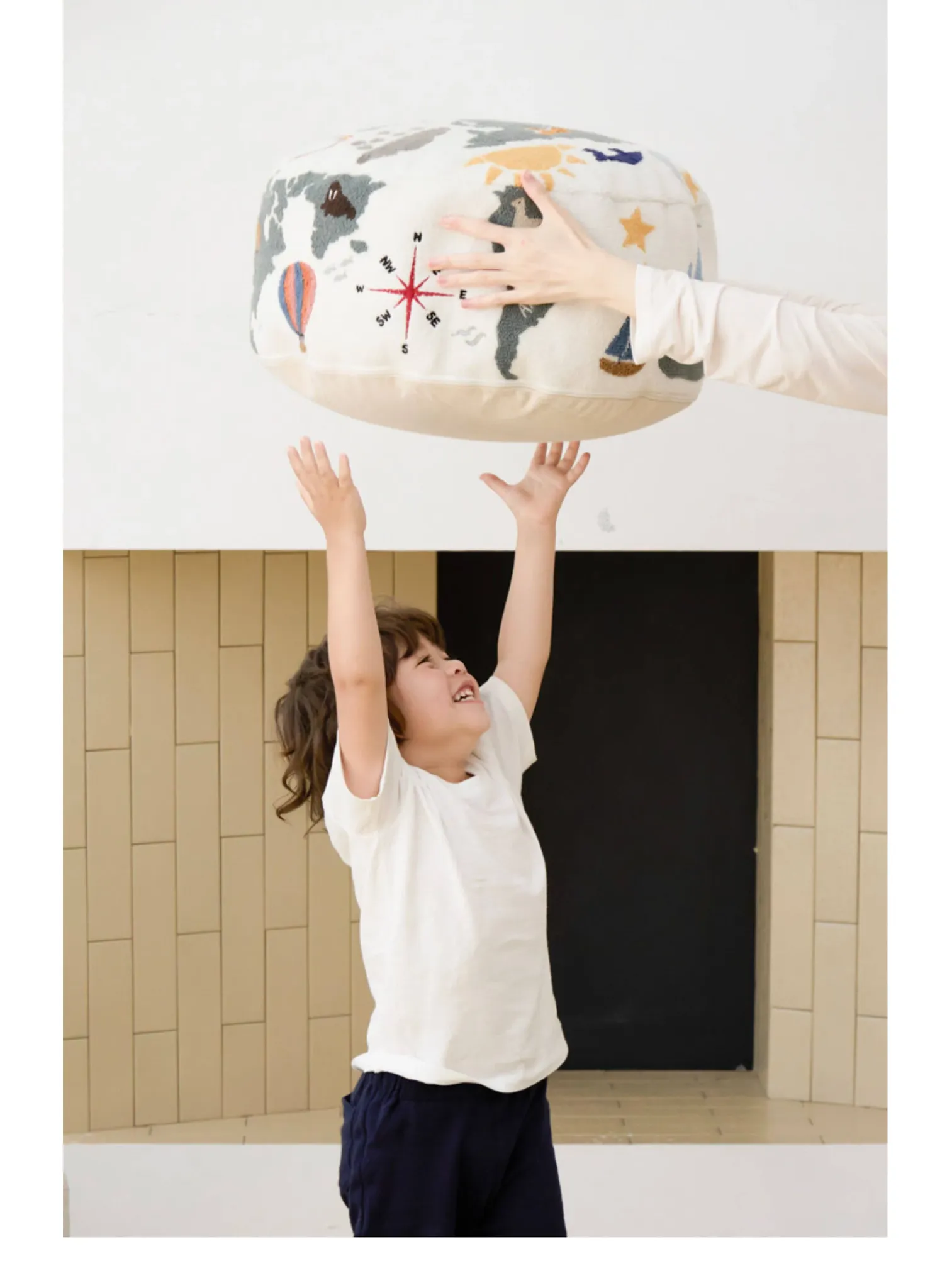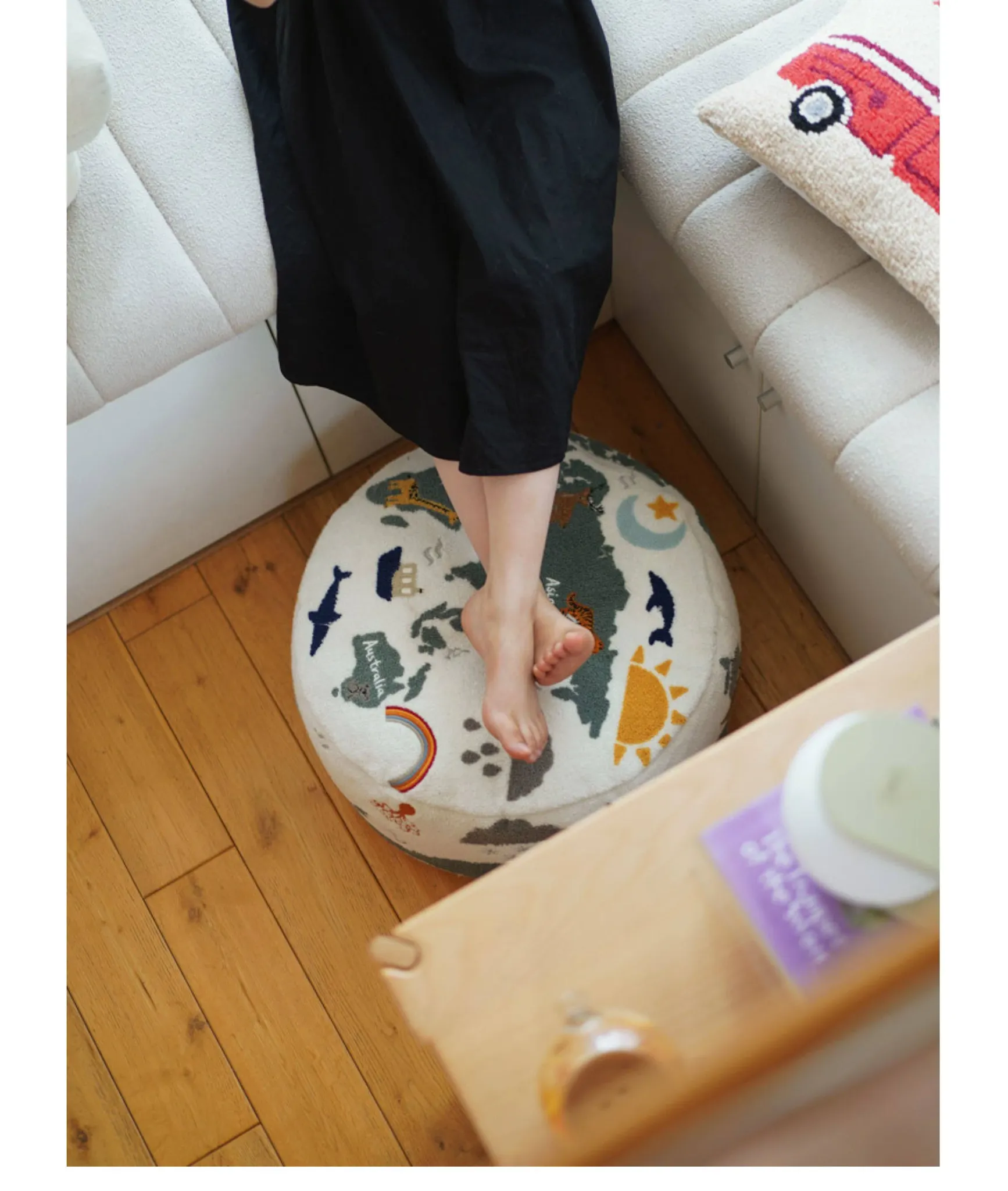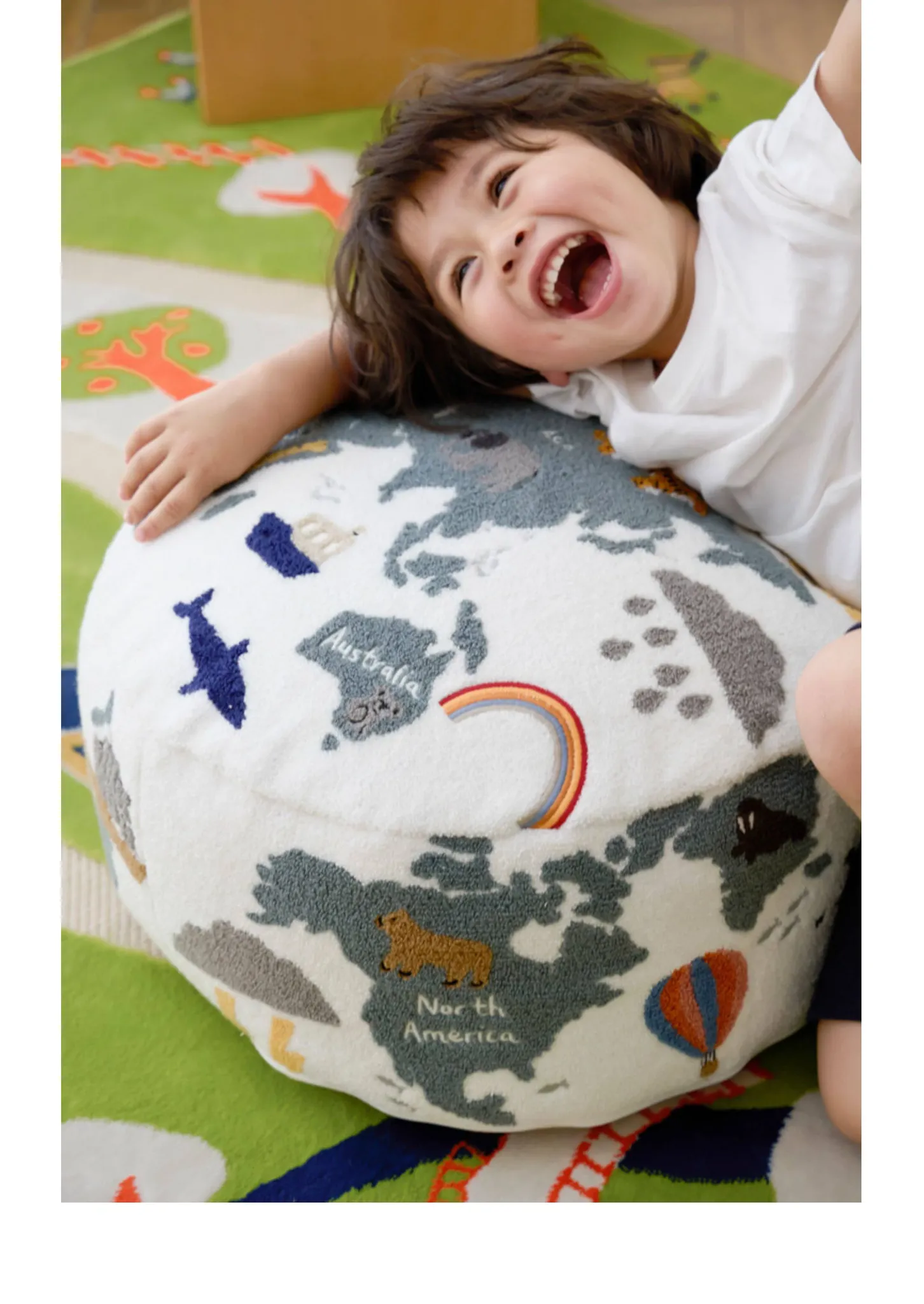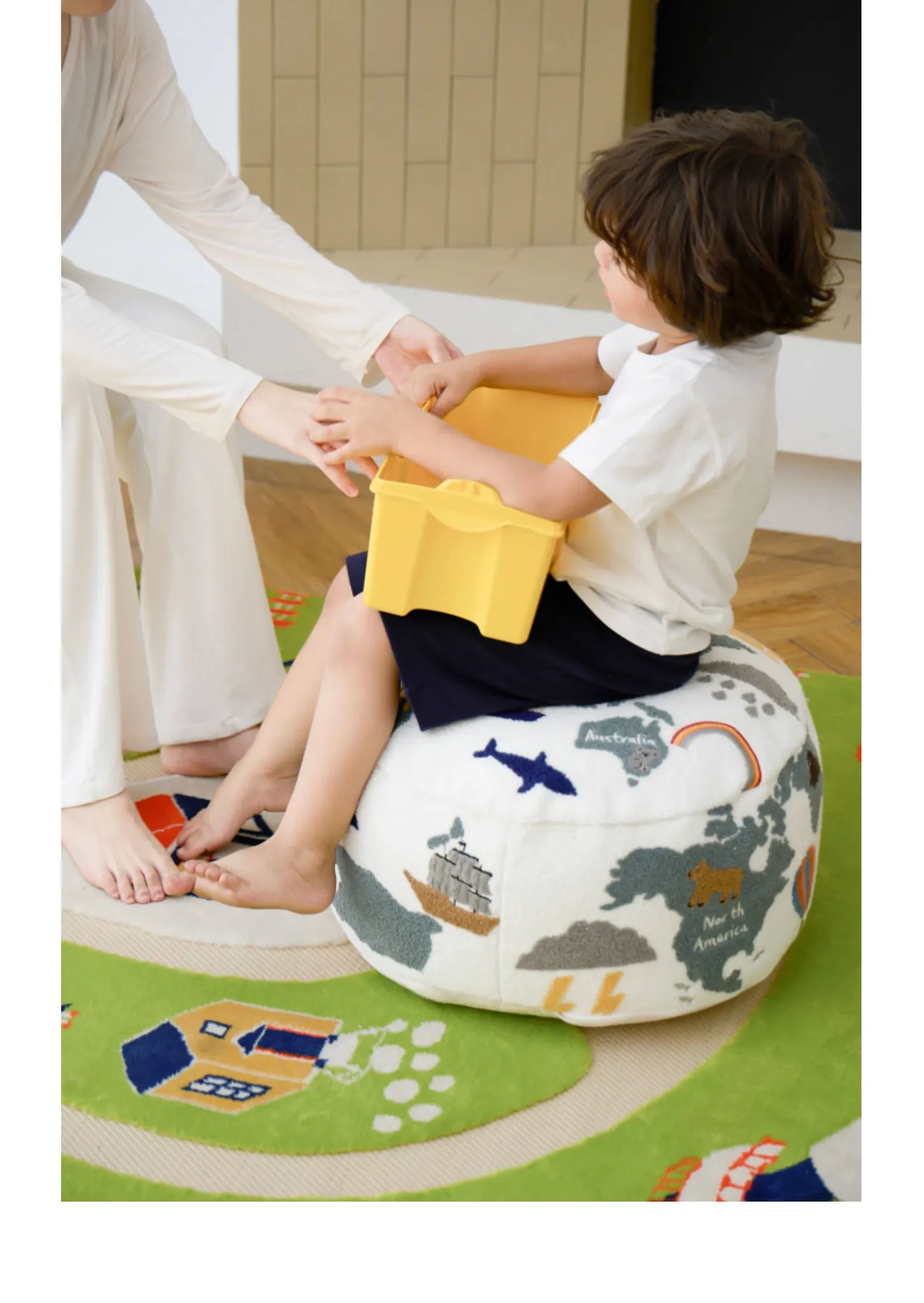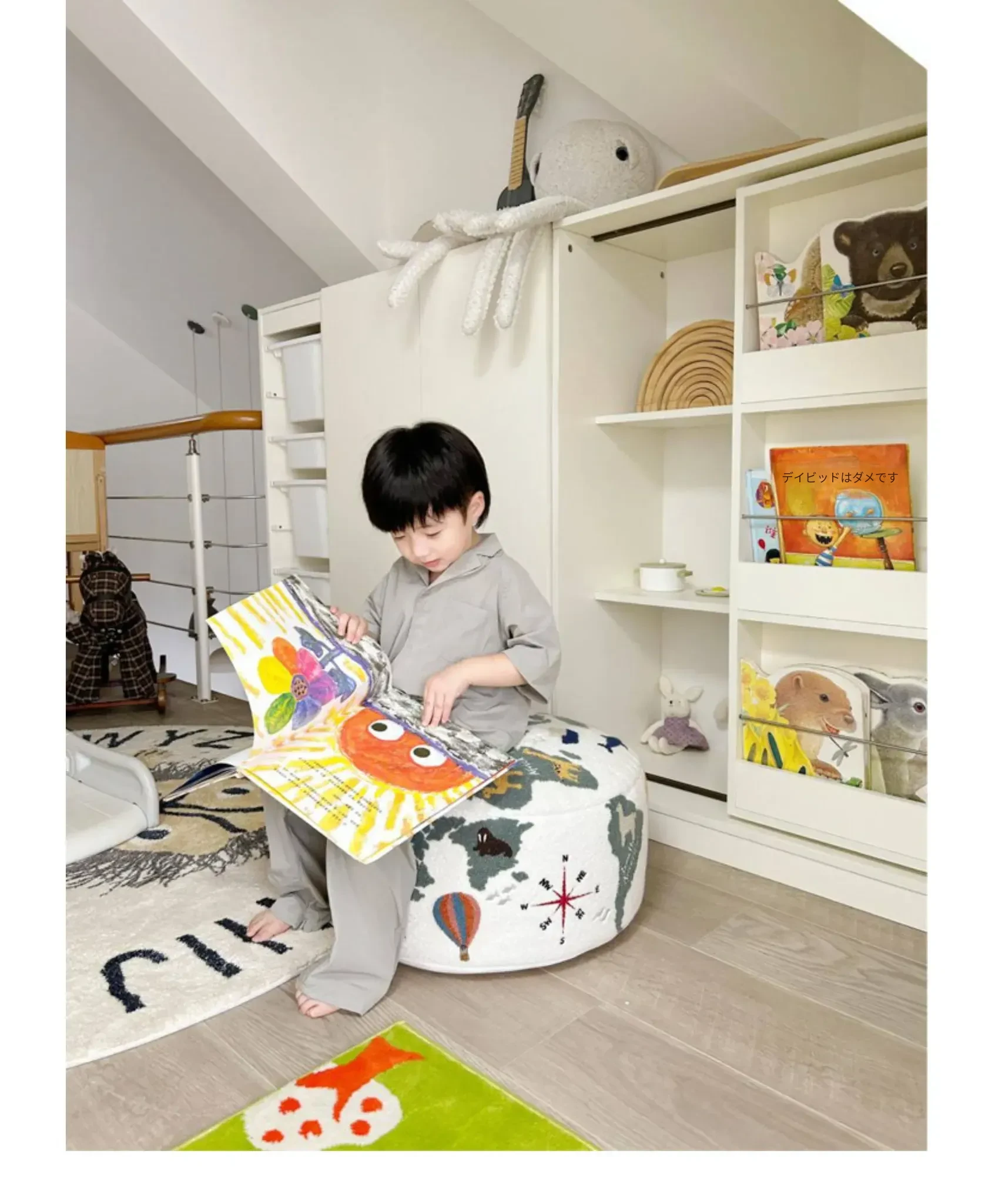 若奈 KIDS 大きな子供用ホーム「世界を旅する」立体刺繍の子供用スツール、リビングにぴったり、洗える足置き台!快適さと楽しさを兼ね備えたアイテムで、お子様の遊び空間を彩ります。