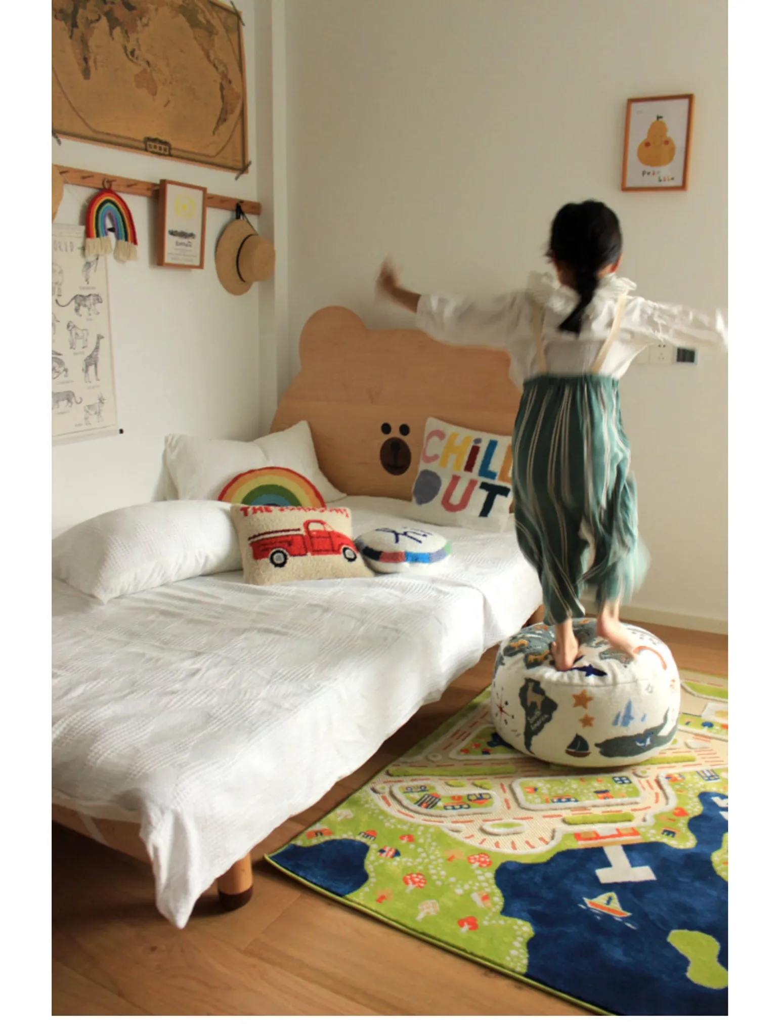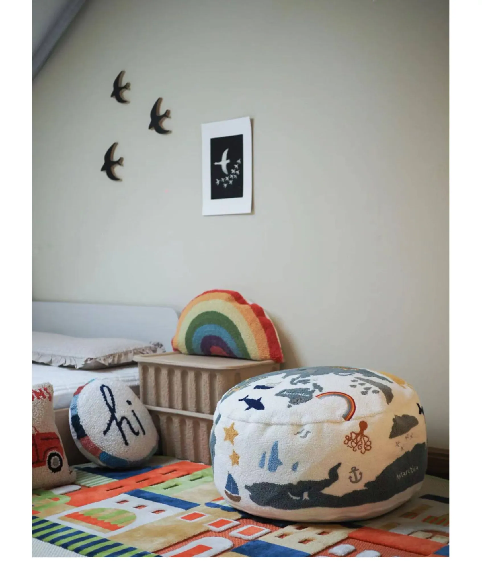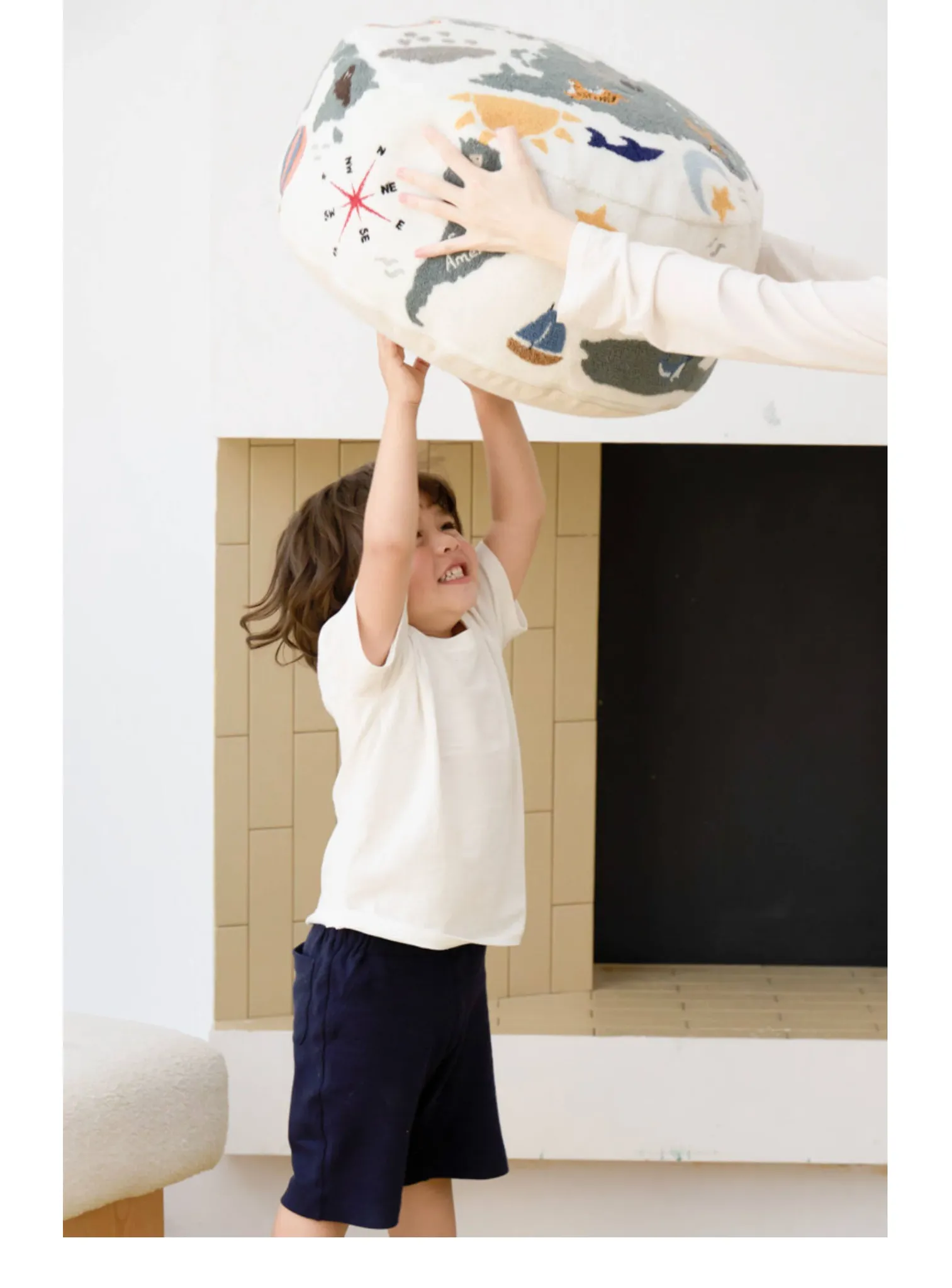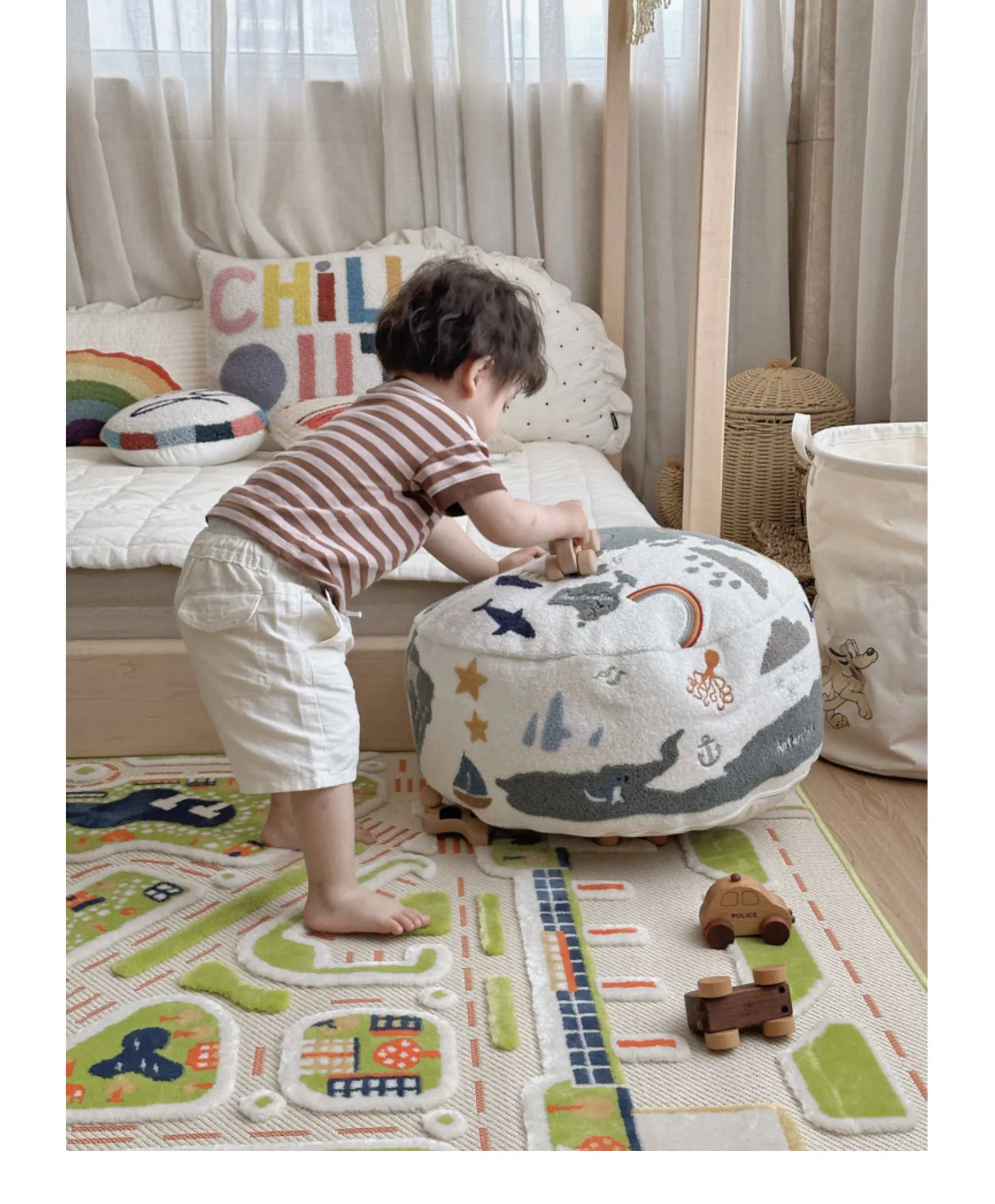 若奈 KIDS 大きな子供用ホーム「世界を旅する」立体刺繍の子供用スツール、リビングにぴったり、洗える足置き台!快適さと楽しさを兼ね備えたアイテムで、お子様の遊び空間を彩ります。
