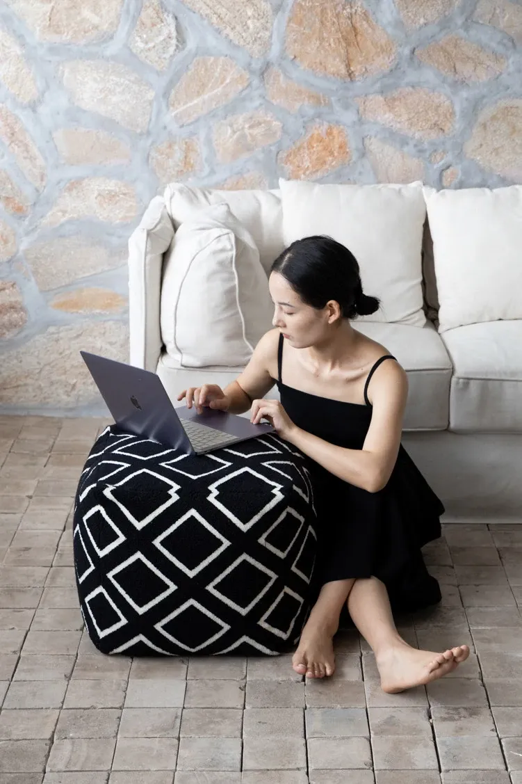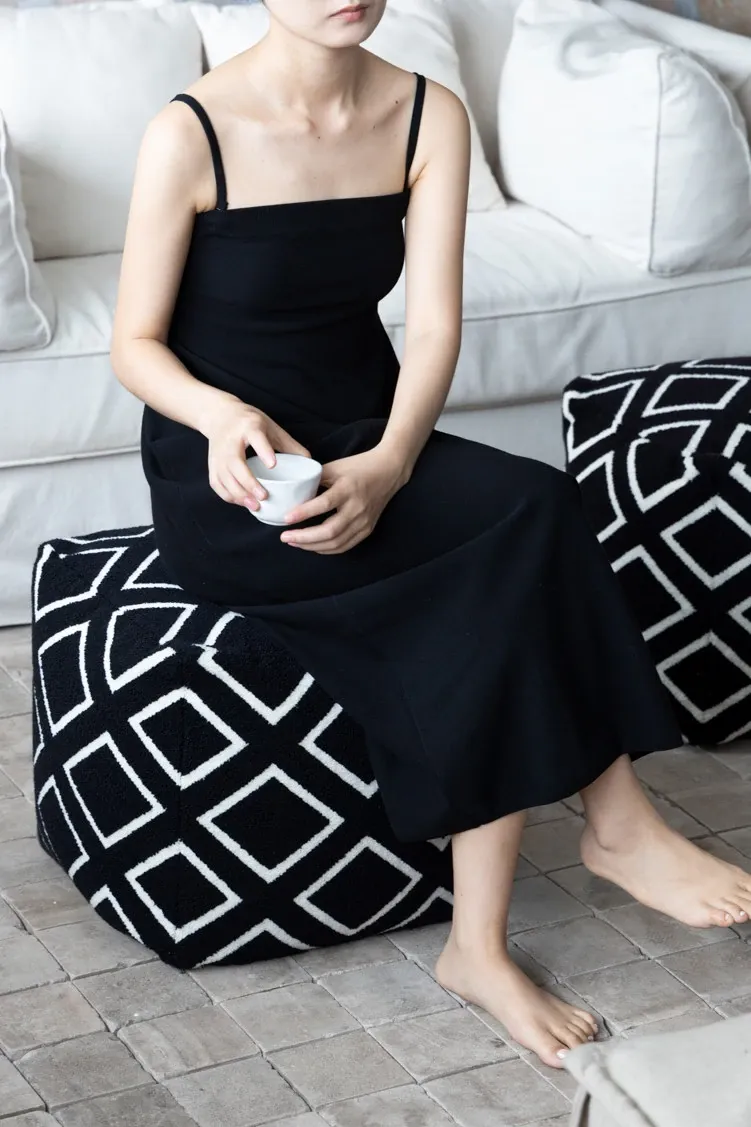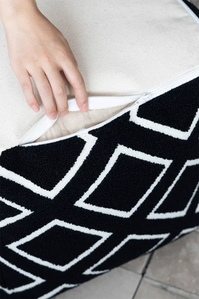 若奈ロンドン「ダウニングタイル」ブラック&ホワイトの立体浮彫りデザイン、洗えるリビング用ラウンジソファ。快適でスタイリッシュ、あなたの空間を華やかに演出します!