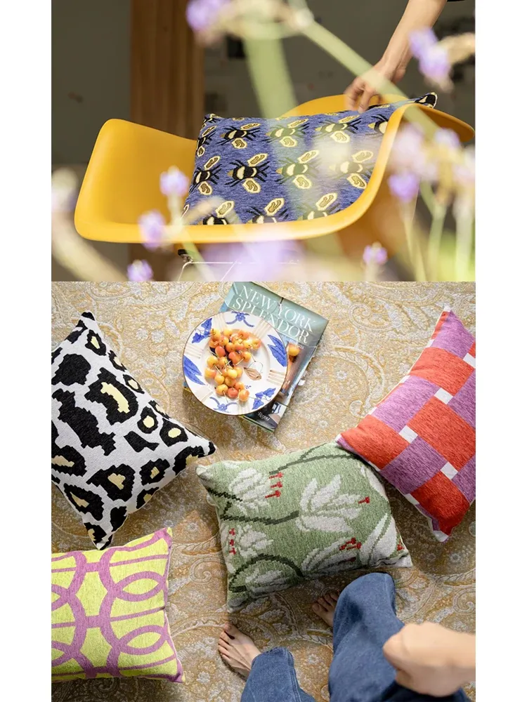 若奈モロッコシリーズ「パレット」新色登場!永遠の春を感じるシルクのようなビロード感のクッションカバー、刺繍入りで取り外し可能。お部屋に華やかさをプラス!