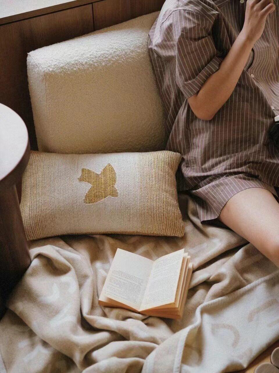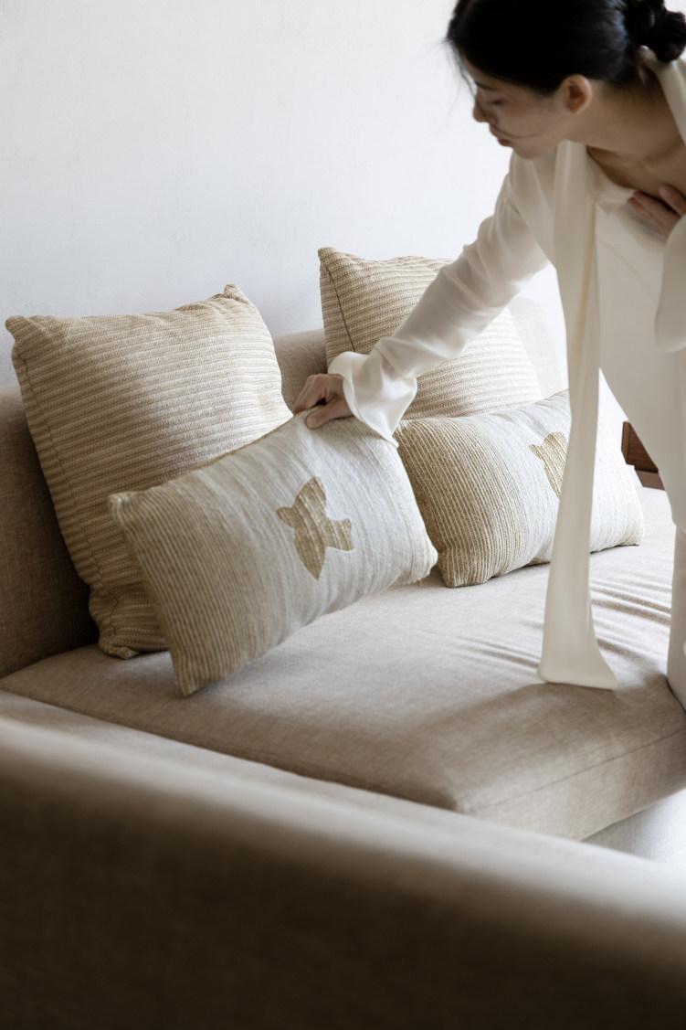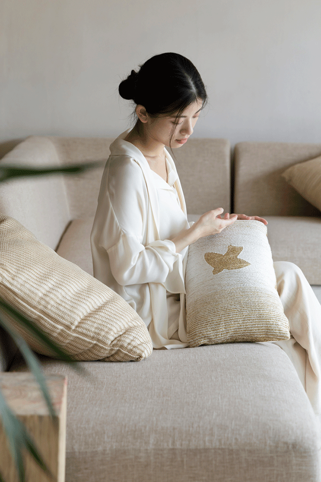 若奈 モロッコ編み刺繍「平安燕」クッション 腰枕 麦穂模様 四季を通じて使える肌触り抜群の抱き枕