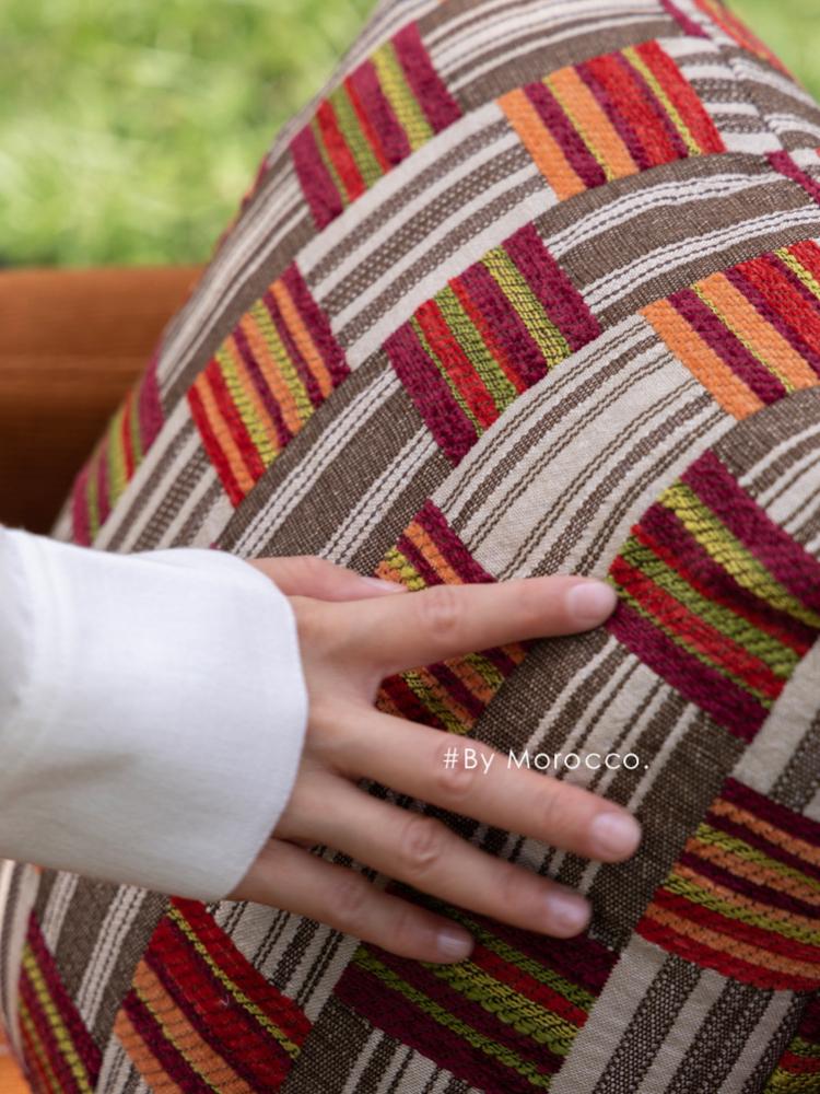 若奈 モロッコシリーズ / “鮮やかなカラー” コントラストストライプのサテン感刺繍クッション - お部屋を華やかに彩るおしゃれな抱き枕!柔らかな手触りとユニークなデザインで、快適なひとときを演出します。