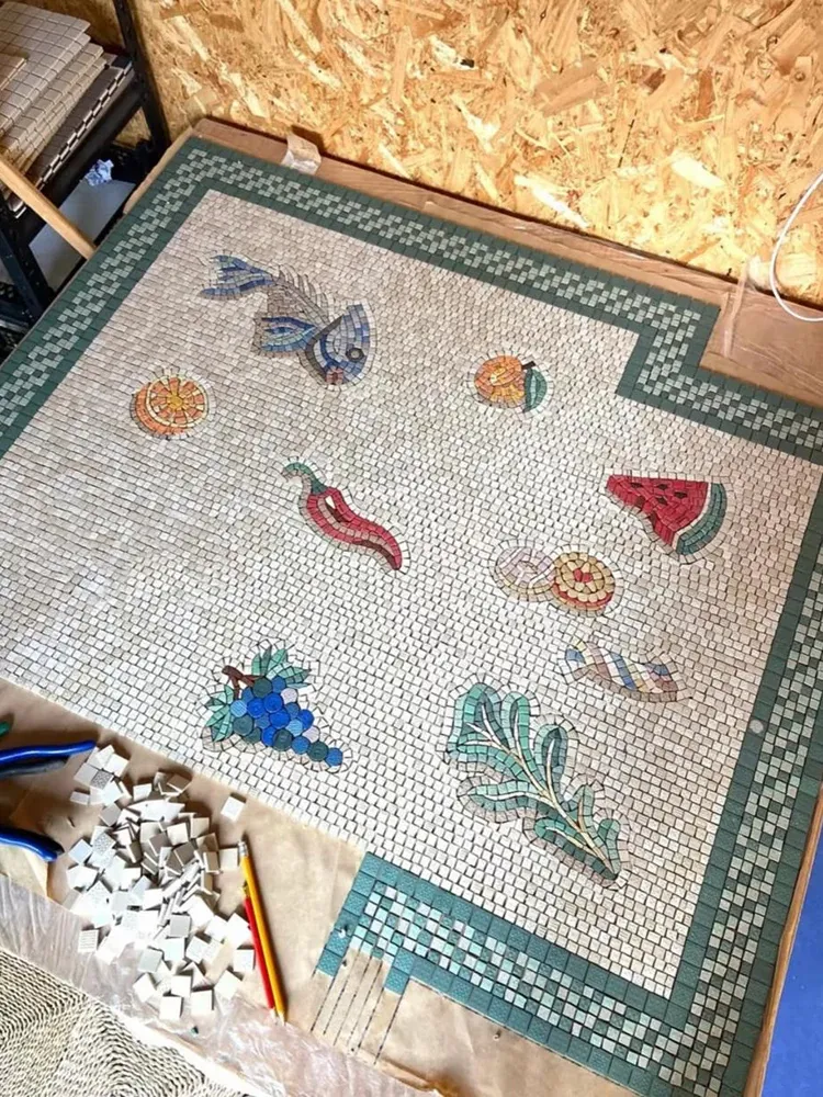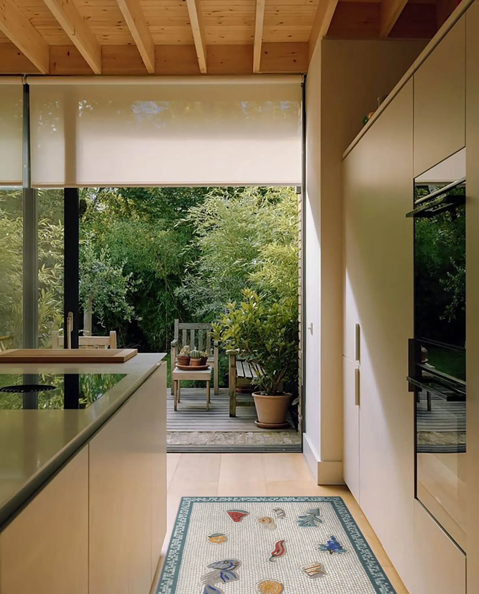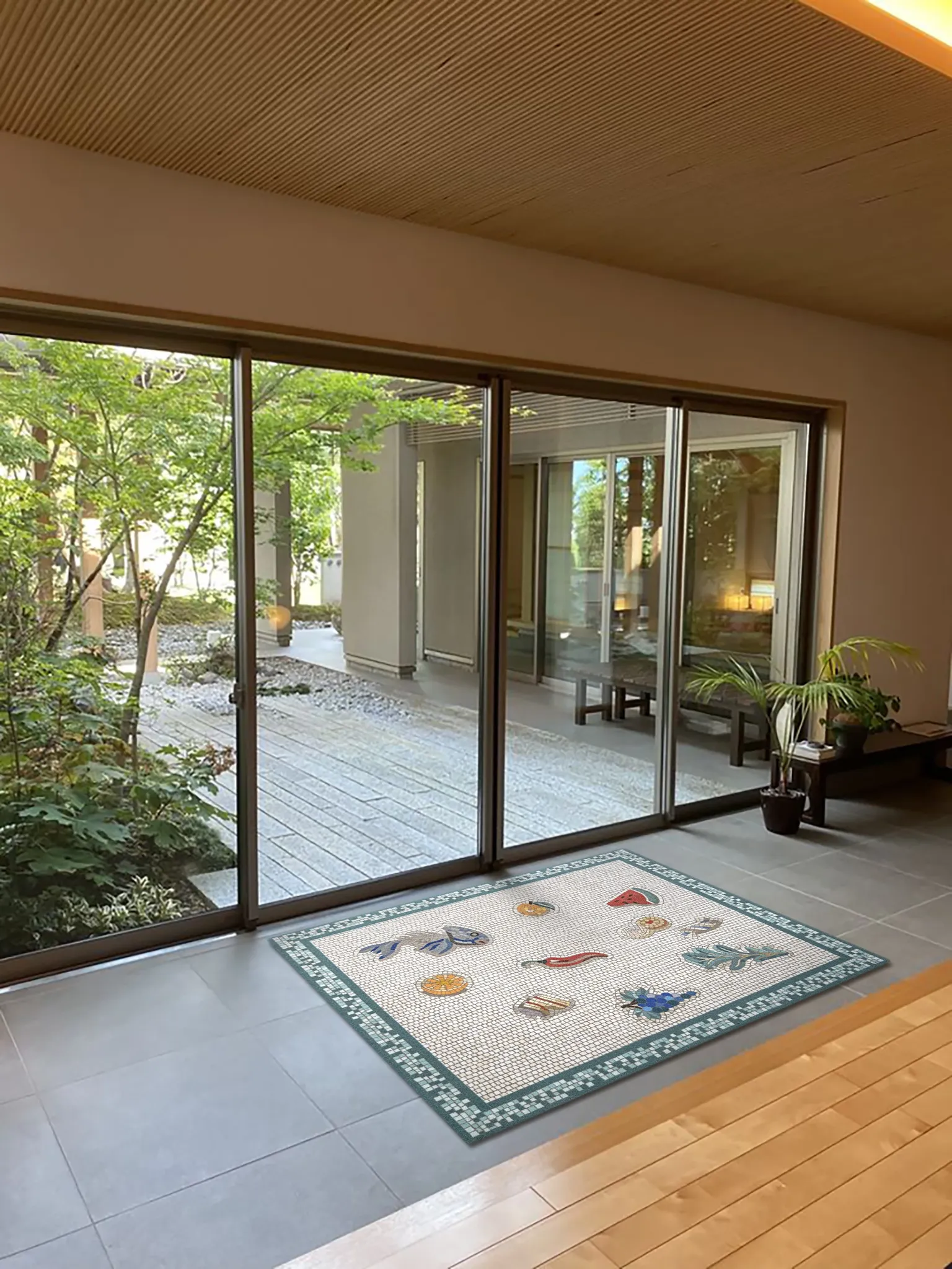若奈モザイクカーペット/アーティストExton「ライフ・プレリュード」玄関マット キッチン・アイランド・バスルーム・寝室に最適!おしゃれで機能的なインテリアアイテムです。
