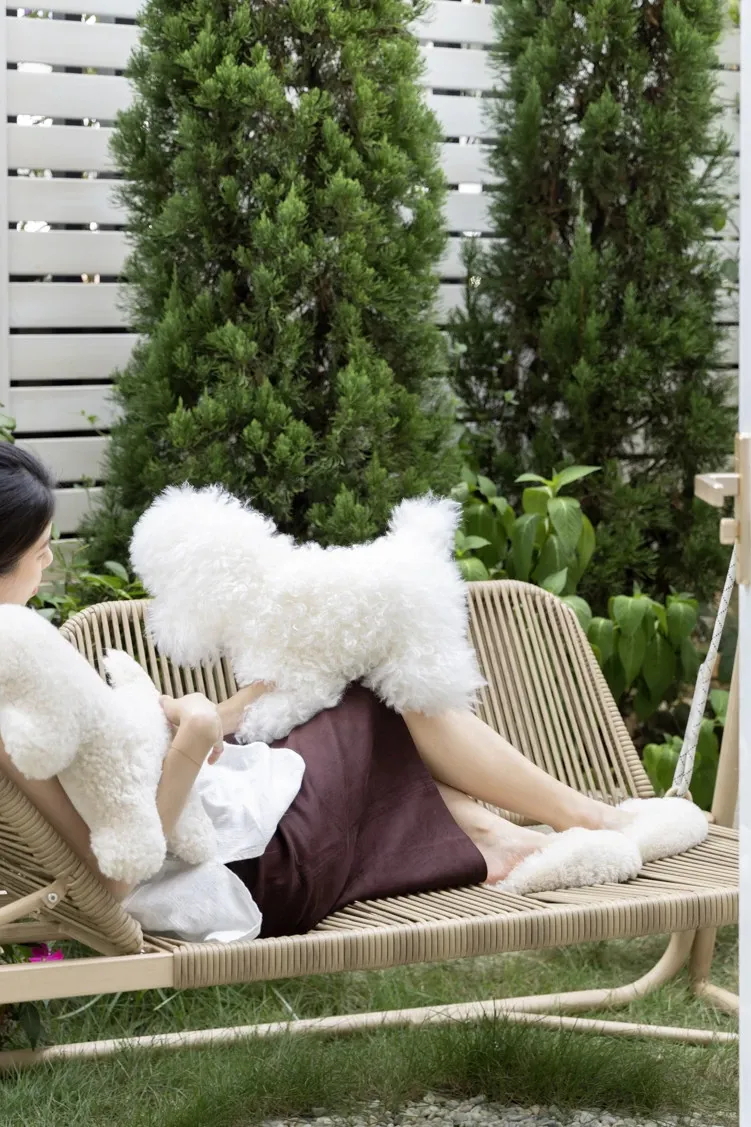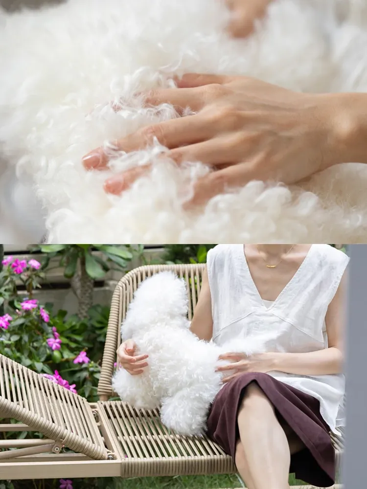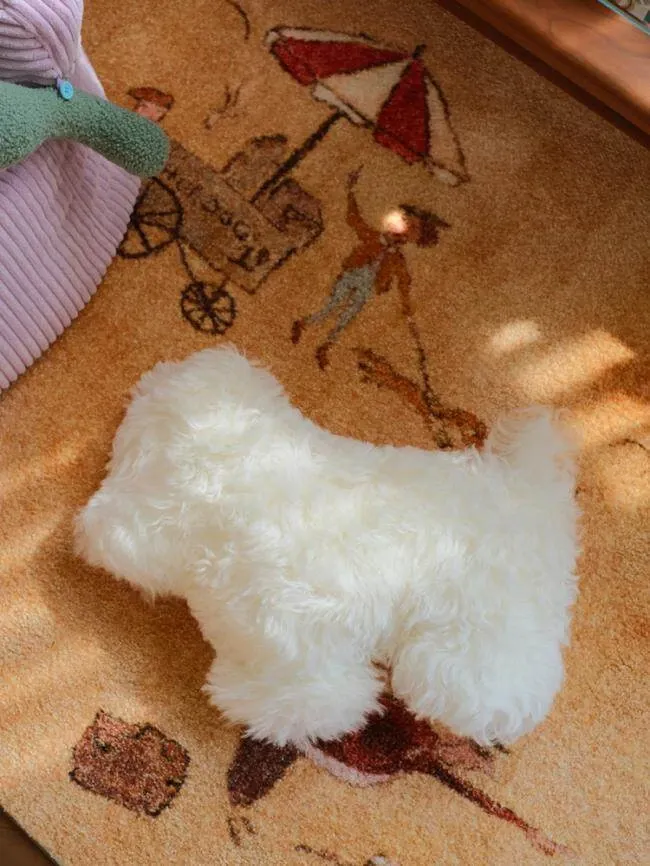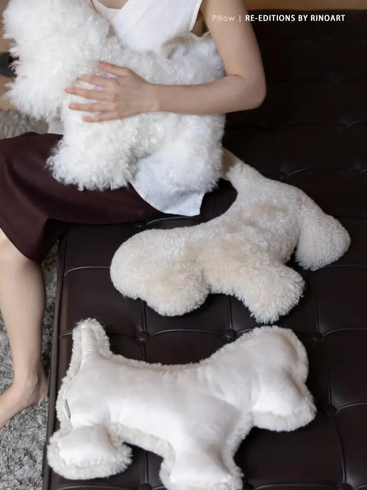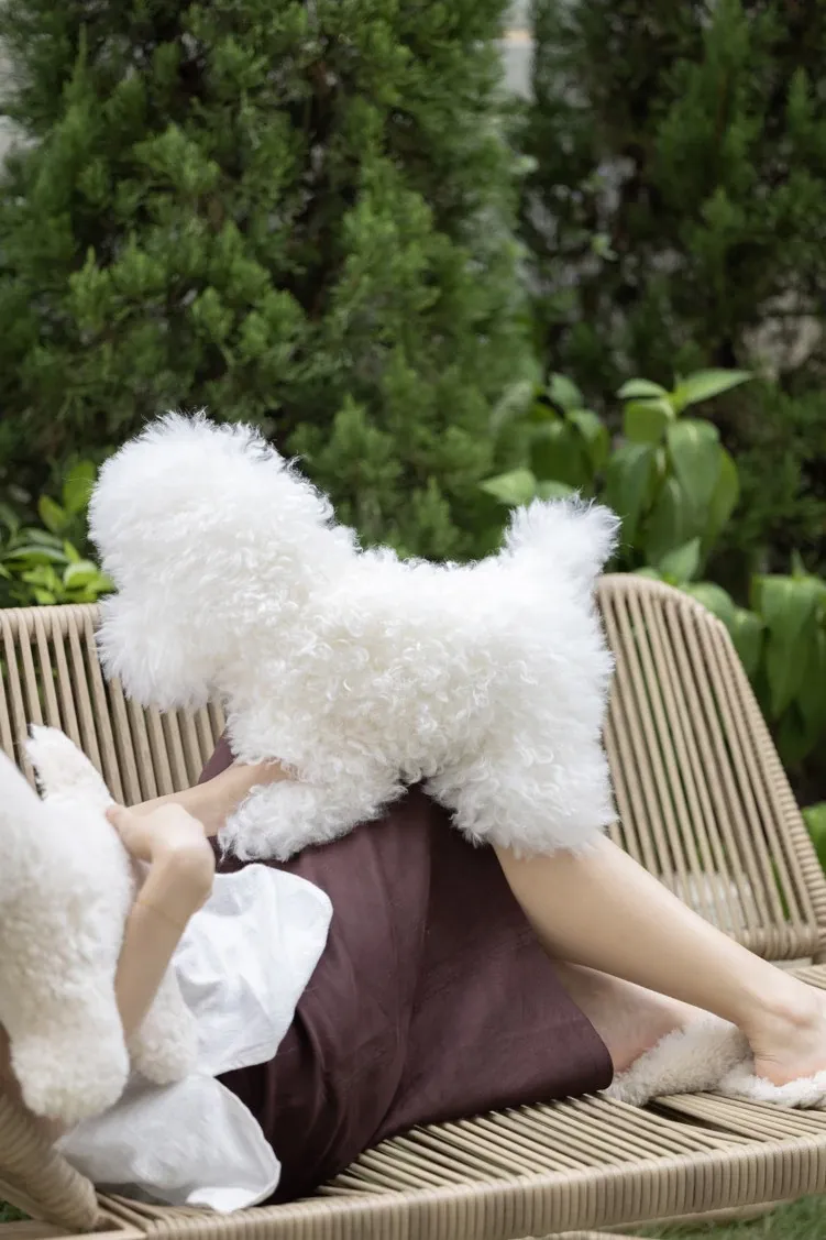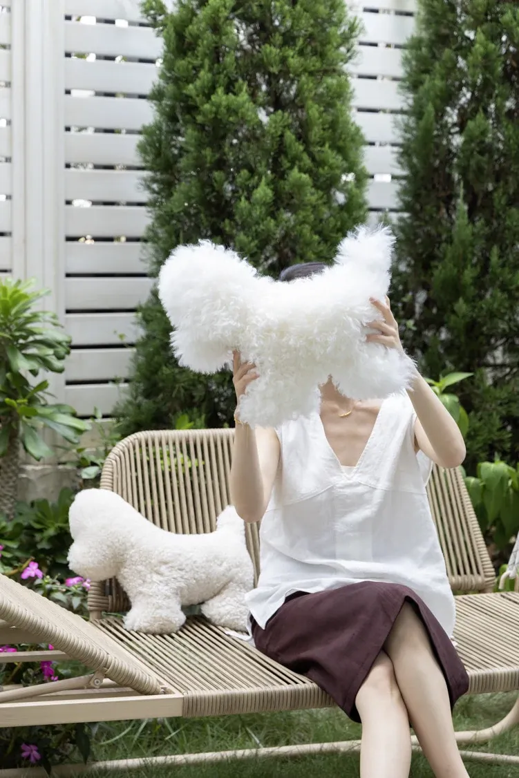 Rona Natural Sheepskin Dog Pillow - Versatile Knight Bichon Waist and Neck Support Cushion for Window Sills, Bedrooms, Living Rooms, and Footrests