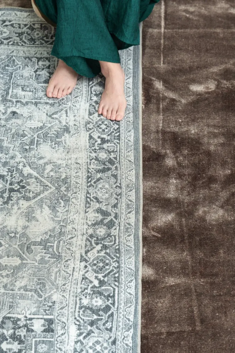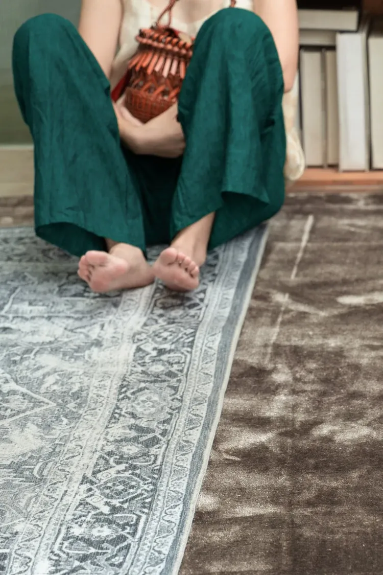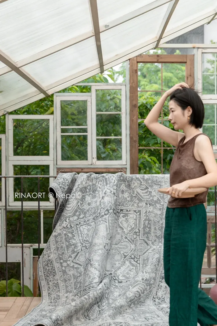 Rona Nepal Series Pashmina Patterned Moss Gray Area Rug - Elevate Your Living Room with Luxurious Comfort and Style