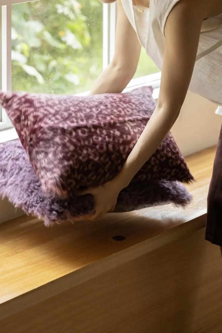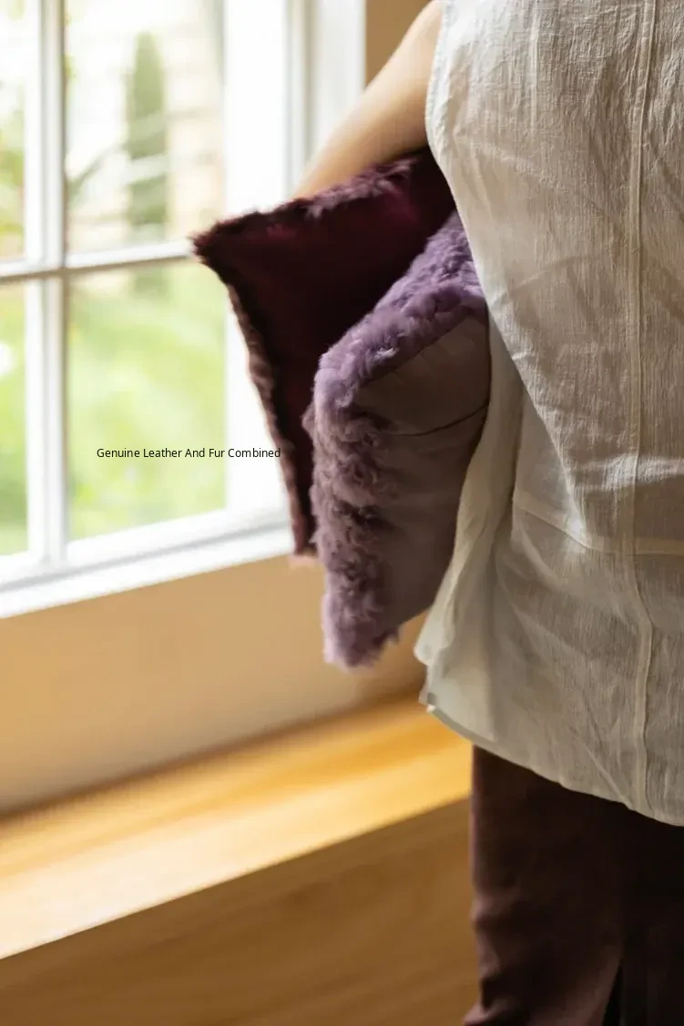 Rona North America Sold-Out King New Color! Natural Soft Golden Fur Integrated Gallon Purple Leopard Print Wool Pillow Cushion