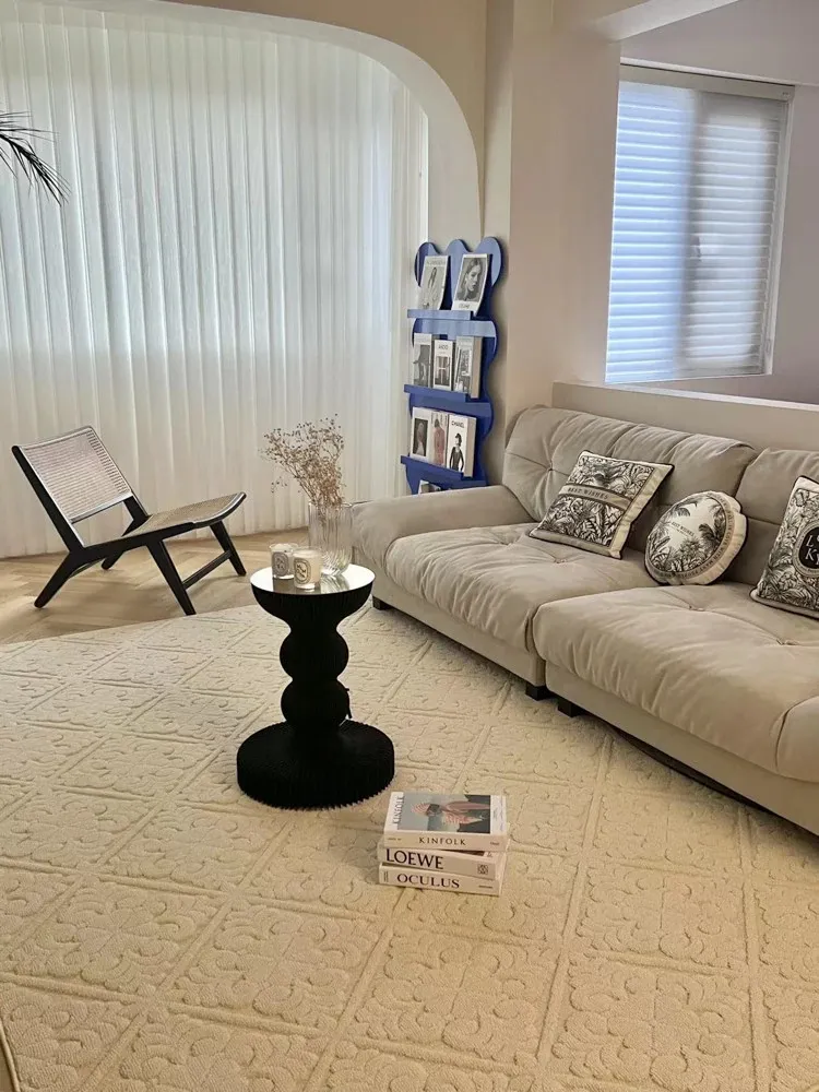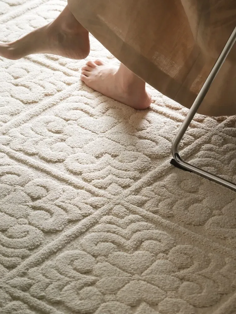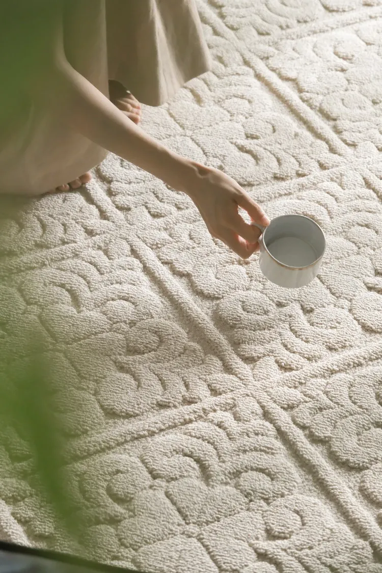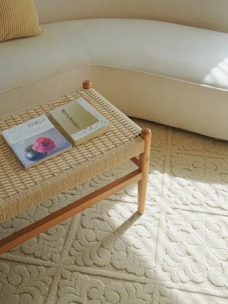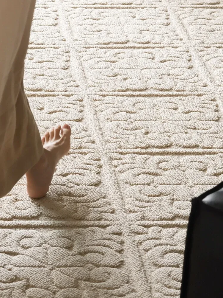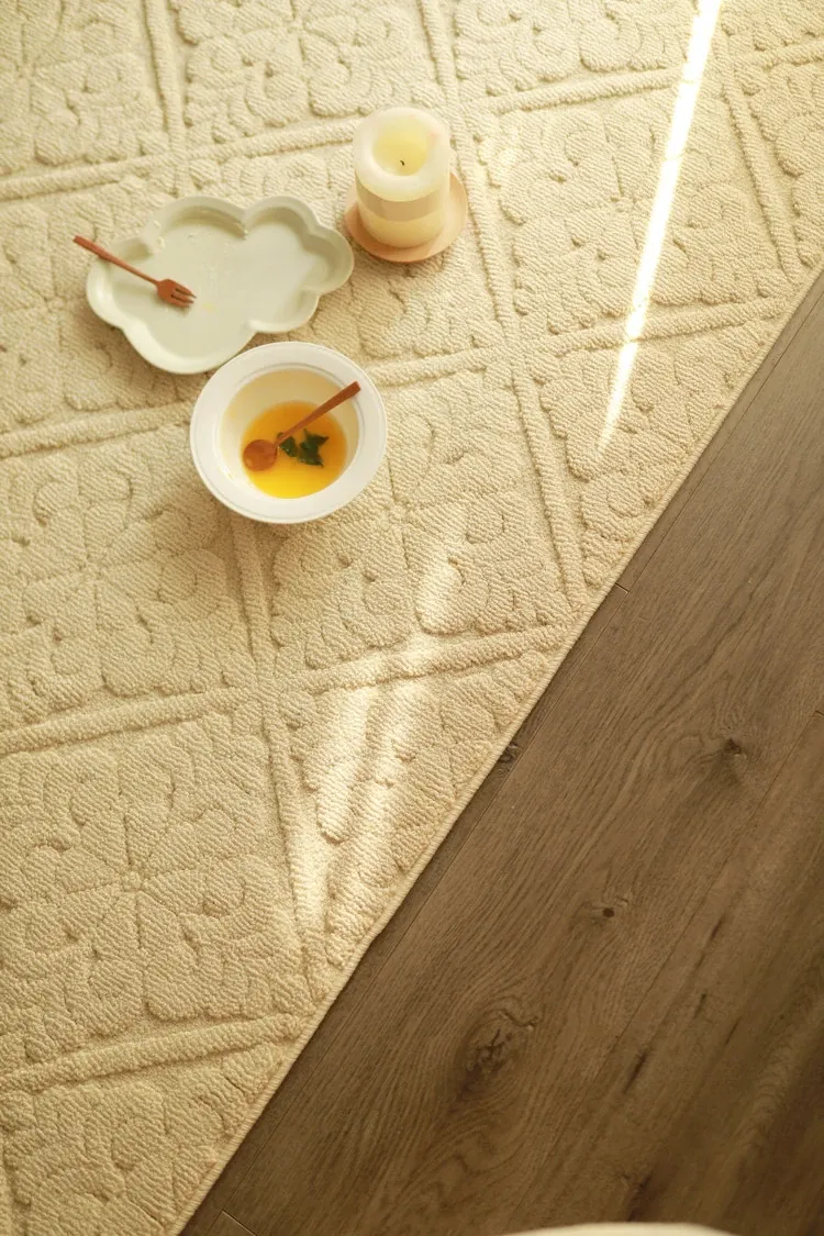 若奈ピュアナチュラル四季藻シルク防水ミルククリーム風立体浮彫カーペット - リビングや寝室に最適な高級感溢れるデザインで、快適さと美しさを両立!