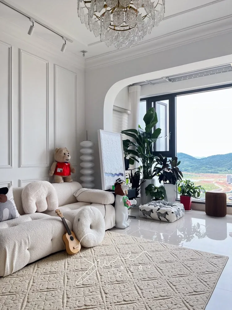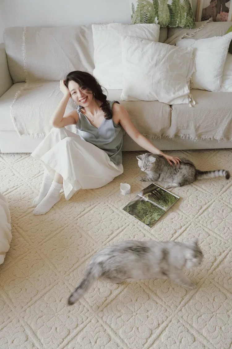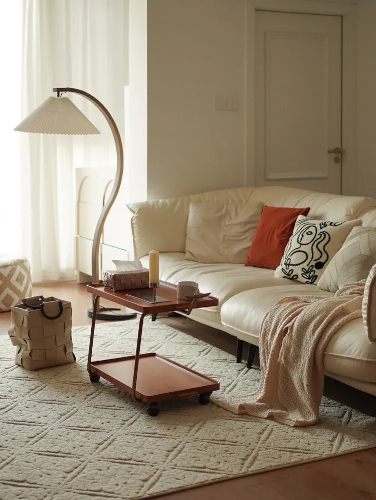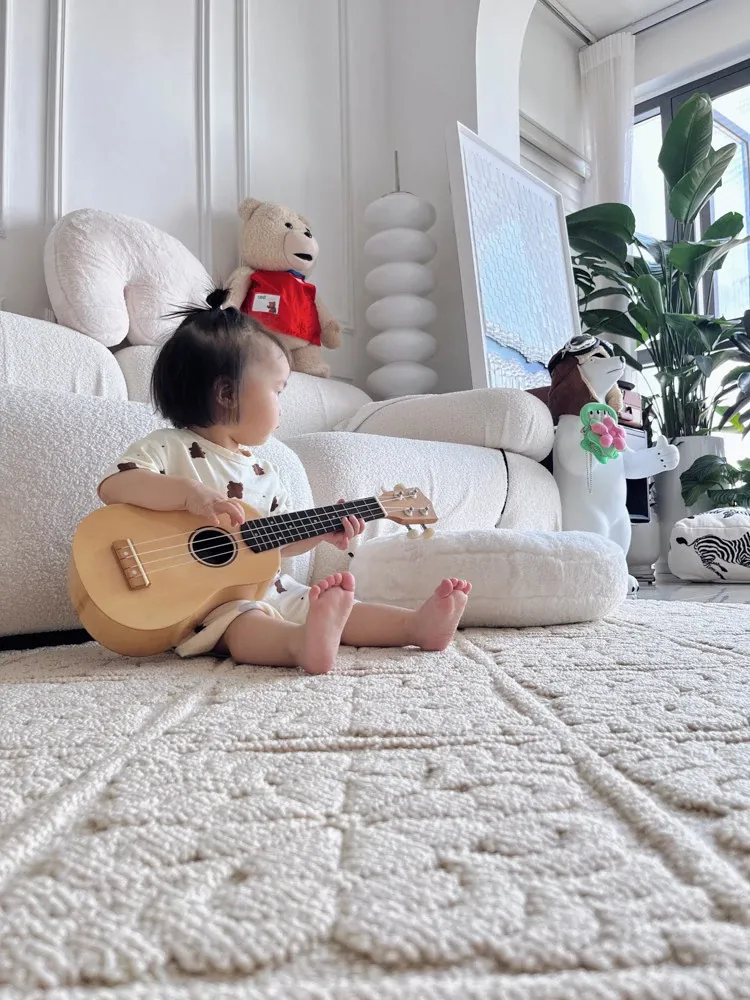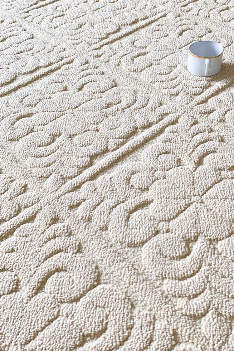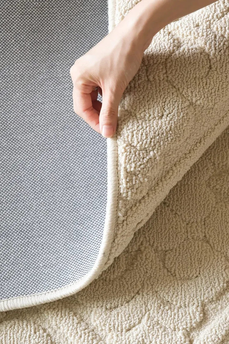 若奈ピュアナチュラル四季藻シルク防水ミルククリーム風立体浮彫カーペット - リビングや寝室に最適な高級感溢れるデザインで、快適さと美しさを両立!