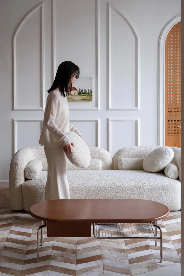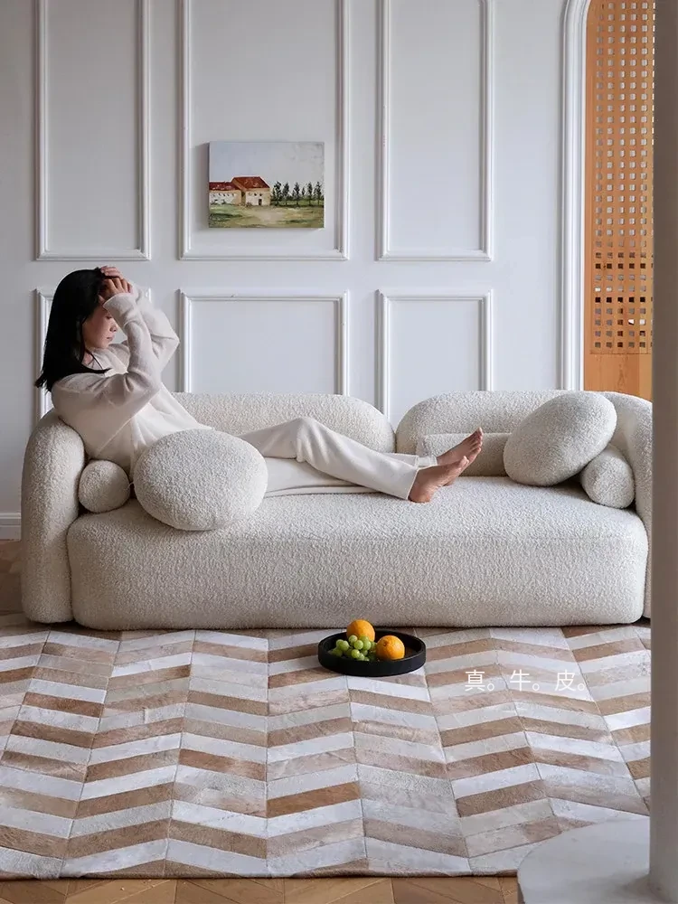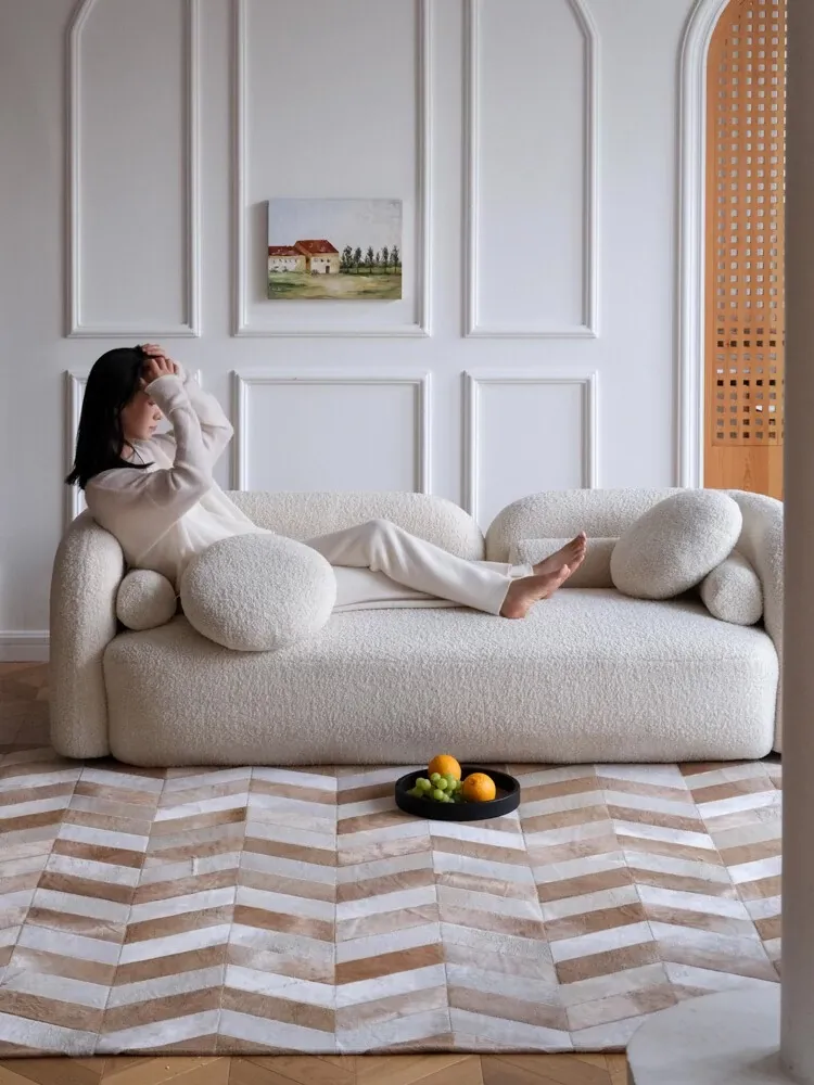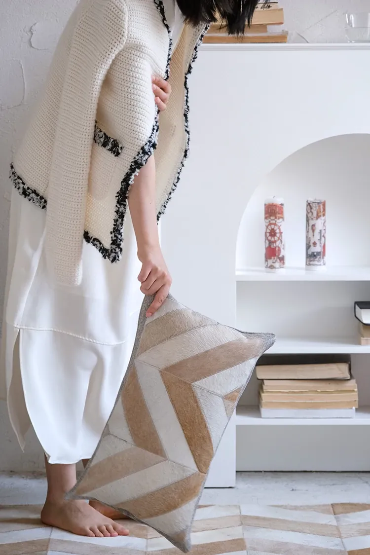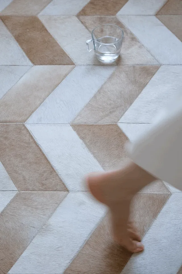 若奈 Q1ランクデンマーク牛革使用!フレンチハーストライプデザインのミルクブラウン二色カーペット、リビングや寝室に最適で、優雅な空間を演出します。