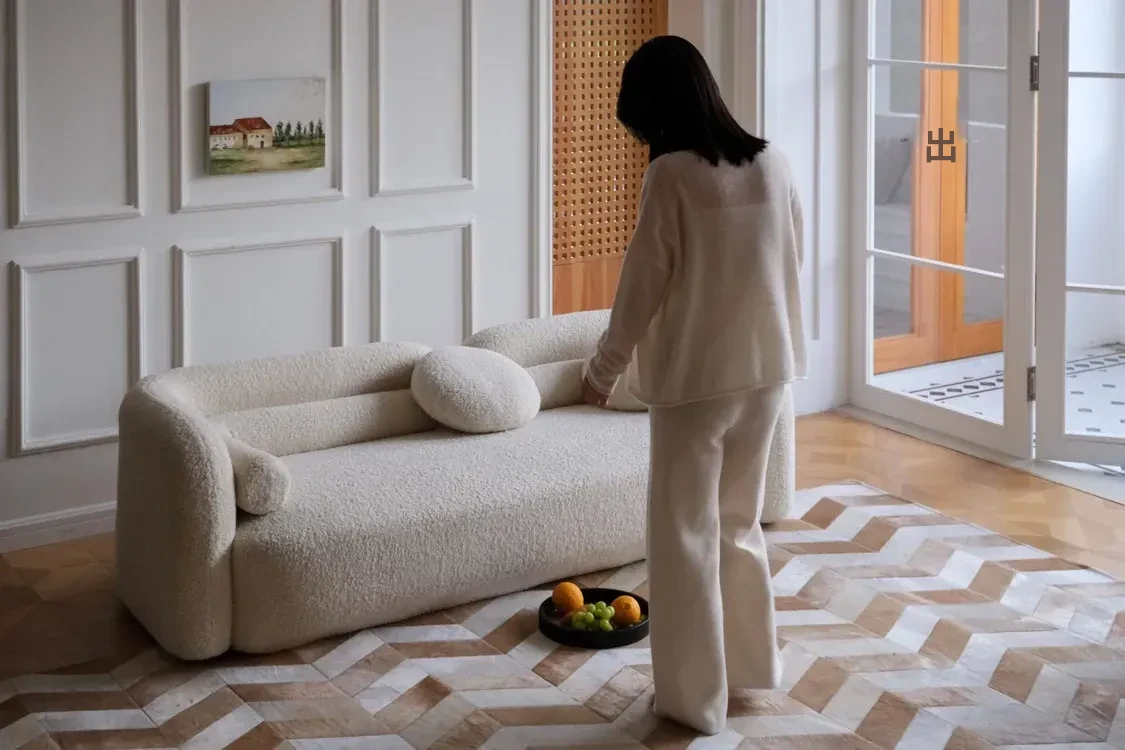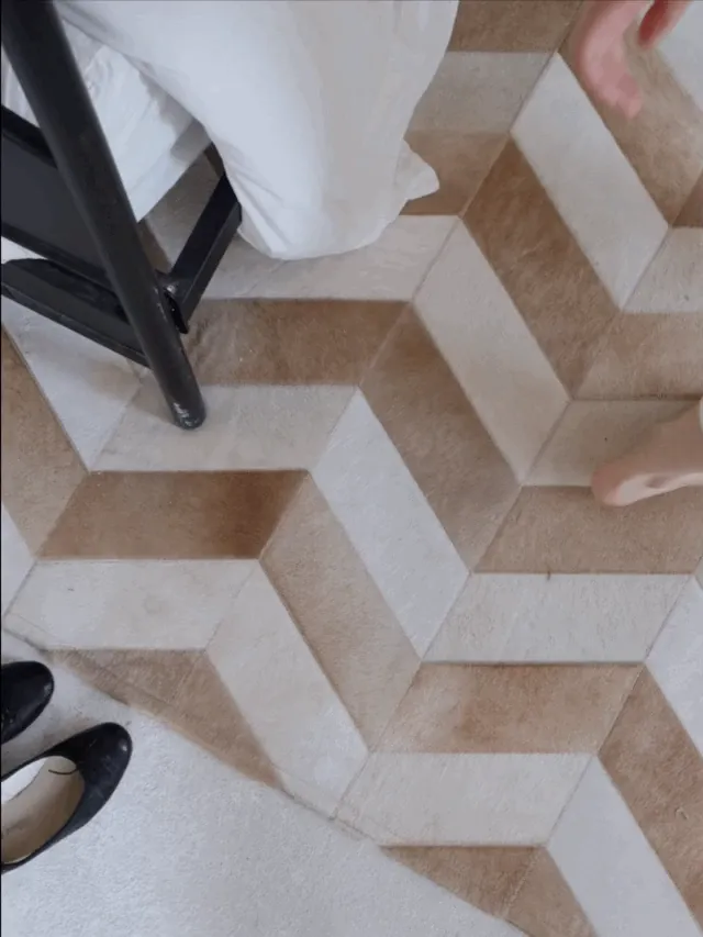 【ハニカムパターンの牛革カーペット】