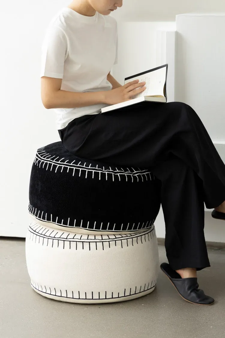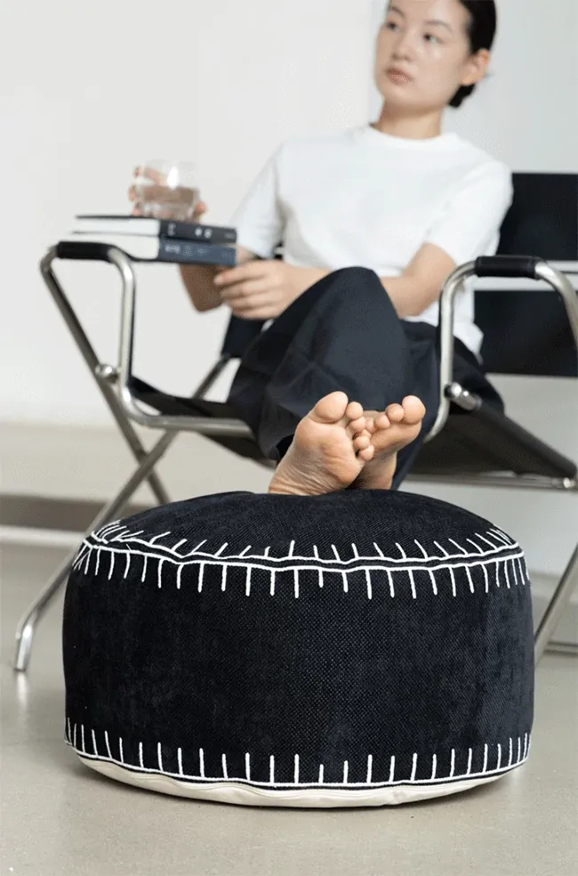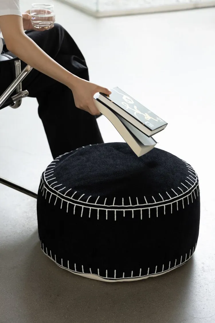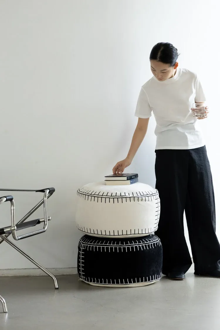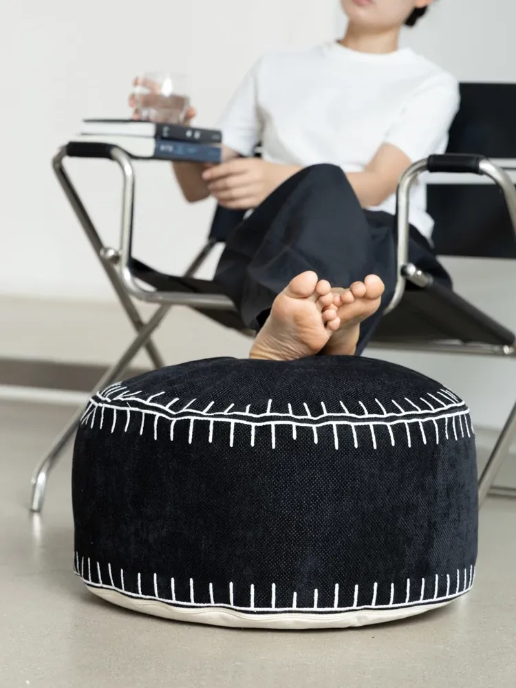 若奈の座椅子「白黒碁石」刺繍付き立体デザイン、取り外し可能な洗濯可のラウンジソファスツール。リラックスしたいあなたにぴったりのアイテム!