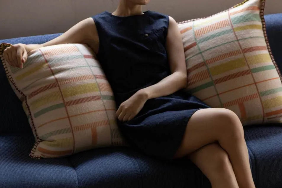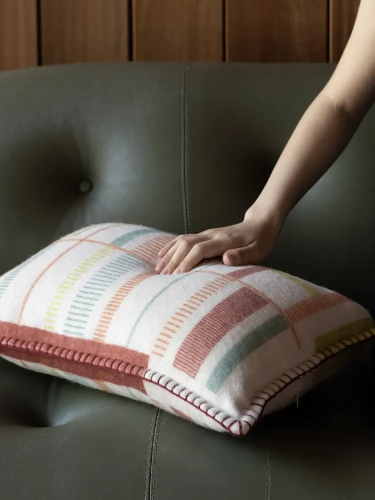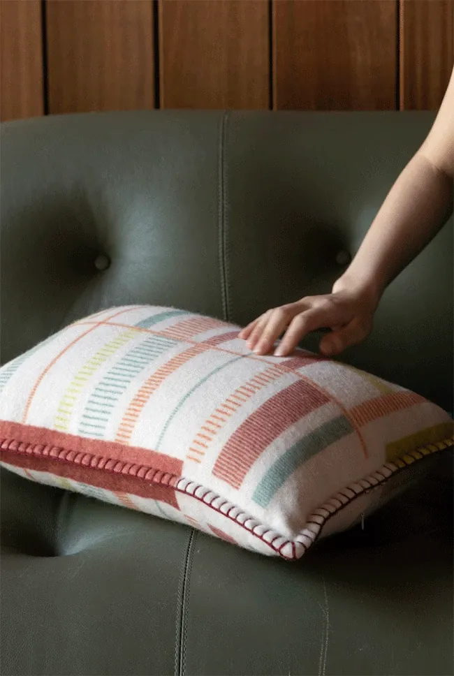 Rona Seasonal Wool Hermès "Tampere Colors" Colorful Waist Pillow with Insert - Stylish Contrast Cushion for Cozy Comfort