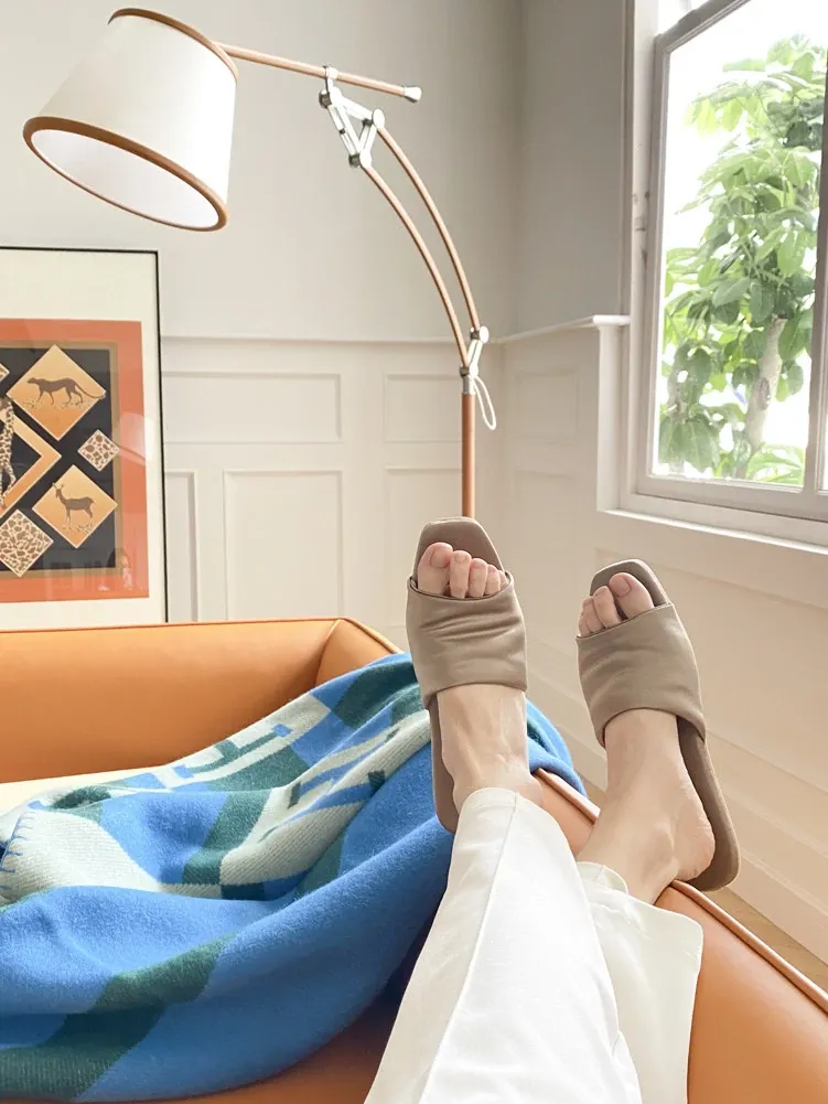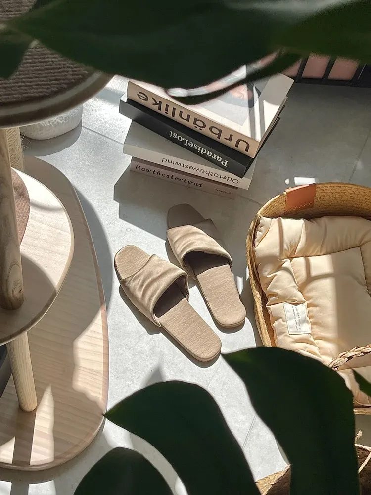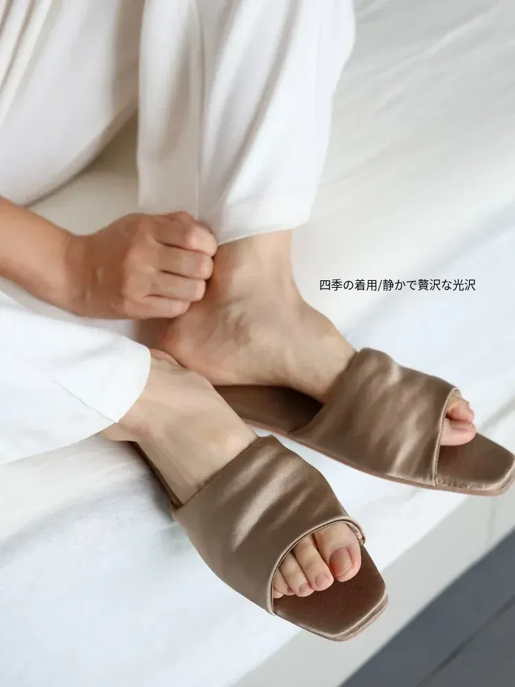 若奈シルク!厚手本真シルク/Th*Row四季用スリッパ、おしゃれなカップル向け滑り止め静かなラグジュアリーのホームシューズ