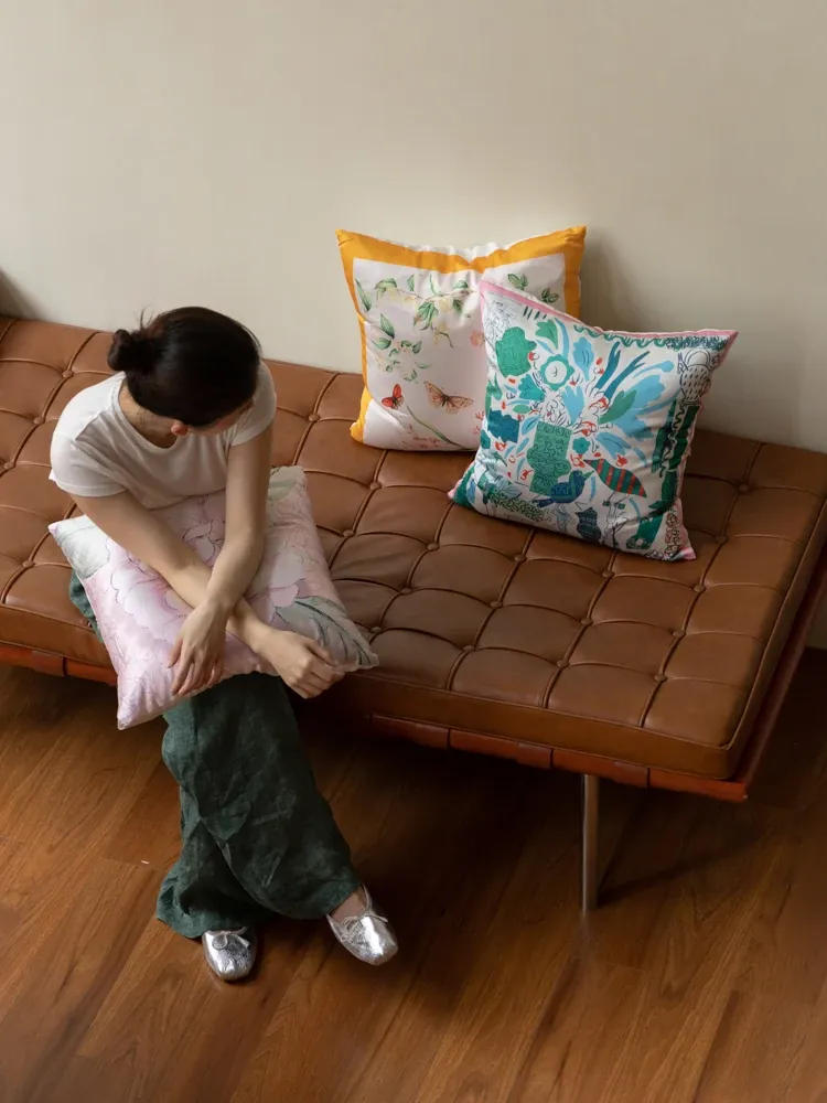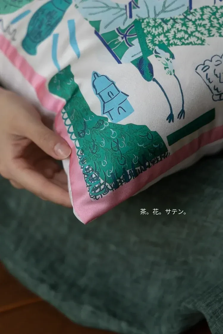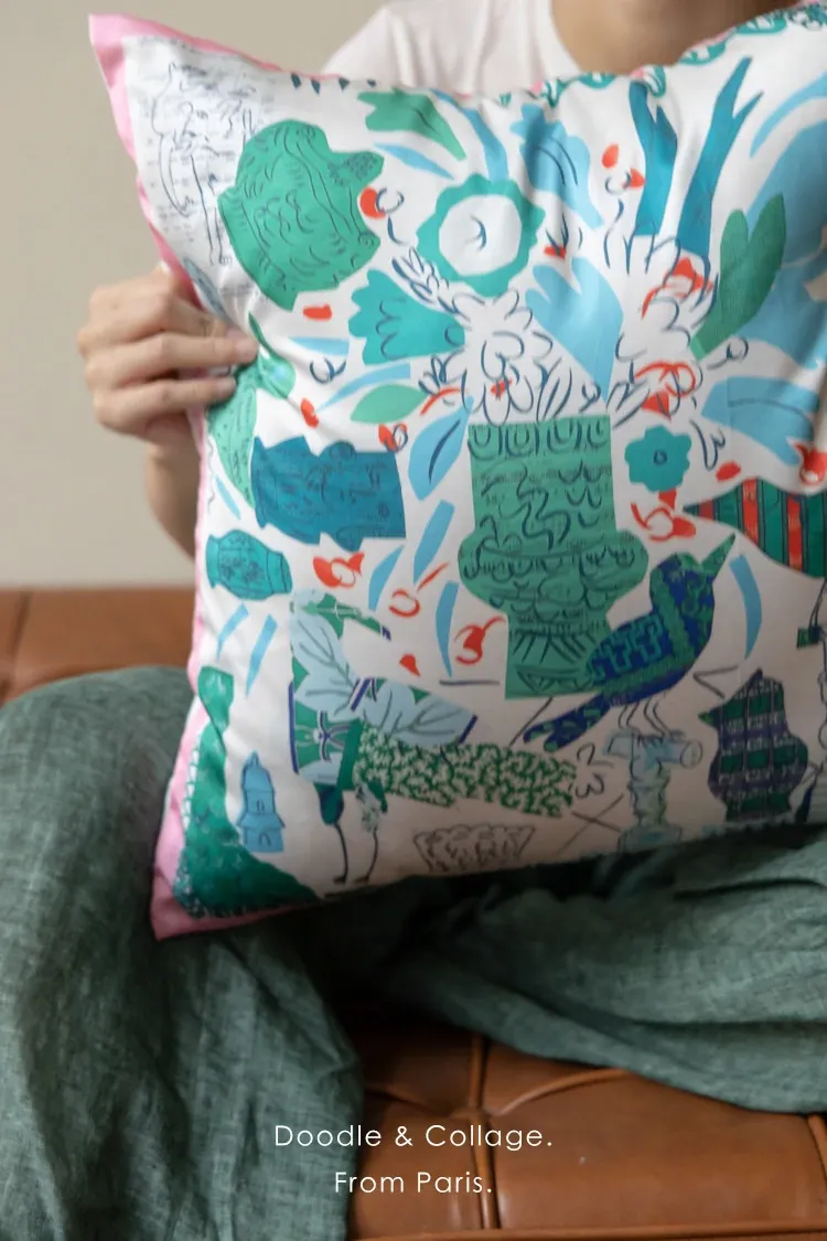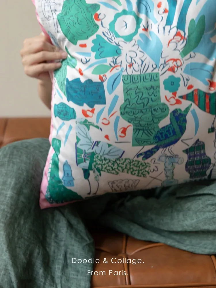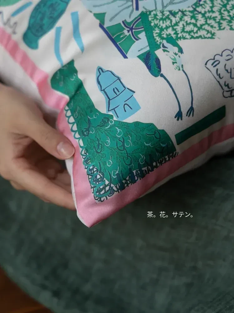 若奈 Herm*s《夏日パリ》抱き枕 - シルクのようなサテン生地で柔らかく、洗濯可能!ソファやベッドヘッドにぴったりの贅沢なアイテム。あなたのインテリアを華やかに彩ります!
