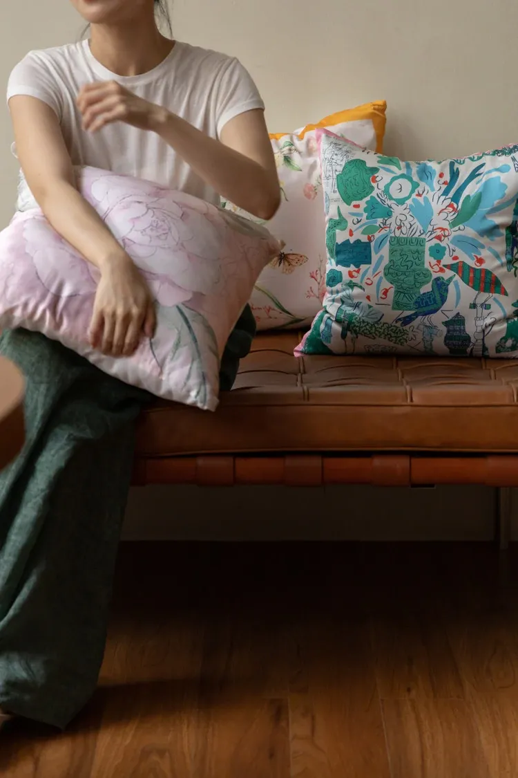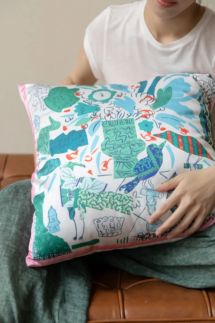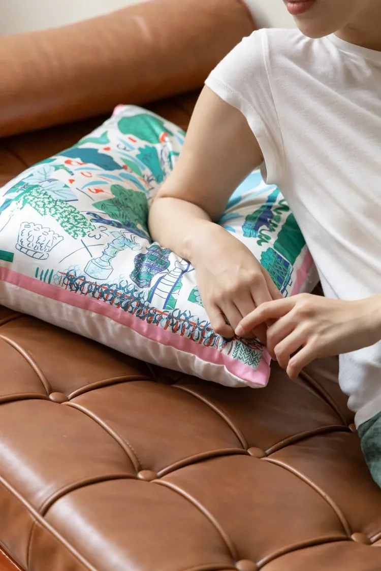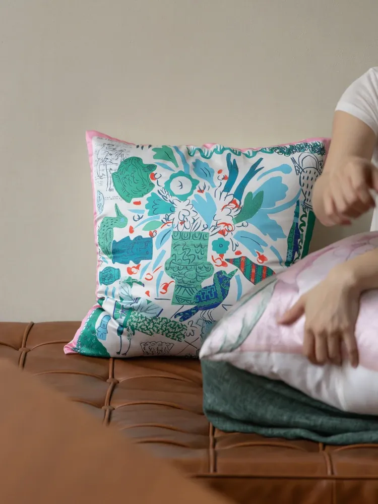若奈 Herm*s《夏日パリ》抱き枕 - シルクのようなサテン生地で柔らかく、洗濯可能!ソファやベッドヘッドにぴったりの贅沢なアイテム。あなたのインテリアを華やかに彩ります!