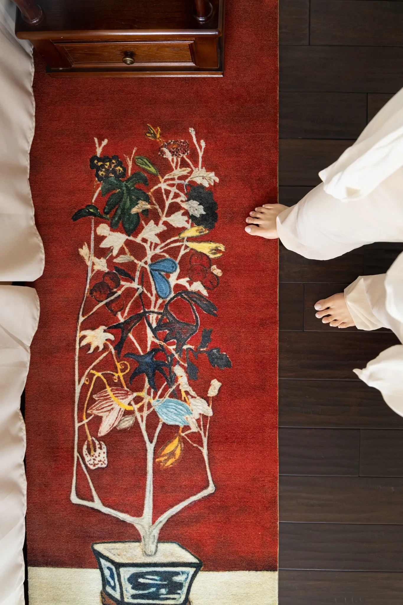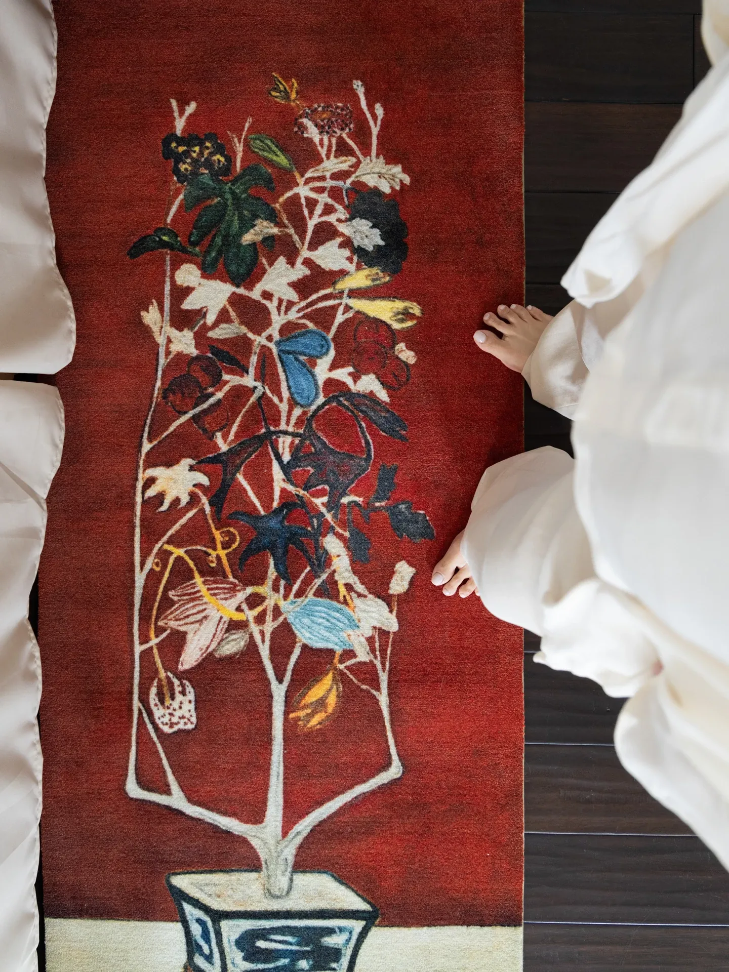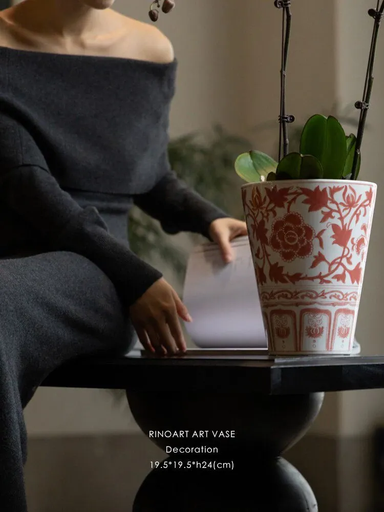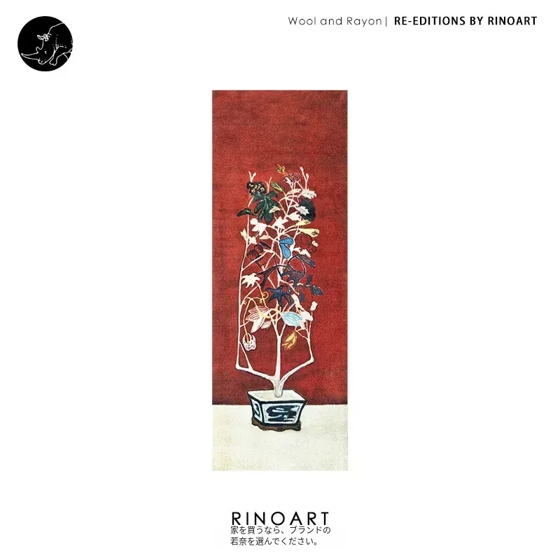 若奈の常玉作品《紅底盆栽》 - 良い意味を持つフランス風レトロ新中式花盆と新年のドアマット、特別な贈り物に最適!