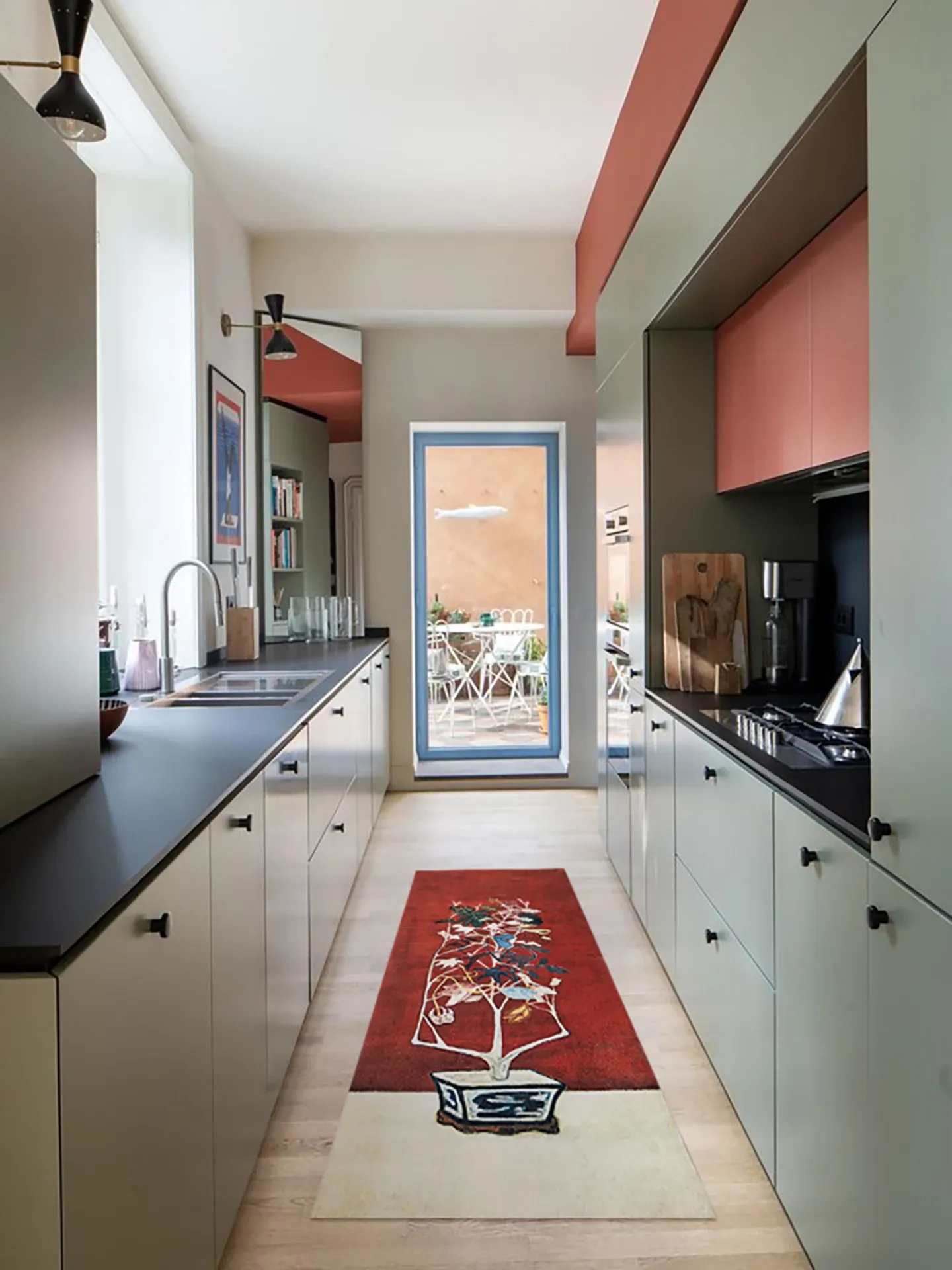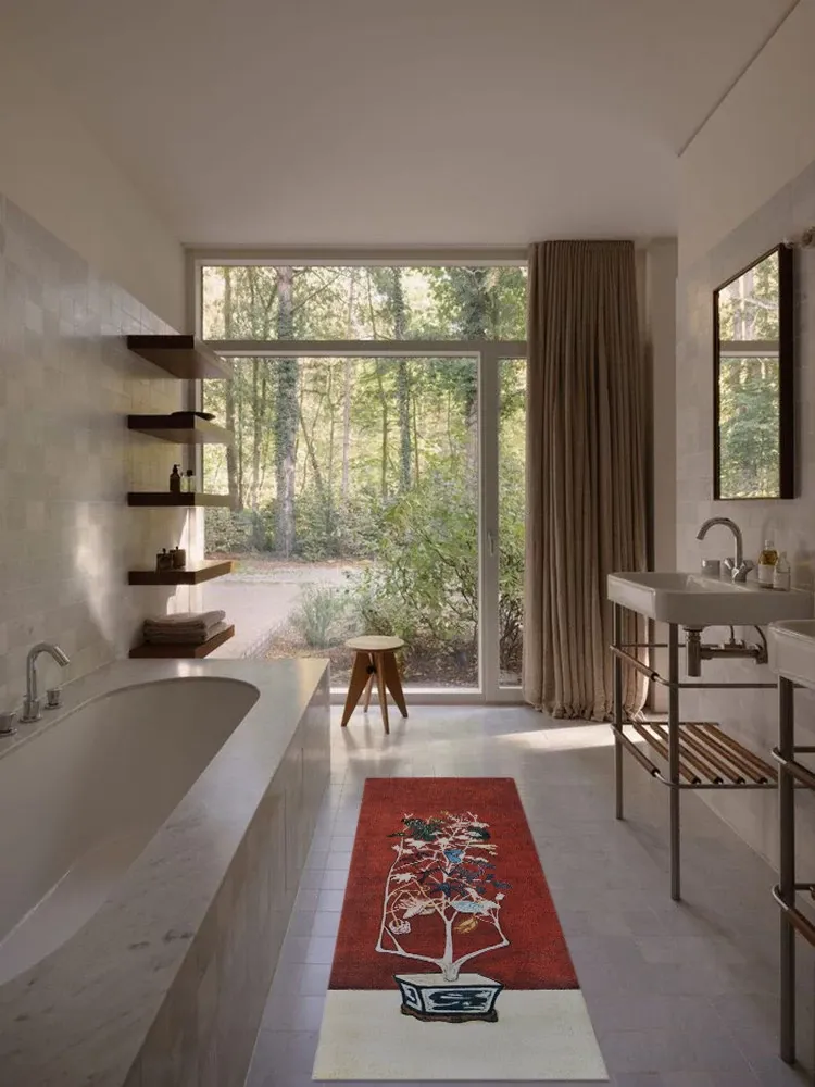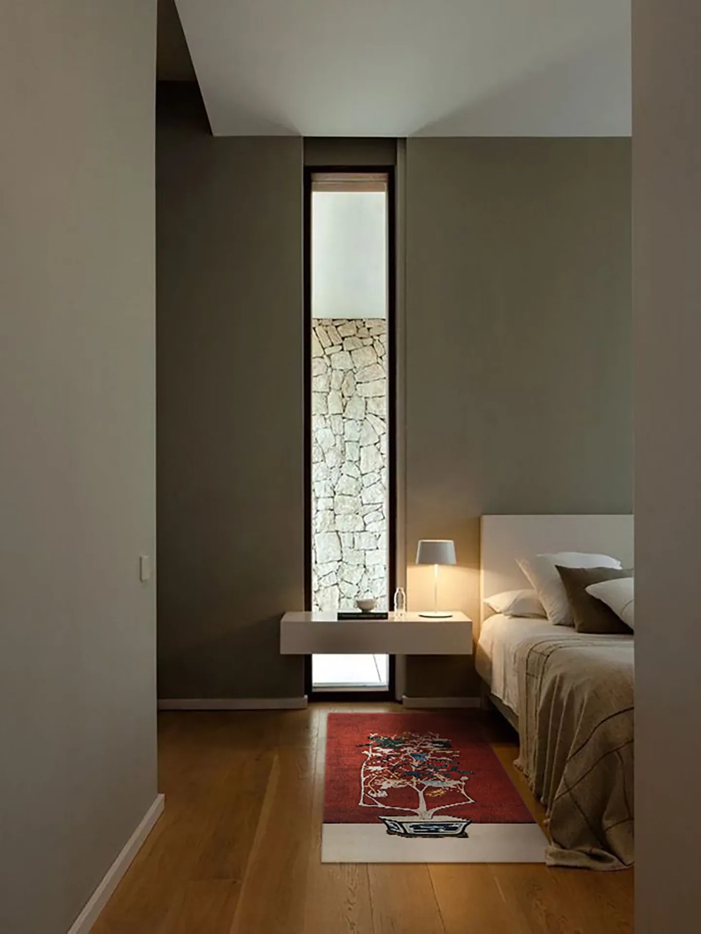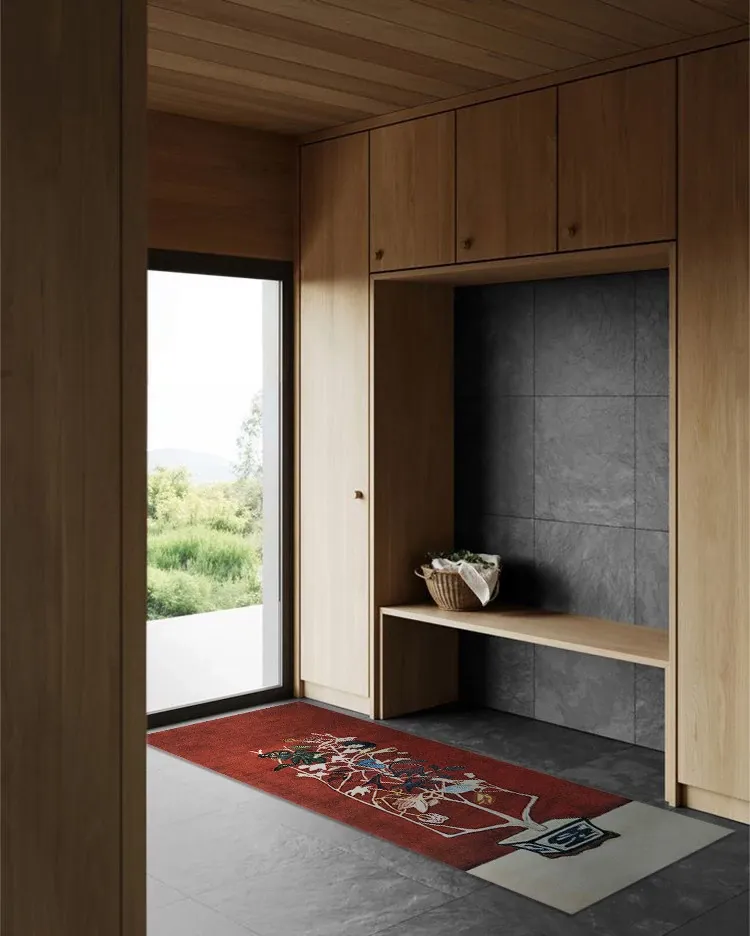若奈の常玉作品《紅底盆栽》 - 良い意味を持つフランス風レトロ新中式花盆と新年のドアマット、特別な贈り物に最適!