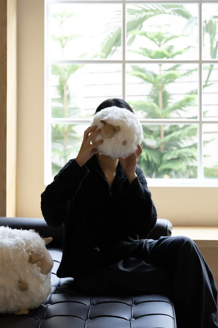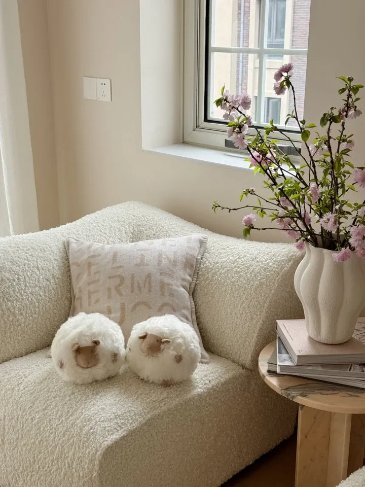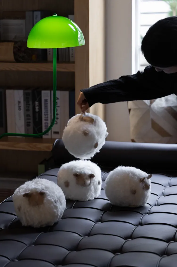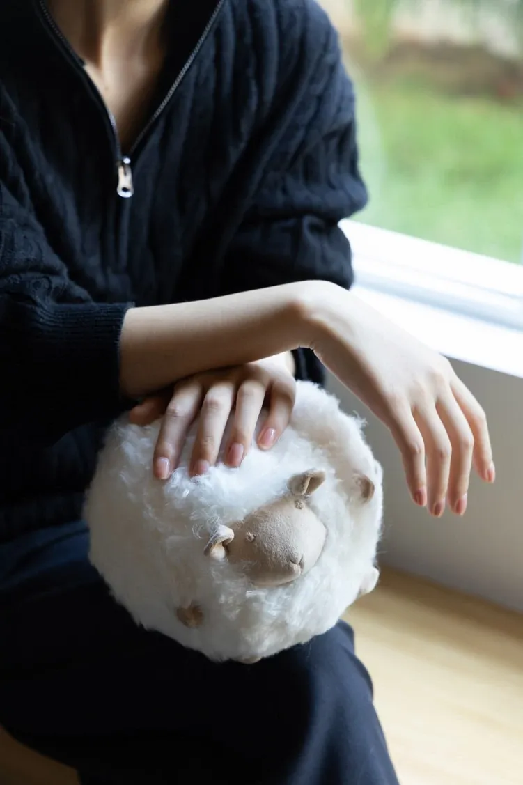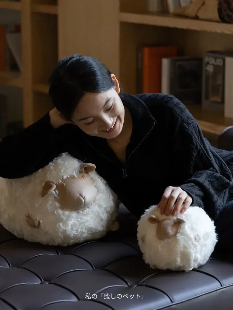 若奈の全体が細い羊毛を使用!Loewのミニシープ・ショーン・クッションボールソファ用抱き枕、クリーム色の腰枕で、あなたのリラックスタイムをさらに快適に!