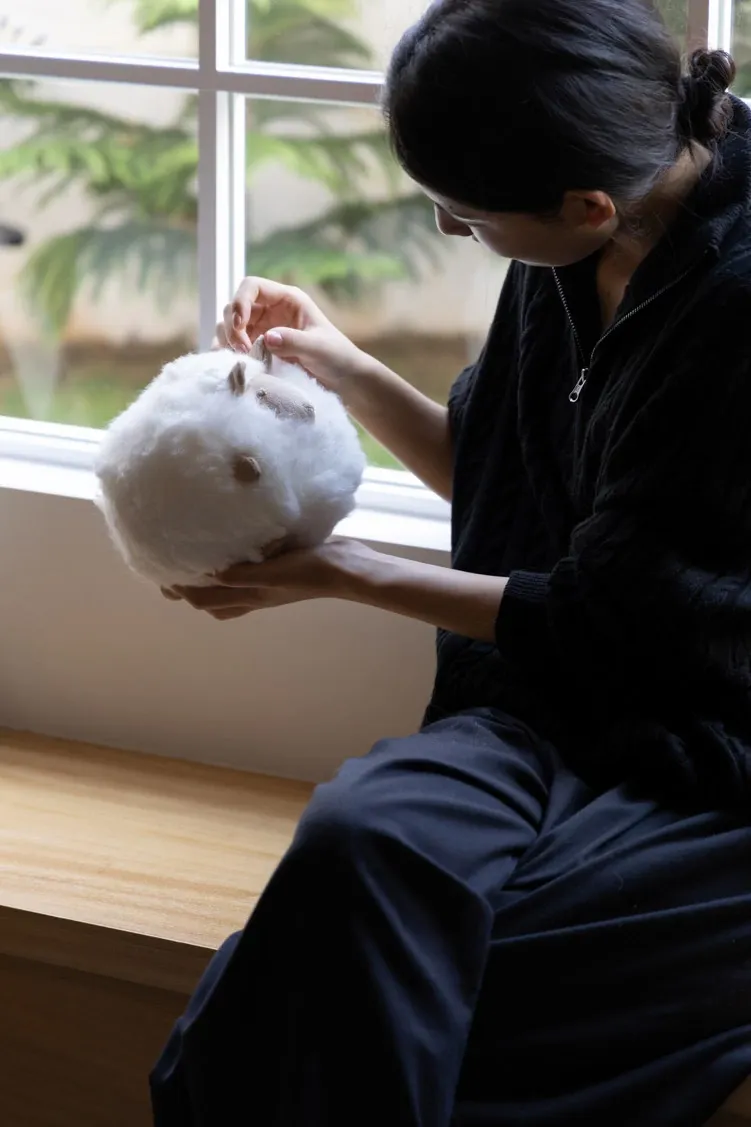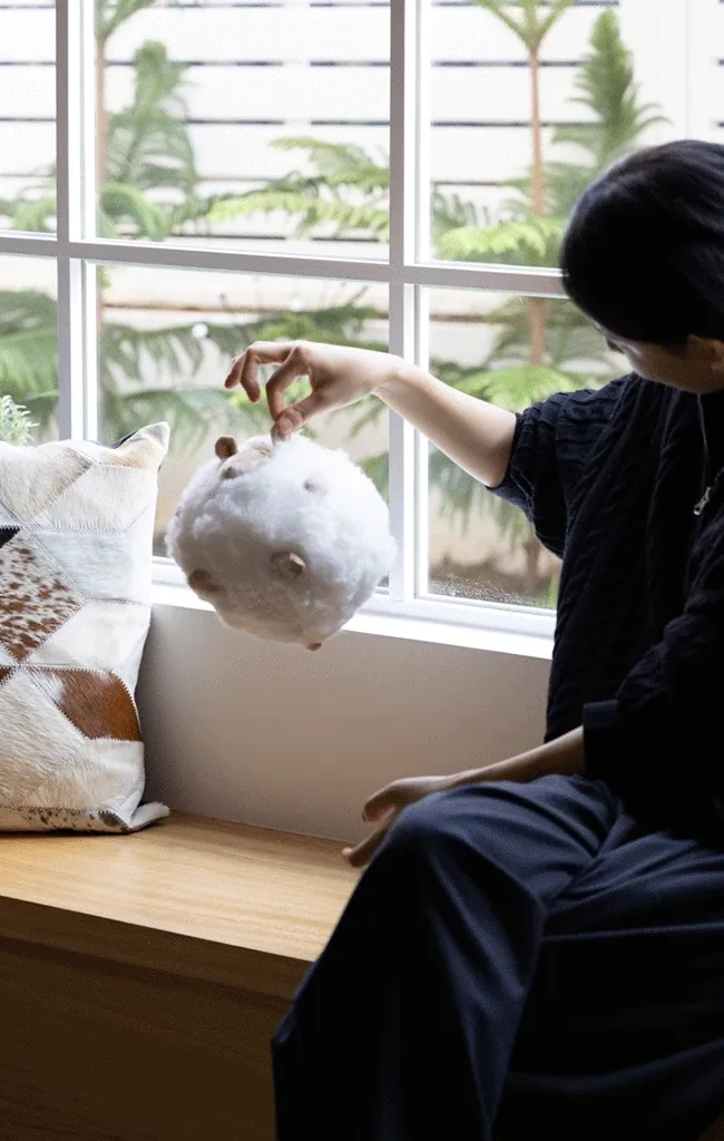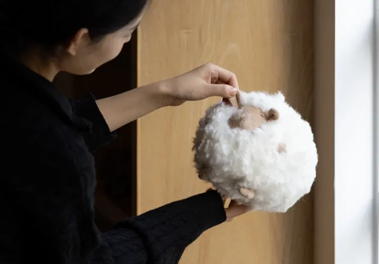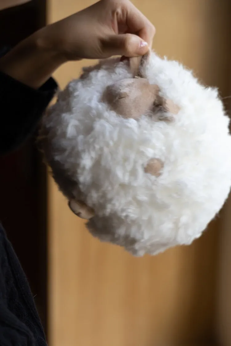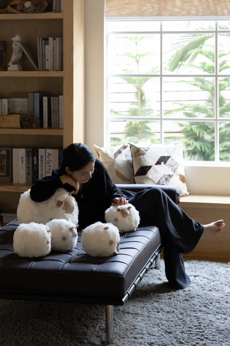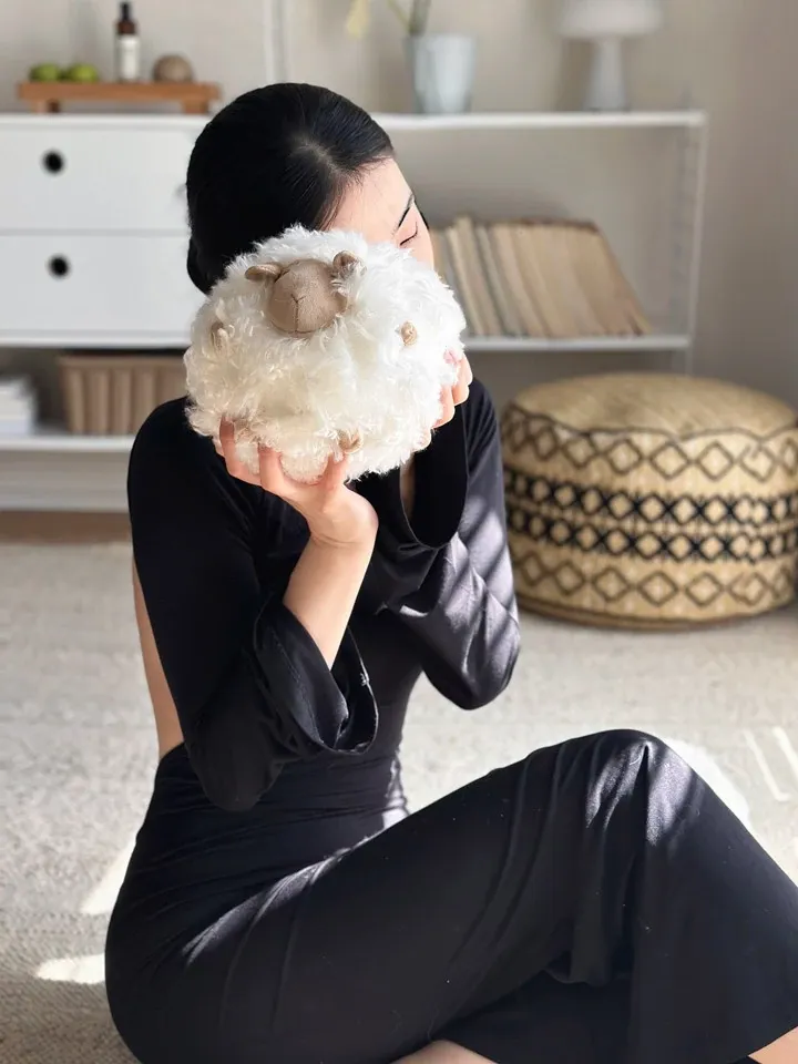 若奈の全体が細い羊毛を使用!Loewのミニシープ・ショーン・クッションボールソファ用抱き枕、クリーム色の腰枕で、あなたのリラックスタイムをさらに快適に!