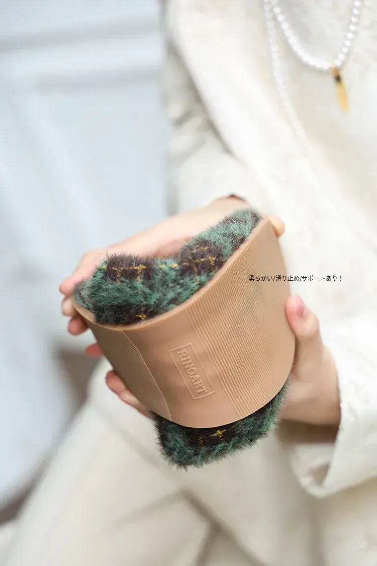 若奈四季のソフトミンクシリーズ / CH@NEL ヴィンテージ パリグリーン スリップオン サンダル 春夏用ホームシューズ - 快適さとスタイルを両立した一足で、リラックスタイムを贅沢に演出!