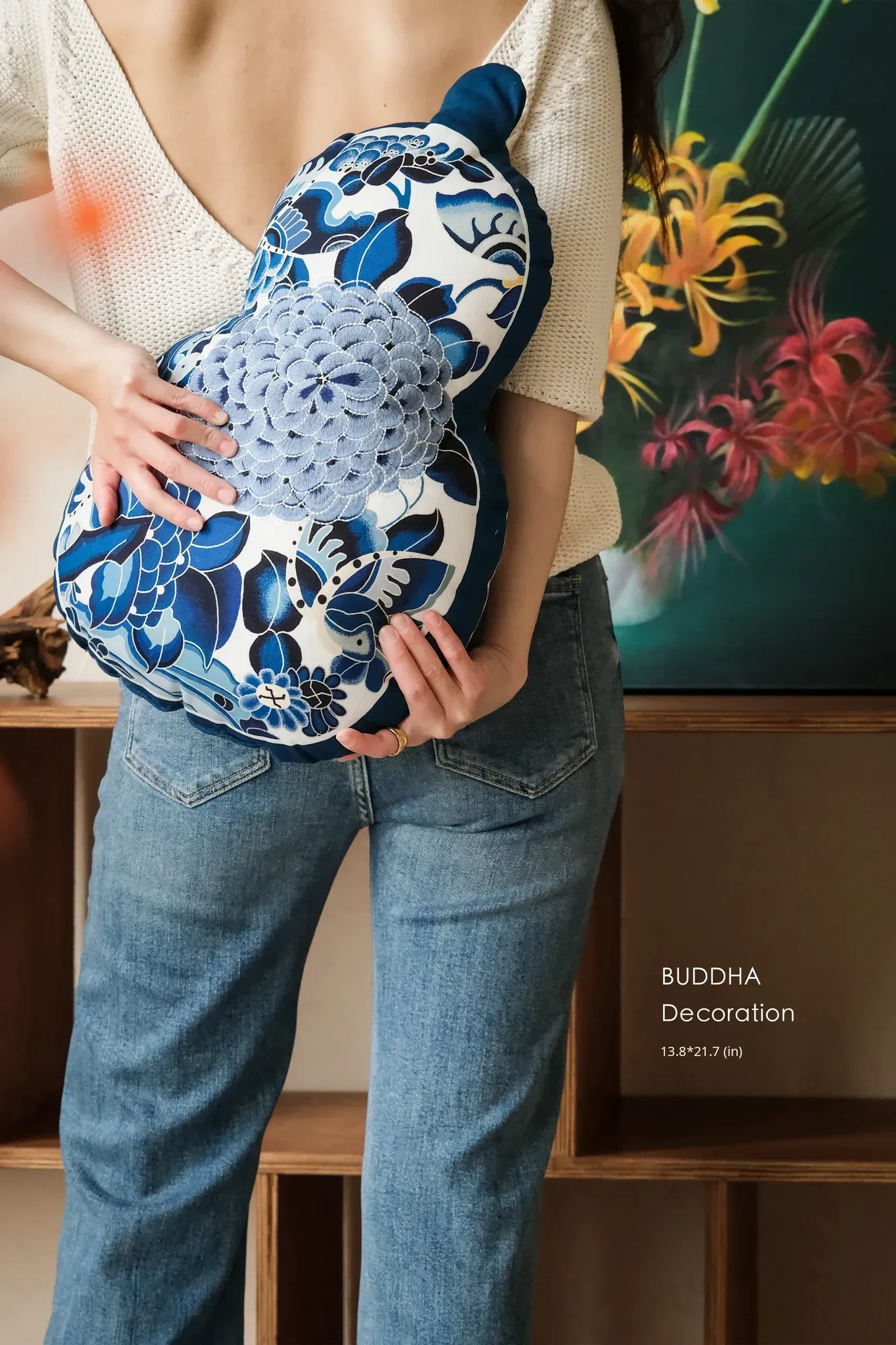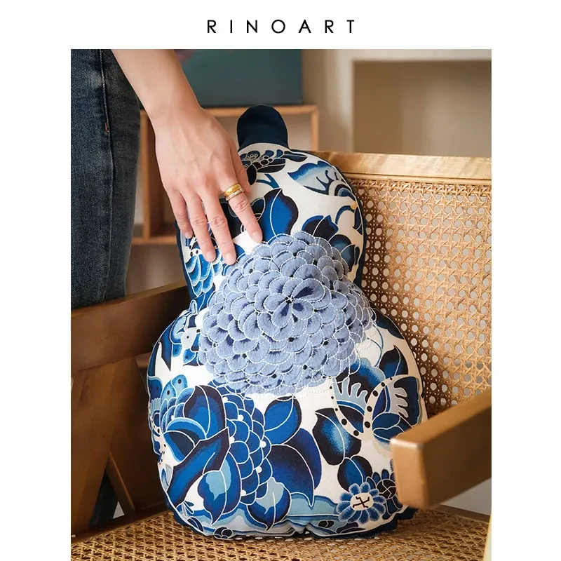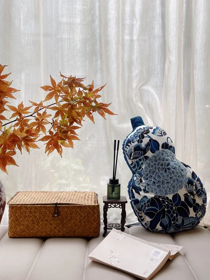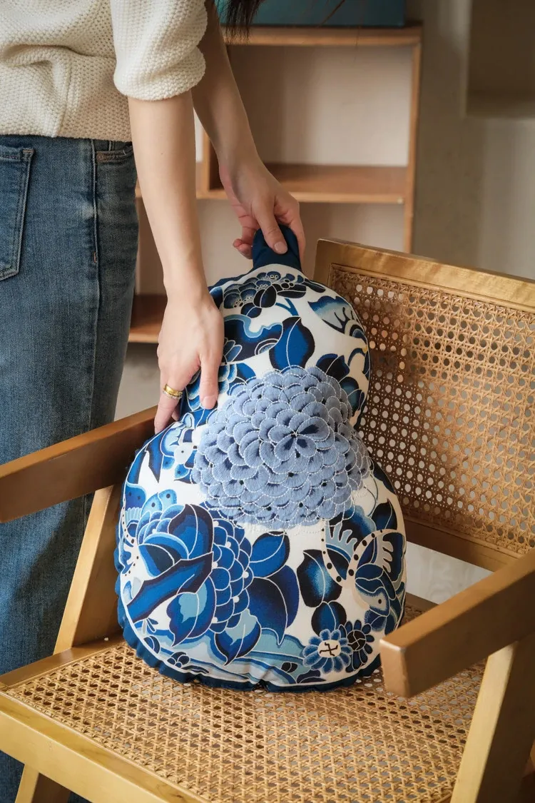 Ruanai New Chinese Style Blue and White Gourd Shaped Pillow - Unique Decorative Cushion for Living Room Sofa, Bedroom Headboard, and Lumbar Support