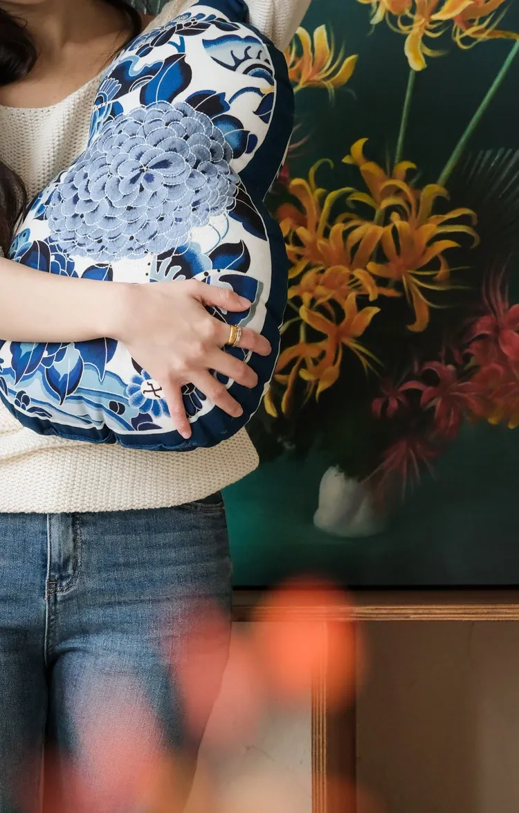 若奈の新中式青花デザインのフラワーポット型クッション - リビングやソファに最適!寝室のベッドヘッドにもぴったりなユニークな腰枕で、心地よいひとときをお届けします。