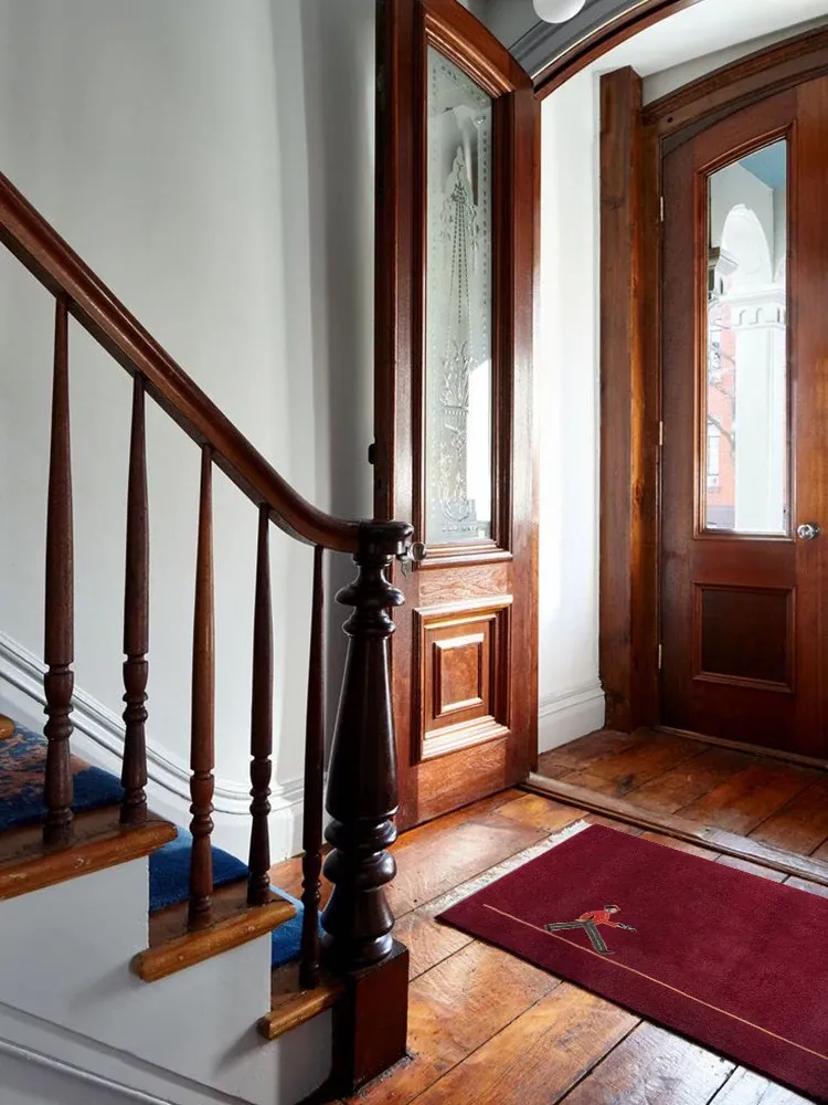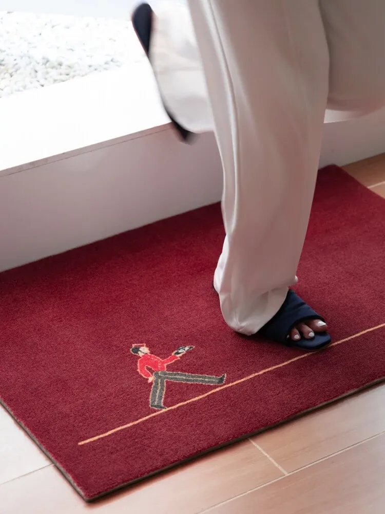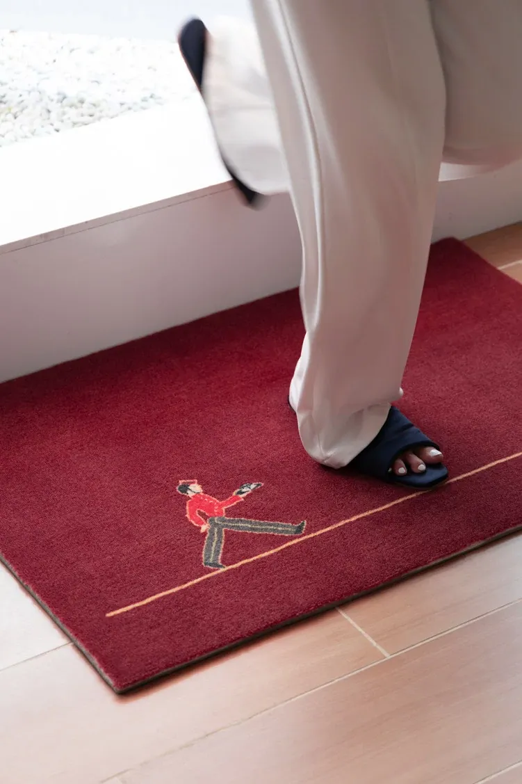 カーティエ侍童シリーズ「ボヤージュ」インスパイアの若奈ラグマット - 新年を祝う鮮やかな赤で、玄関を華やかに演出!おしゃれでエレガントな雰囲気をプラスし、訪れる人々を魅了します。