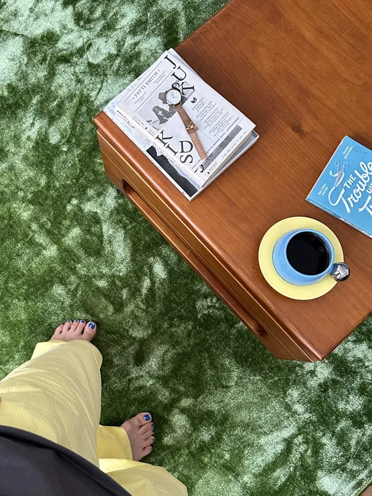 若奈カーペット「緑の野原」シルキー・ネパールシルク触感シリーズ/無地の大地カーペット全面敷きで、贅沢な足触りを実感!あなたの空間を優雅に彩ります。