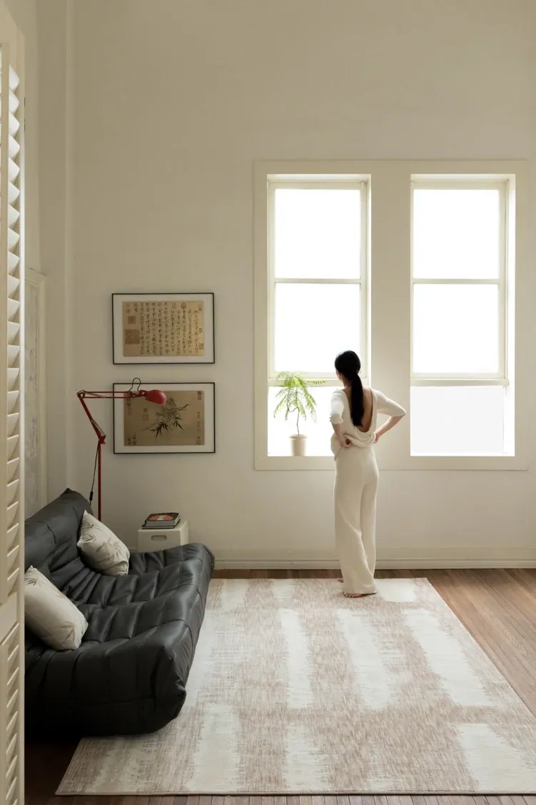 若奈カーペット ホワイトオーク木目シリーズ / 輸入ウール立体浮彫り現代侘び寂びリビングラグ
