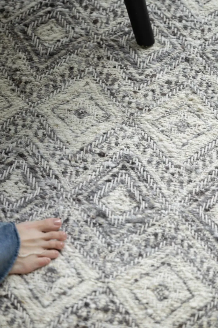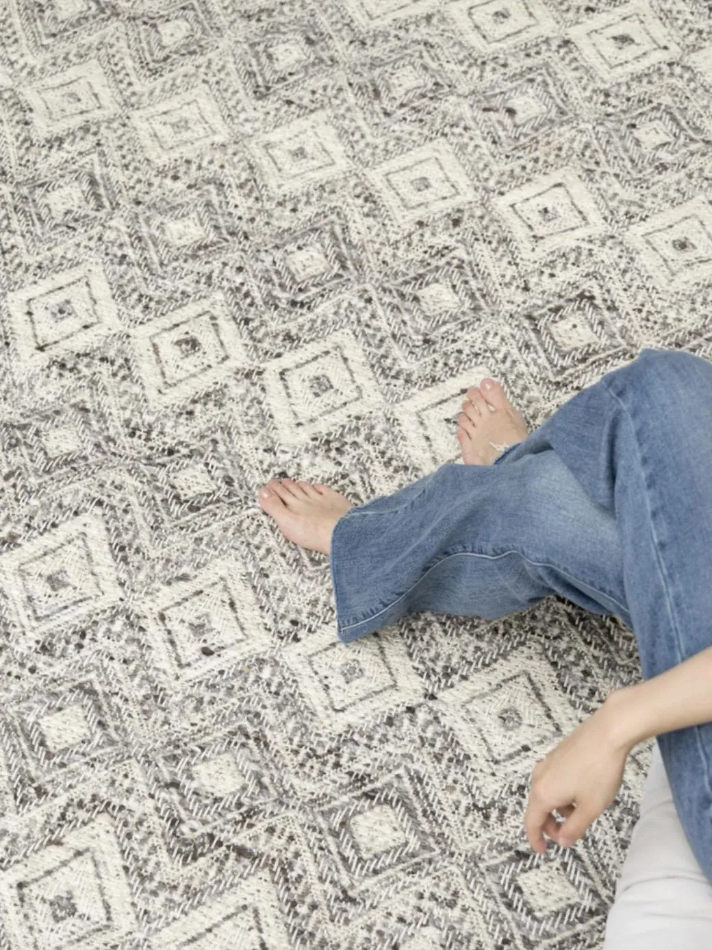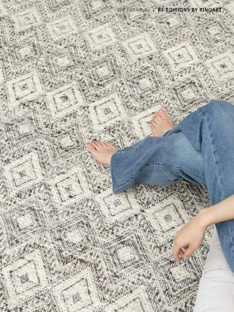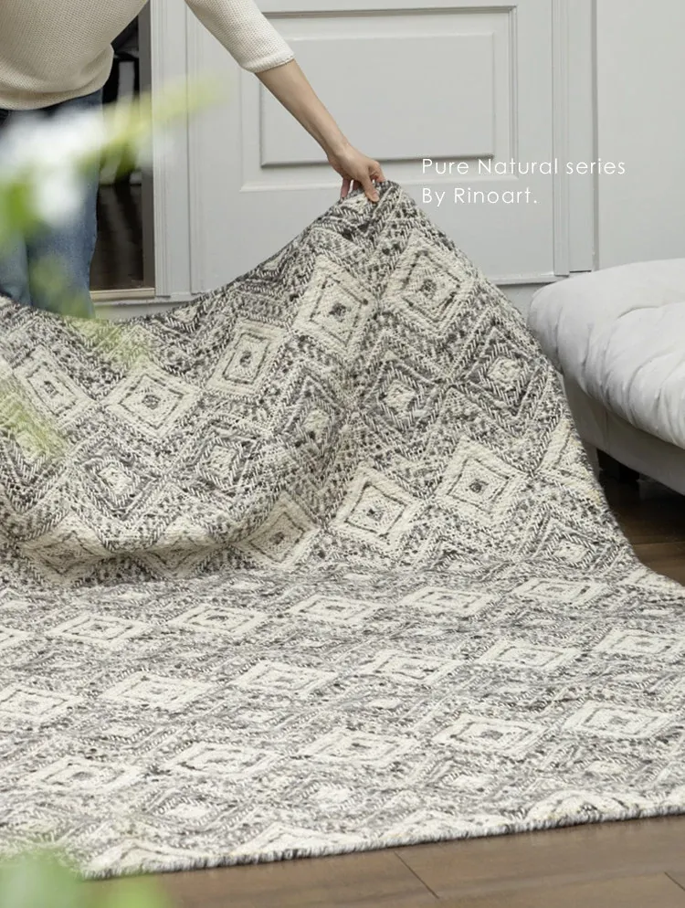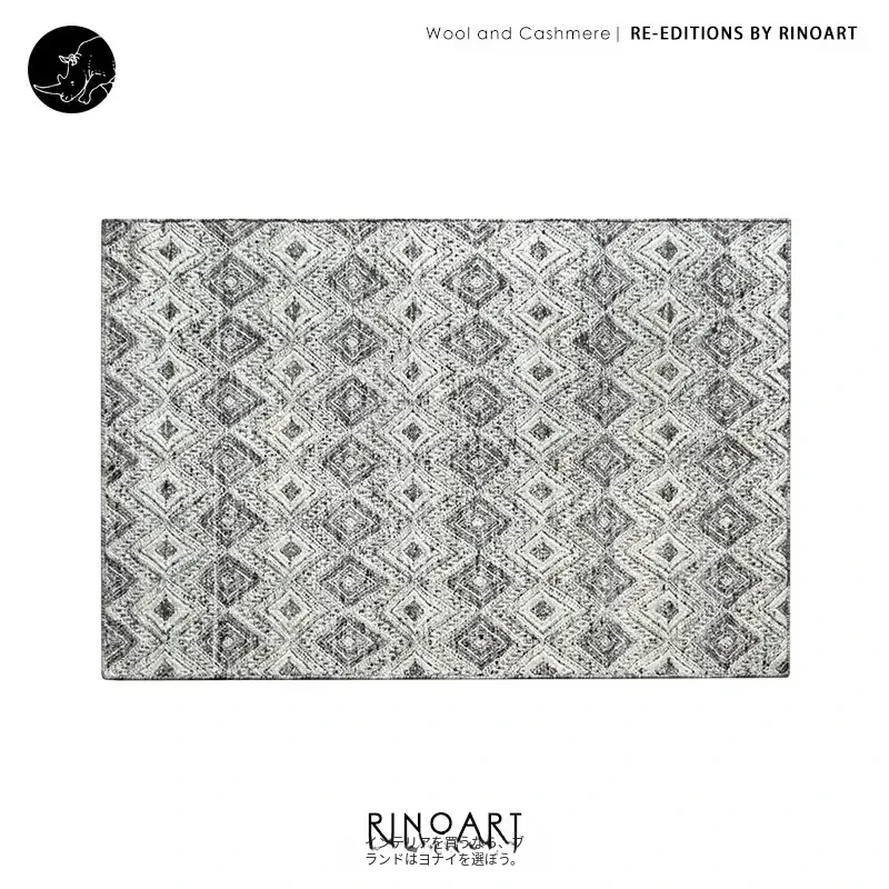 若奈インディアン。手作りの贅沢!インポートウール使用、インド直輸入の両面ダイヤモンド柄ノーグルーラグマット