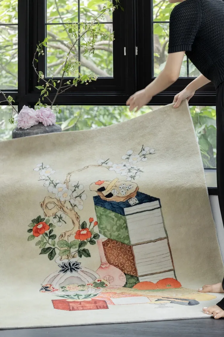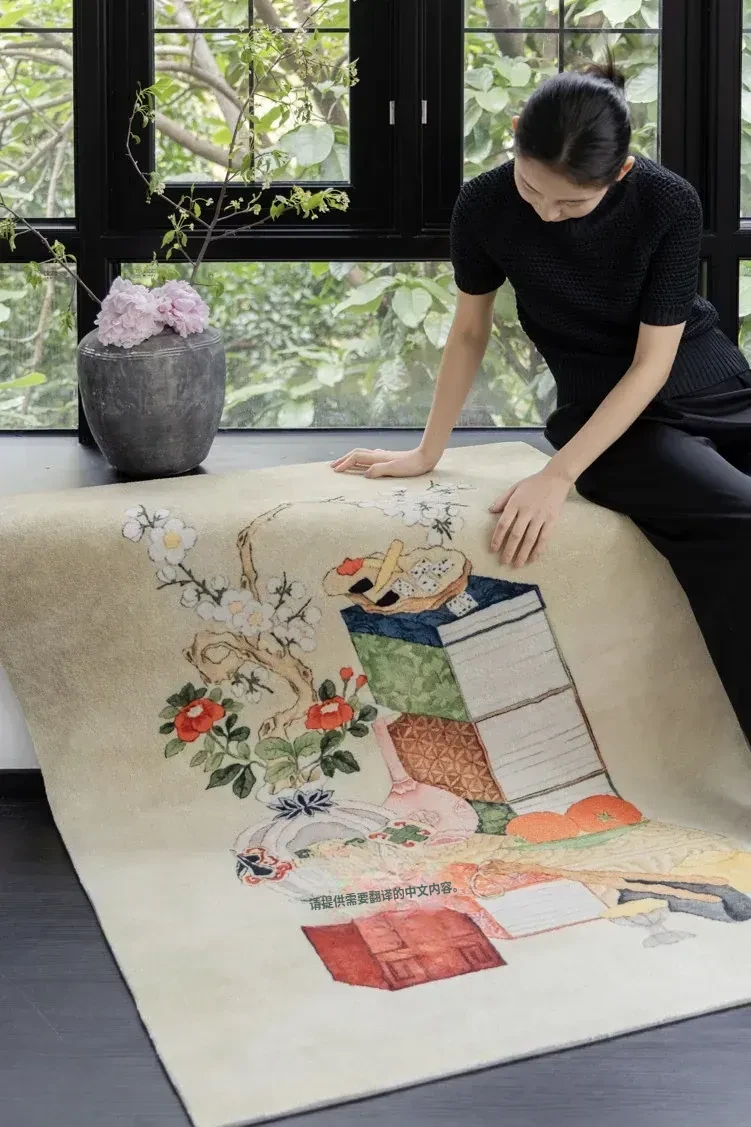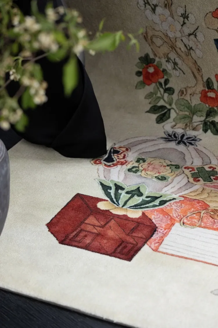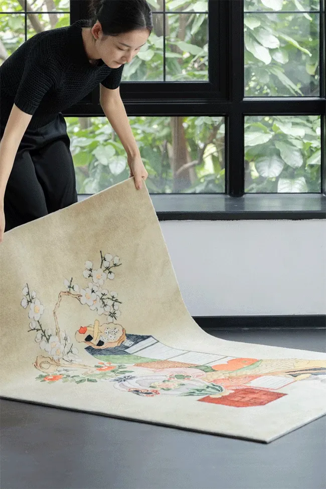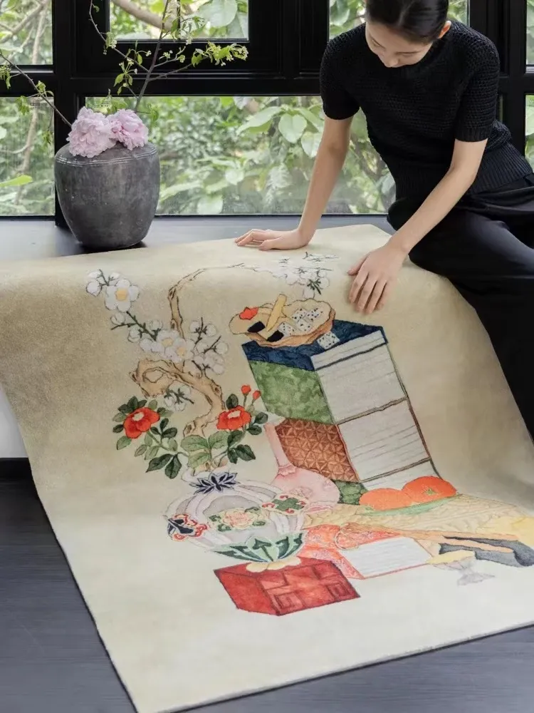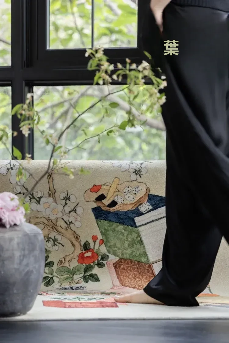若奈カーペット 東方文房/清供シリーズ「文房志」アートカーペット 文人画風の新中式カーペットで、あなたの空間に優雅さと文化的な雰囲気をプラス!