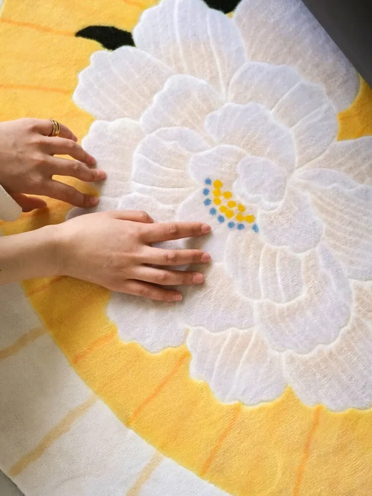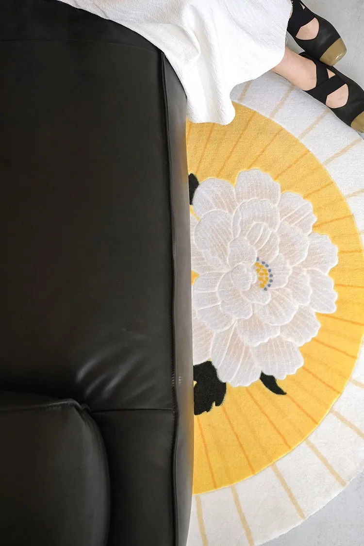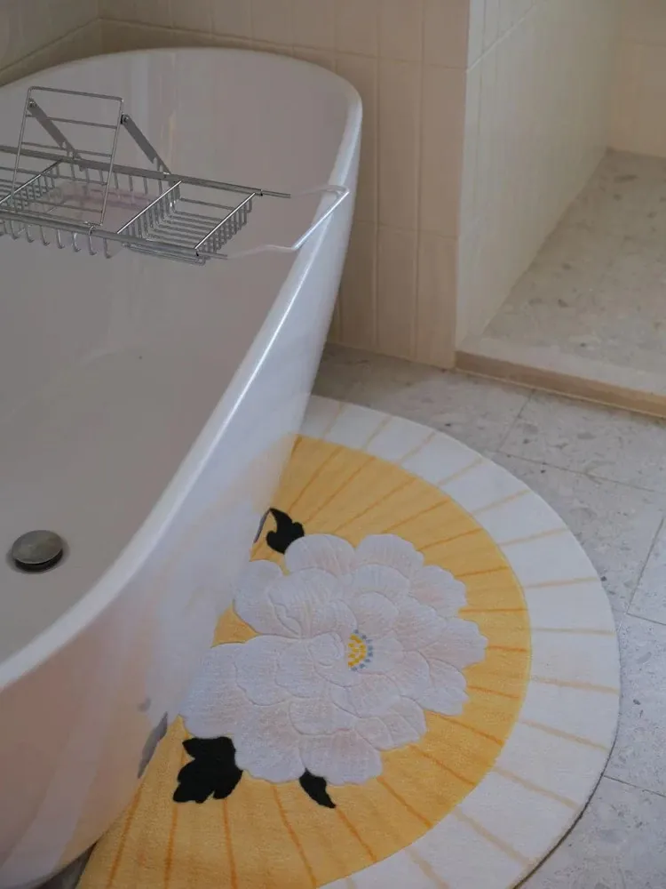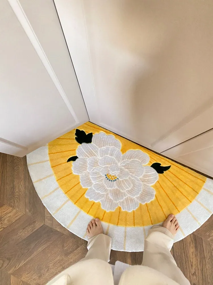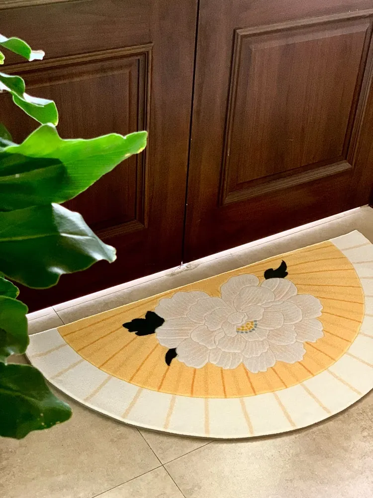 若奈「積善之家」Uma系 東方扇面牡丹デザイン 手彫り立体ドアマット 玄関マット ベッドサイドマット - 高級感あふれるデザインで、お部屋を華やかに演出!柔らかい肌触りで、足元を優しく包み込みます。