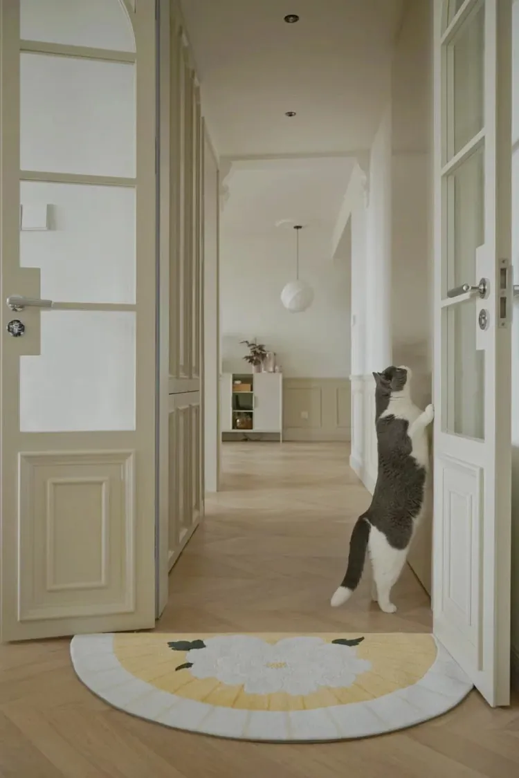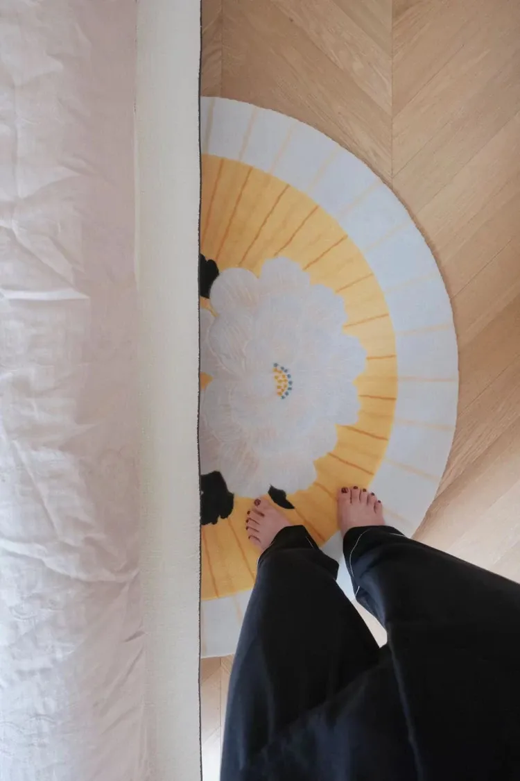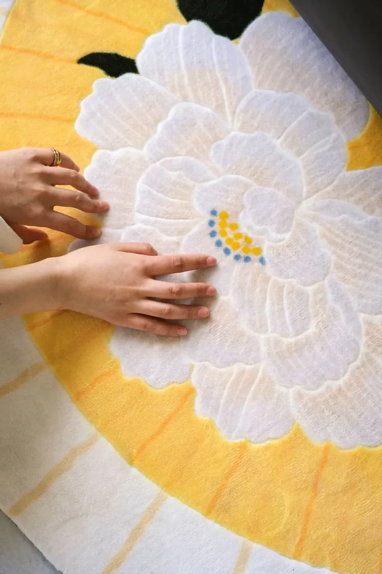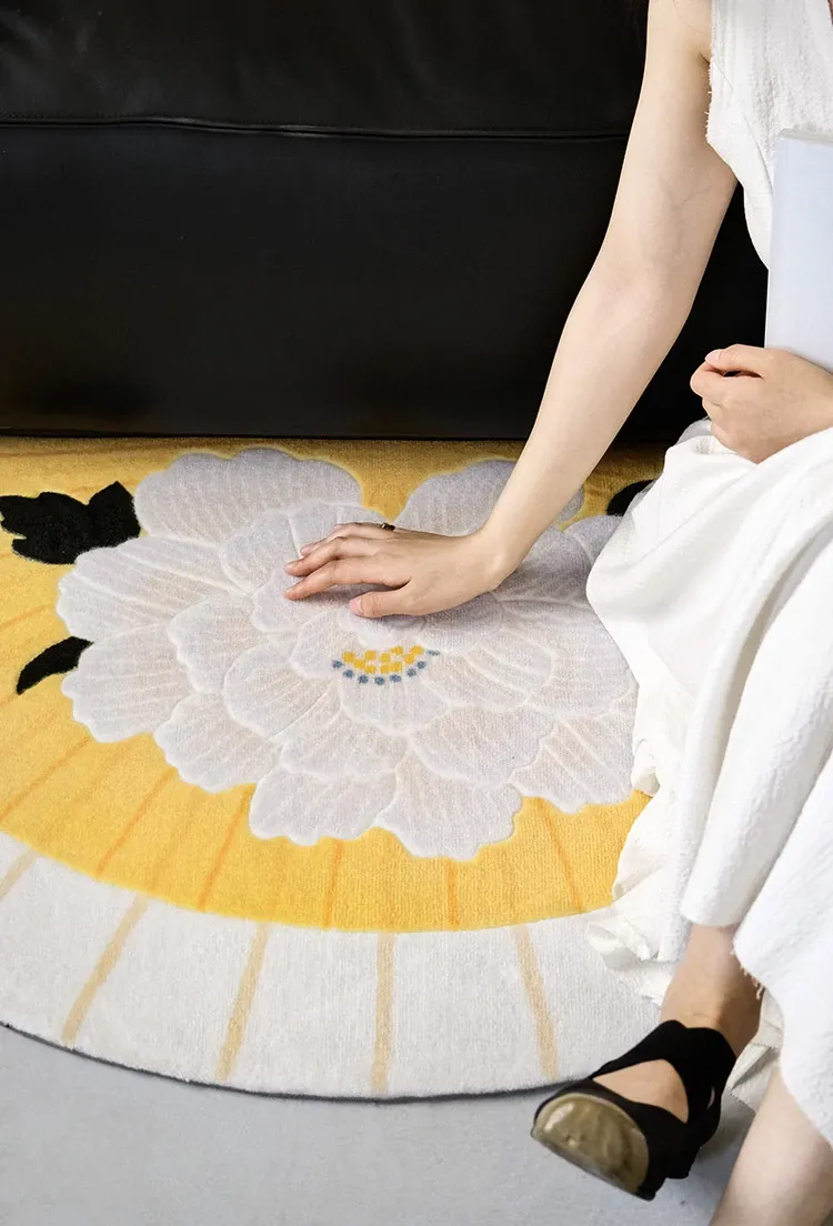 若奈「積善之家」Uma系 東方扇面牡丹デザイン 手彫り立体ドアマット 玄関マット ベッドサイドマット - 高級感あふれるデザインで、お部屋を華やかに演出!柔らかい肌触りで、足元を優しく包み込みます。