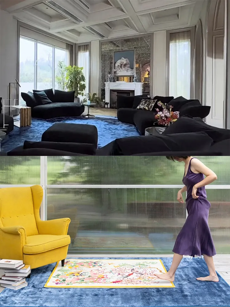 若奈ラグ シルキー・ネパールシルクの足触りシリーズ / 隠れた色合いの単色リビング用ラグ・フルカバー