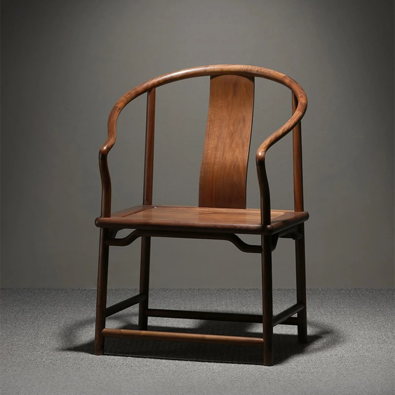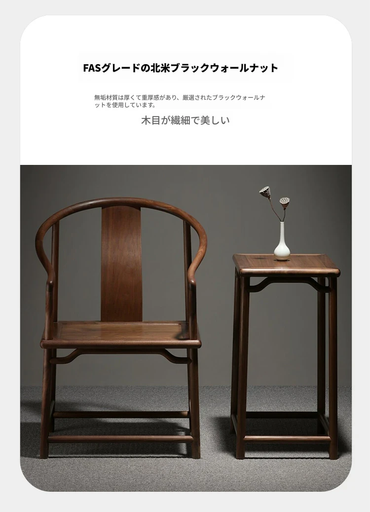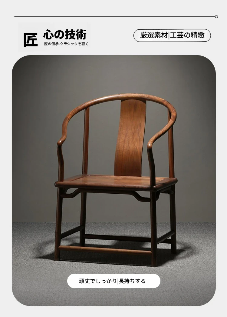 高級天然木製の高背椅子 - 茶道や書斎にぴったり!官帽デザインの太師椅子は、快適な座り心地を提供し、胡桃木の美しい木目が魅力。おしゃれなダイニングや仕事空間に最適な一品です。