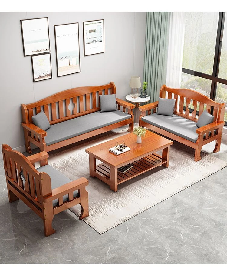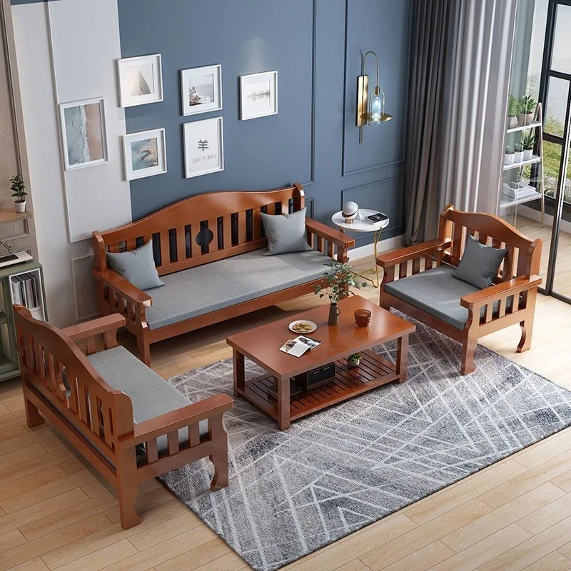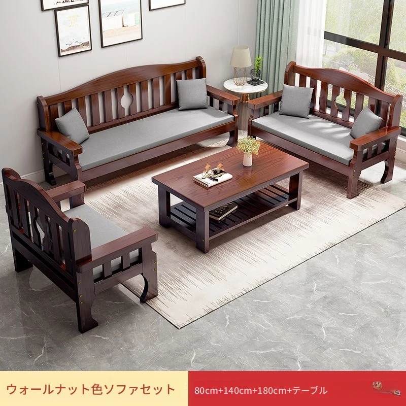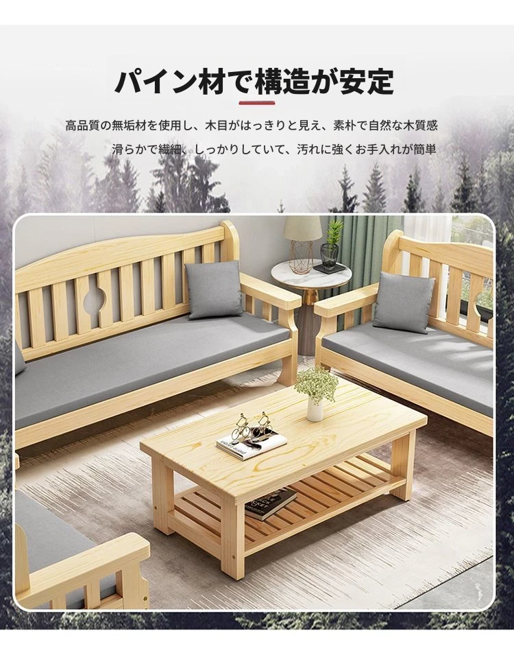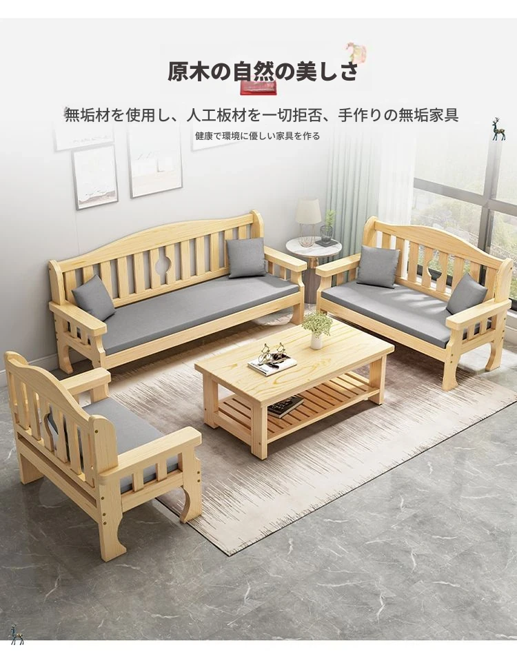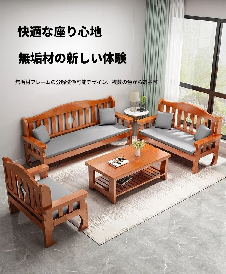【おすすめセット】シングル+ダブル+スリー+コーヒーテーブル/環境保護クリア塗装色【クッション+抱き枕+組み立て工具付き】