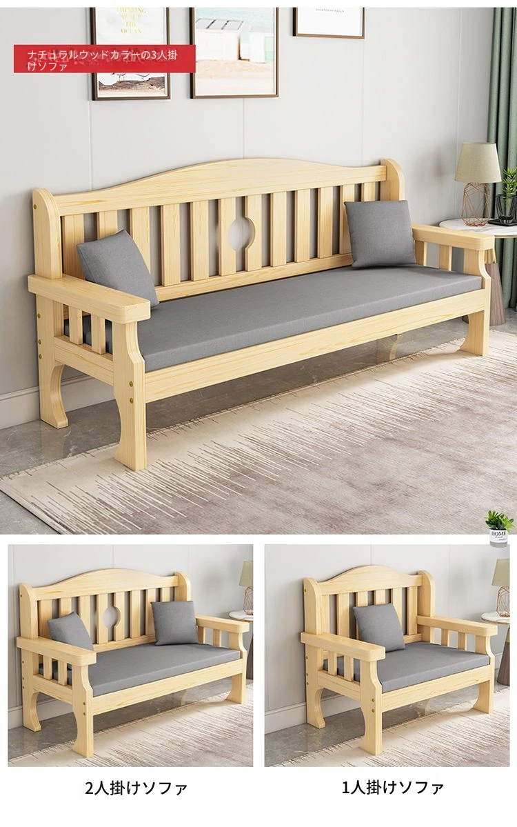 【スリー】長さ180幅58高さ85/無塗装原木色【クッション+抱き枕+組み立て工具付き】