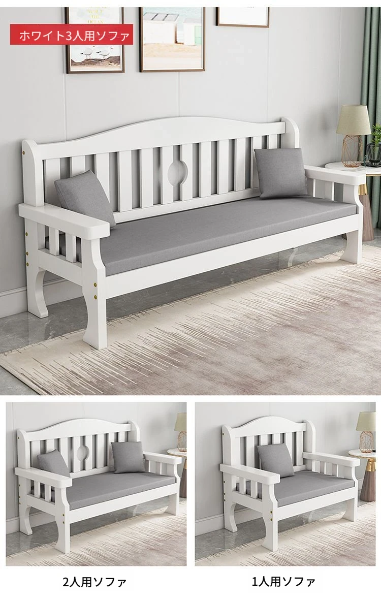 【スリー】長さ180幅58高さ85/環境保護ホワイト塗装色【クッション+抱き枕+組み立て工具付き】