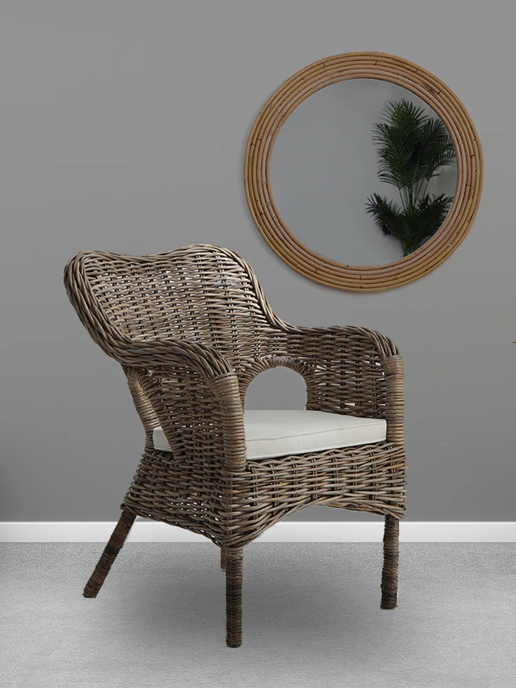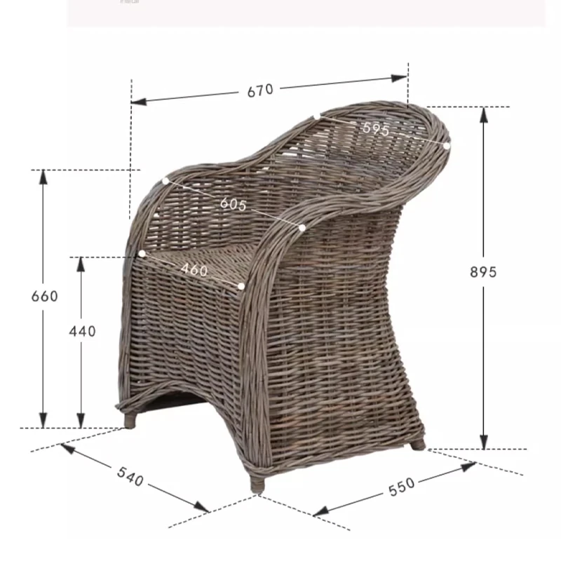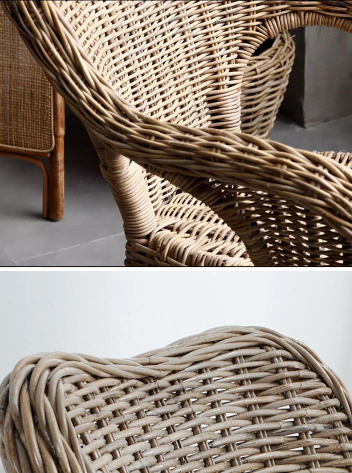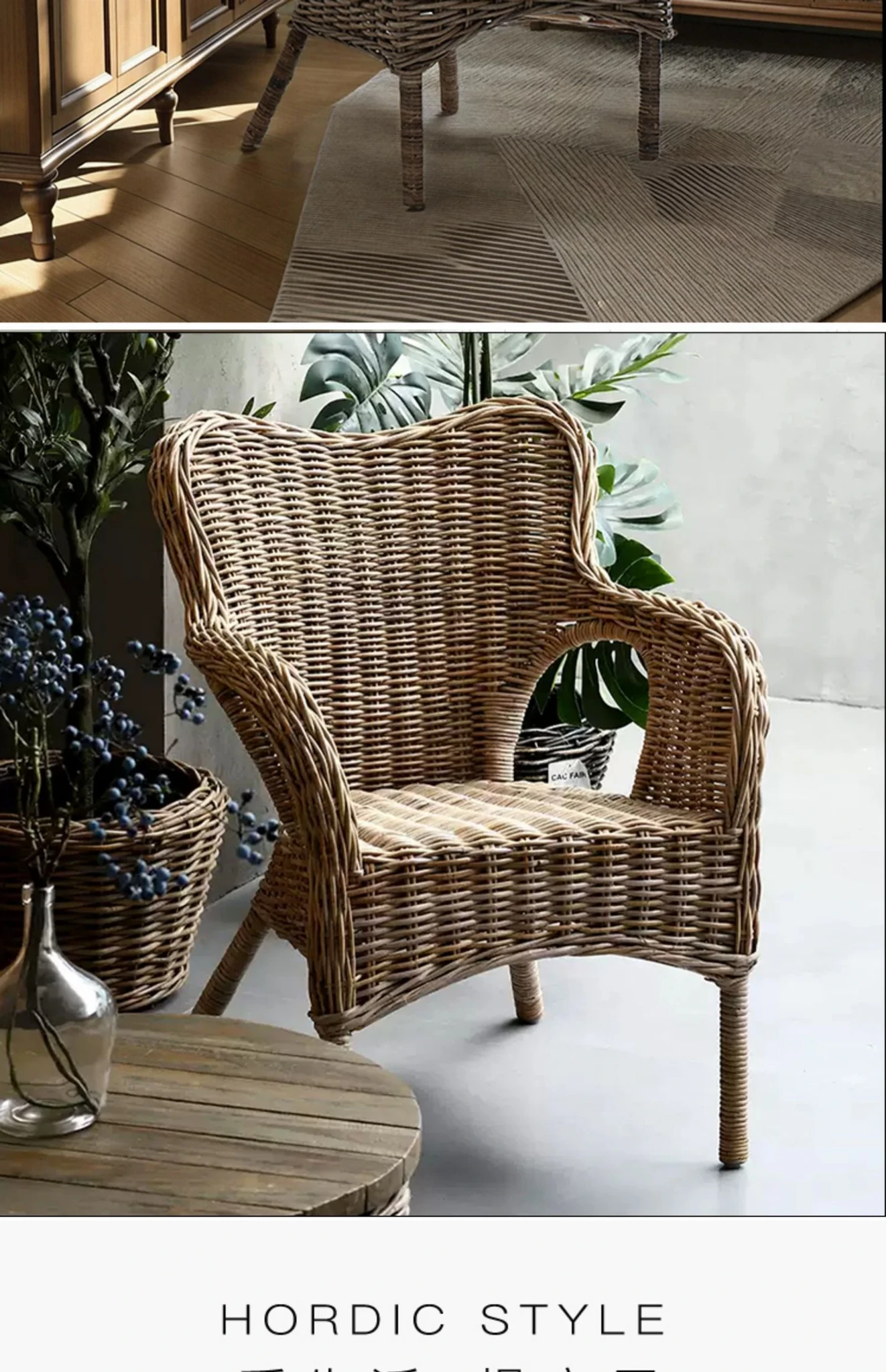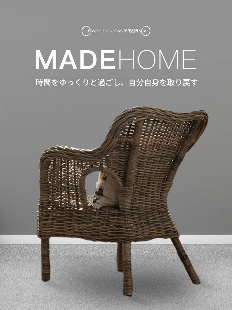 スローライフ東南アジア風 インドネシア製ラタン編み一人掛け椅子 ガーデン用侘寂スタイル 中古の天然フレンチアウトドアラタンチェアで、心地よいひとときを楽しもう!