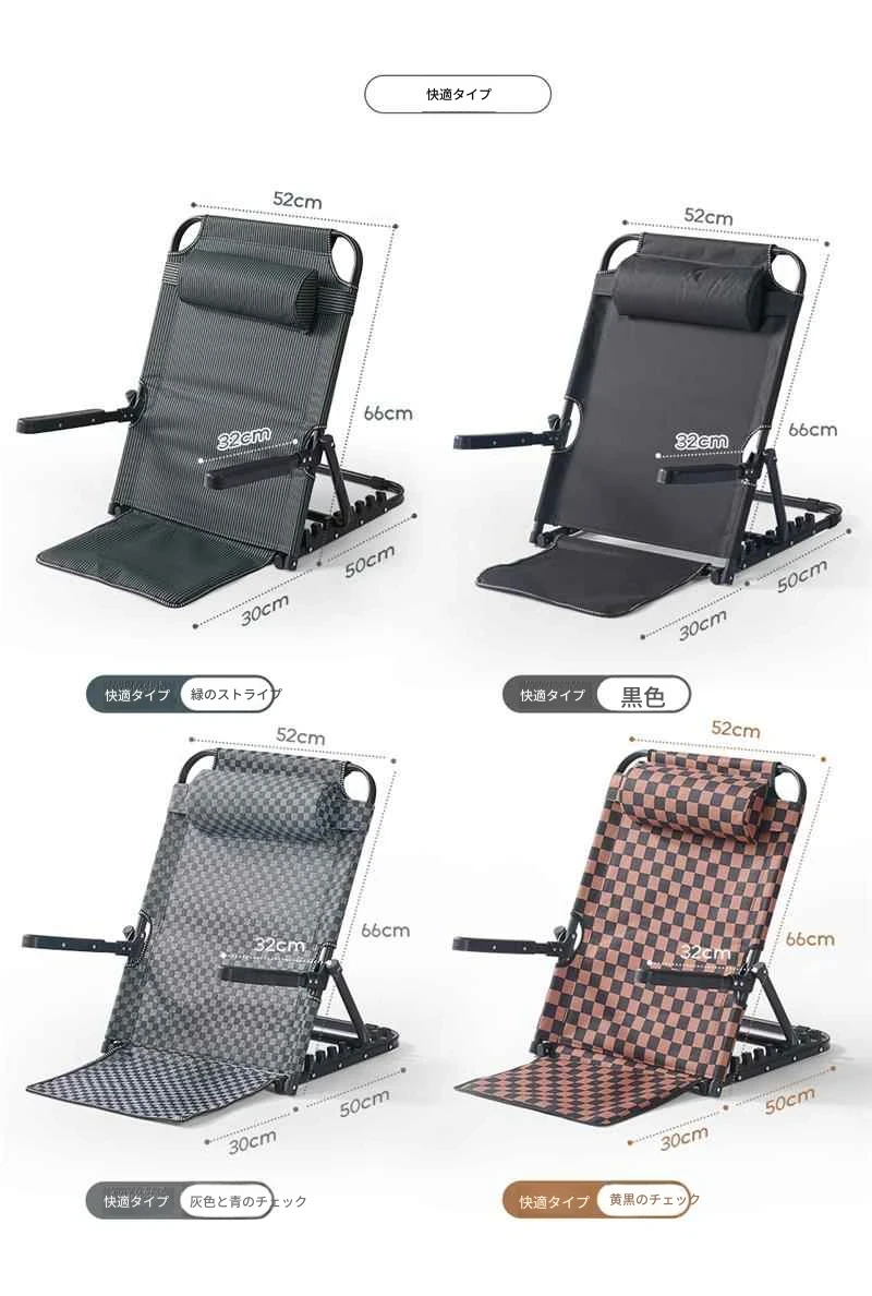 【8段快適ソファモデル+アームレスト+クッション】(千鳥格子・強化タイプ)8段調整可能+ヘッドレスト