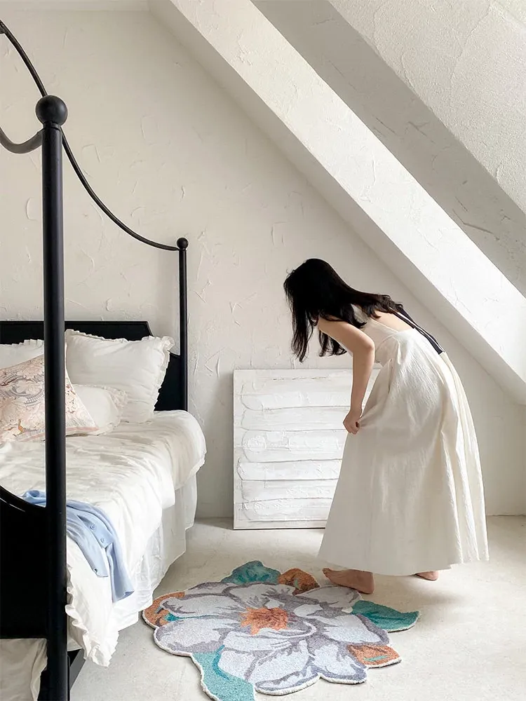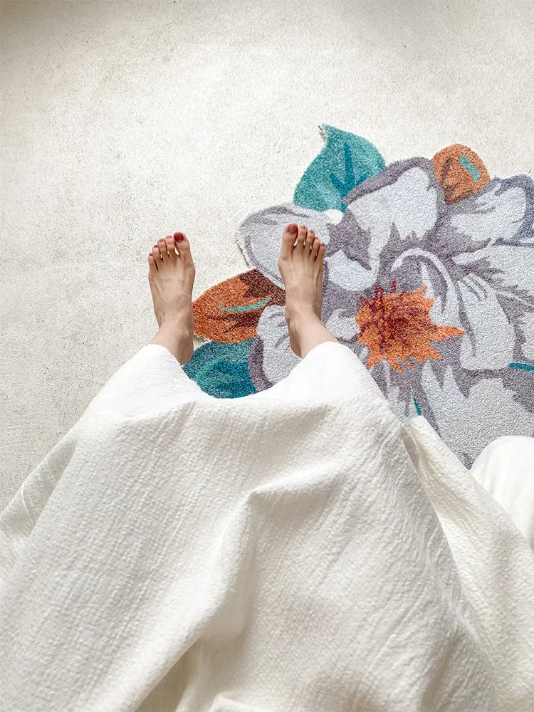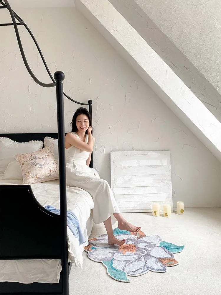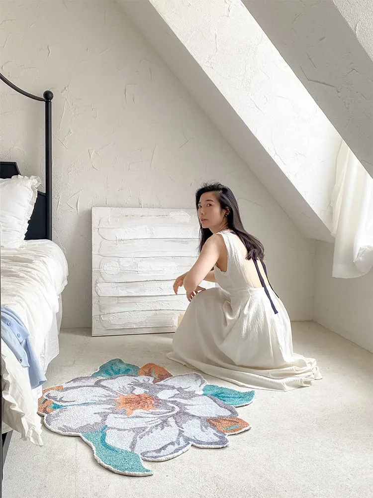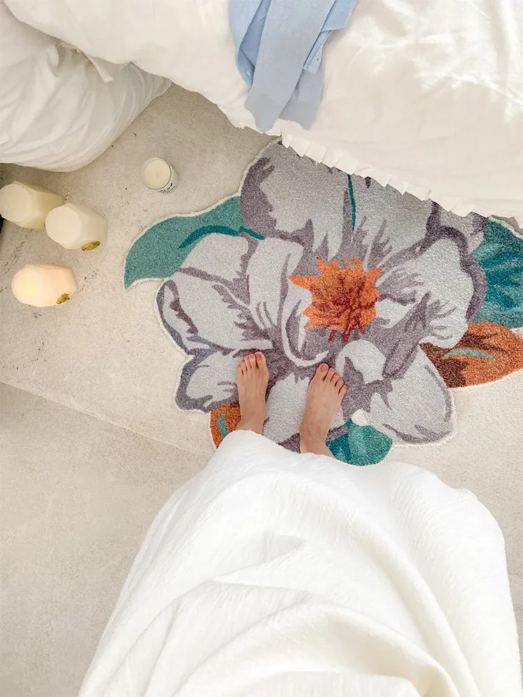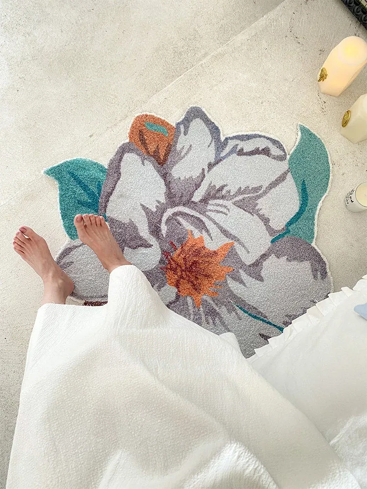驚きの美しさ!ロナ山茶花デザインのラグ、ベッドサイドやバスルーム、玄関、鏡前、クローゼットにぴったりのマット!快適さとスタイルを兼ね備えた一枚をお楽しみください。