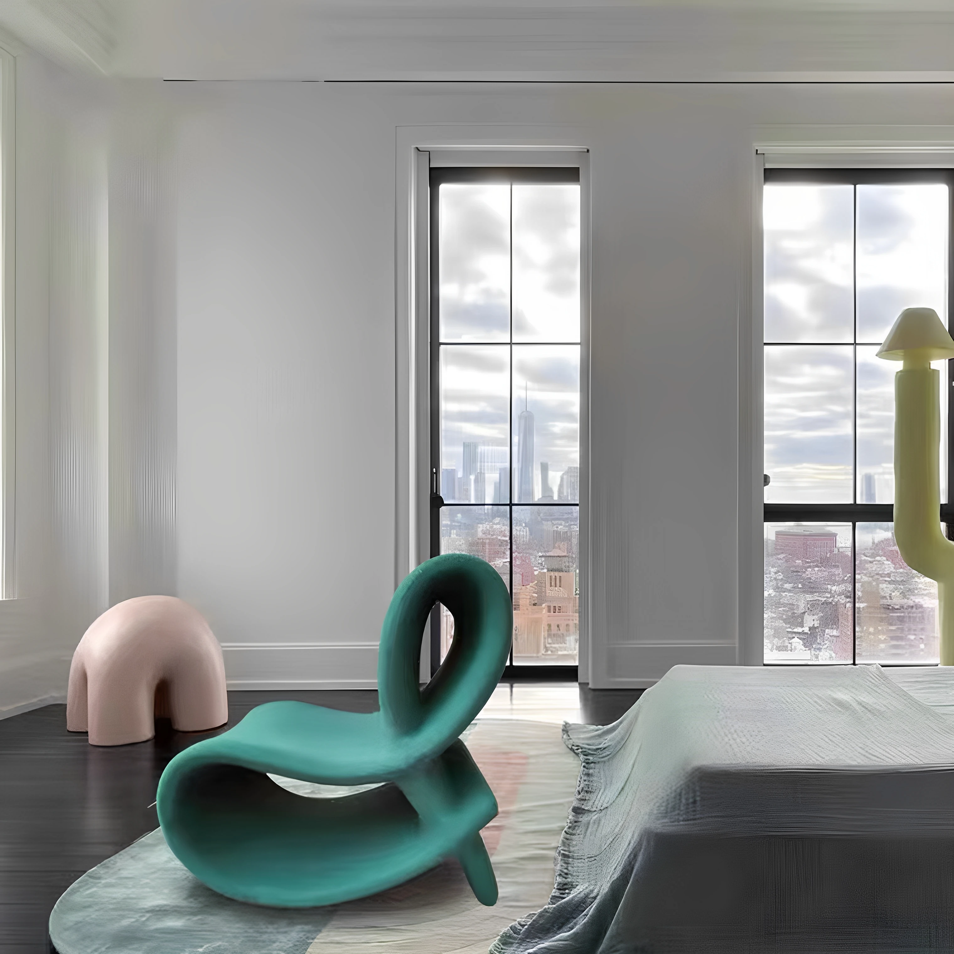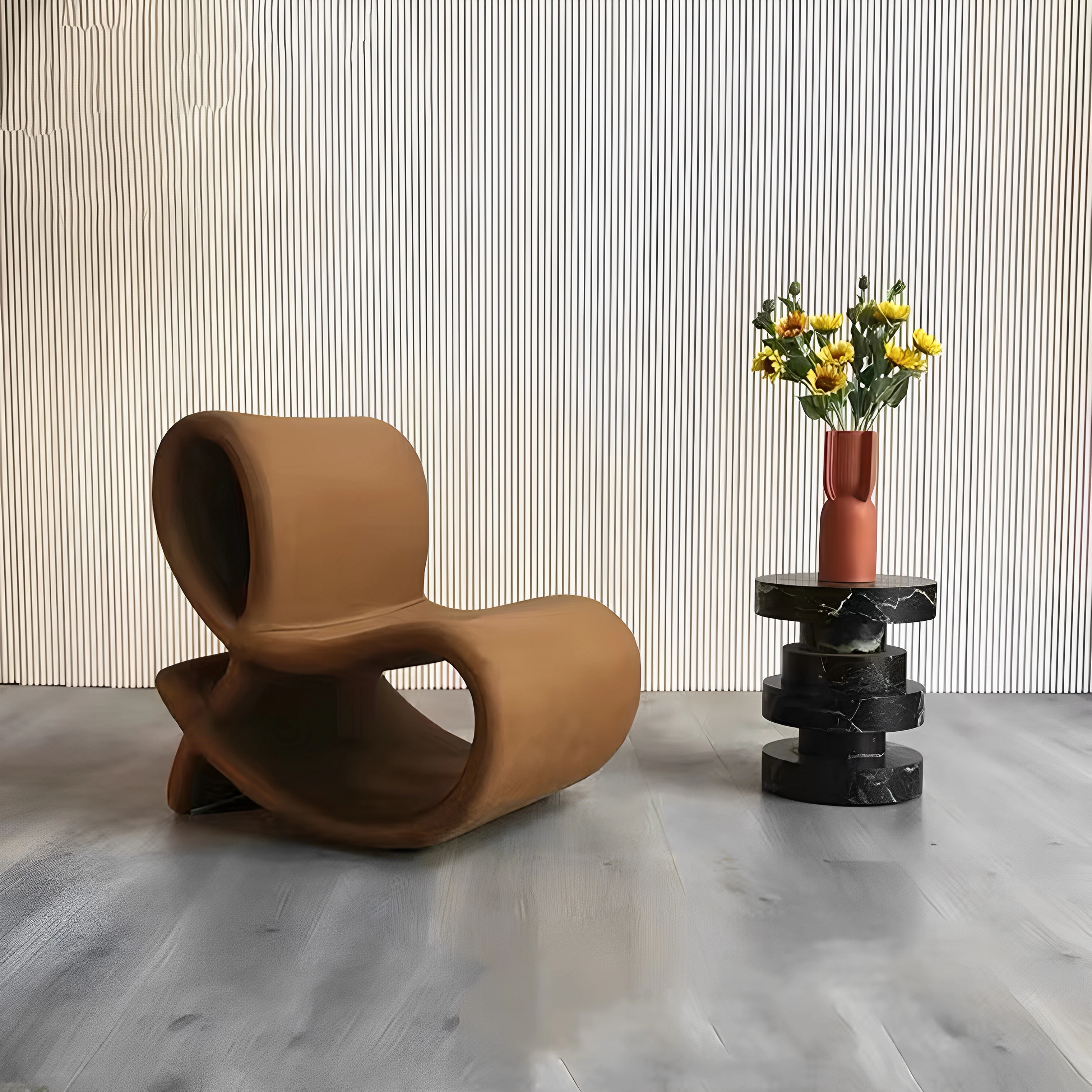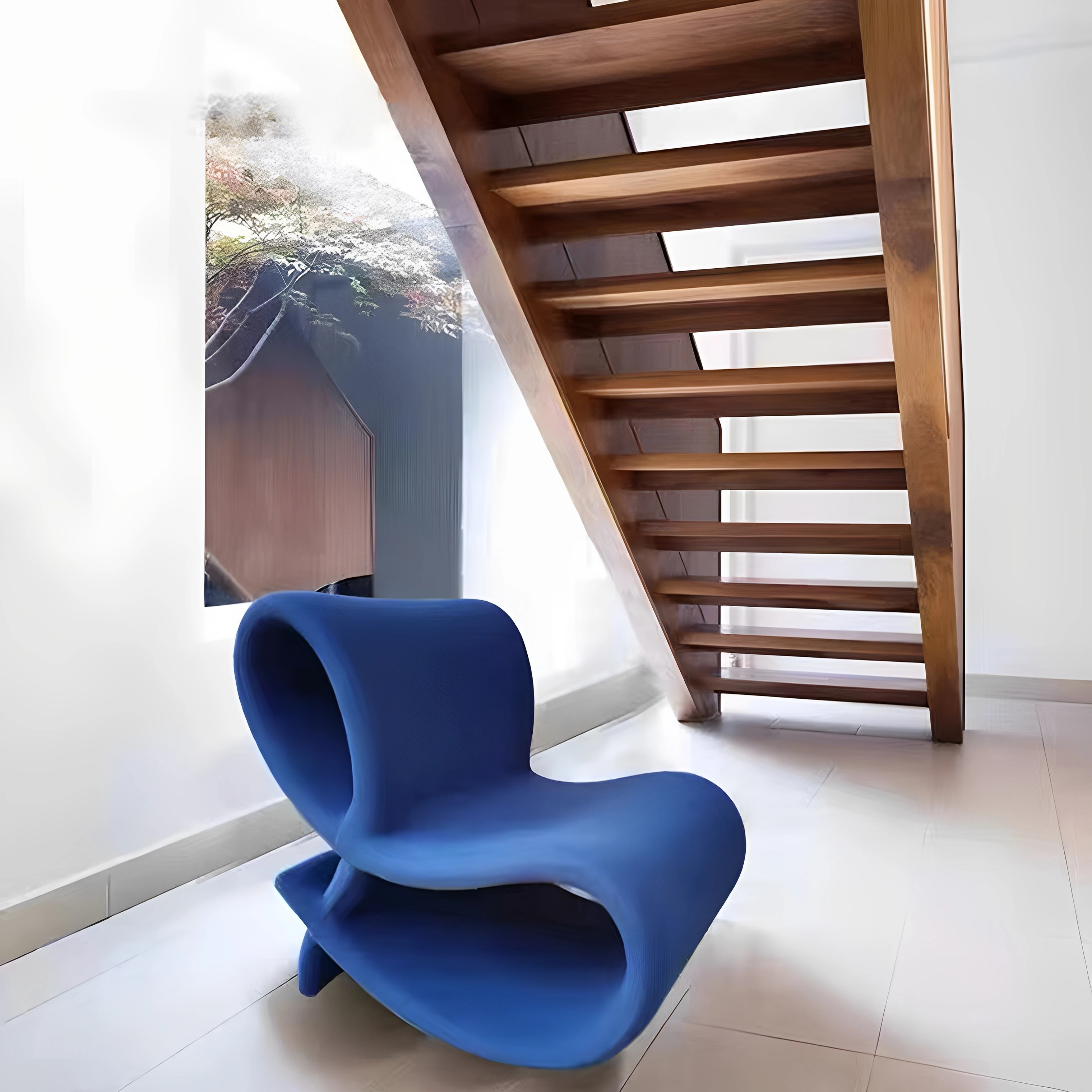 話題のデザイン!個性的な形状のメッシュバックチェア - アートなカーブが魅力の一人掛けソファ!インテリアに映えるおしゃれなリラックスチェア、あなたの空間を特別に演出します。
