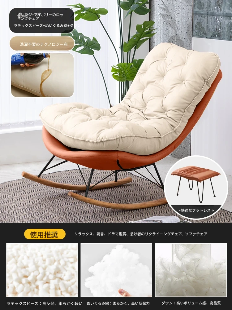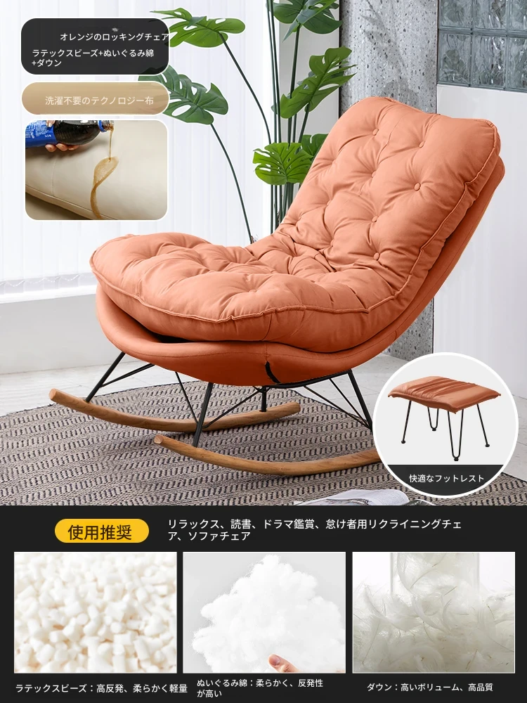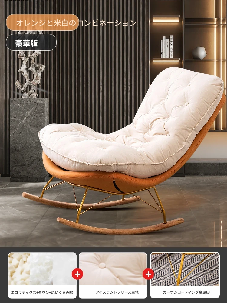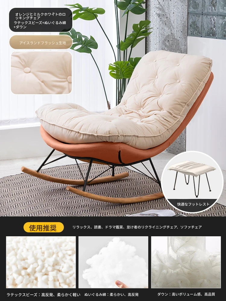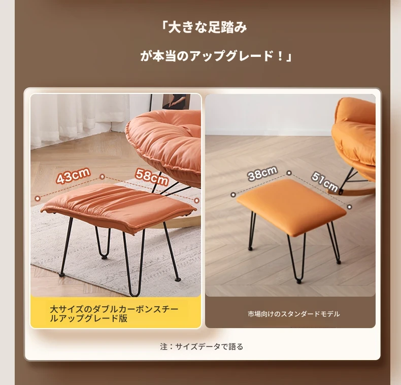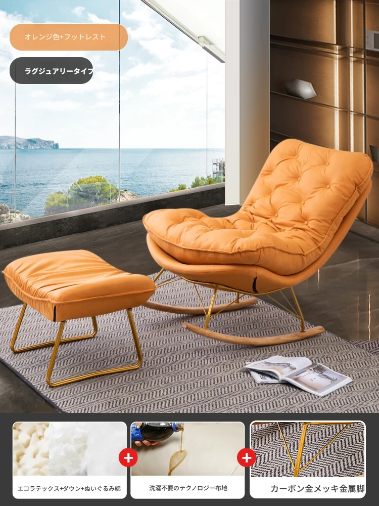 【豪華な無垢材脚品質版+フットレスト金色脚】オレンジ