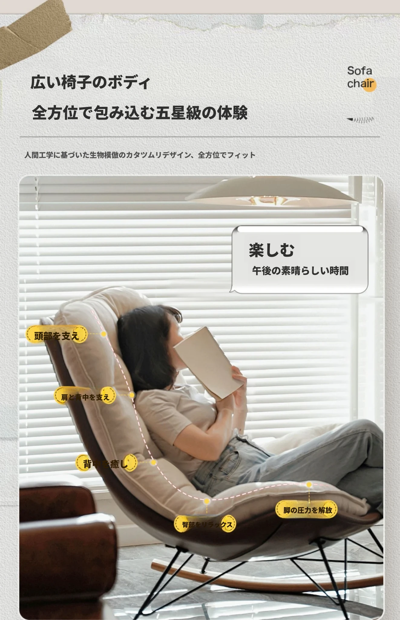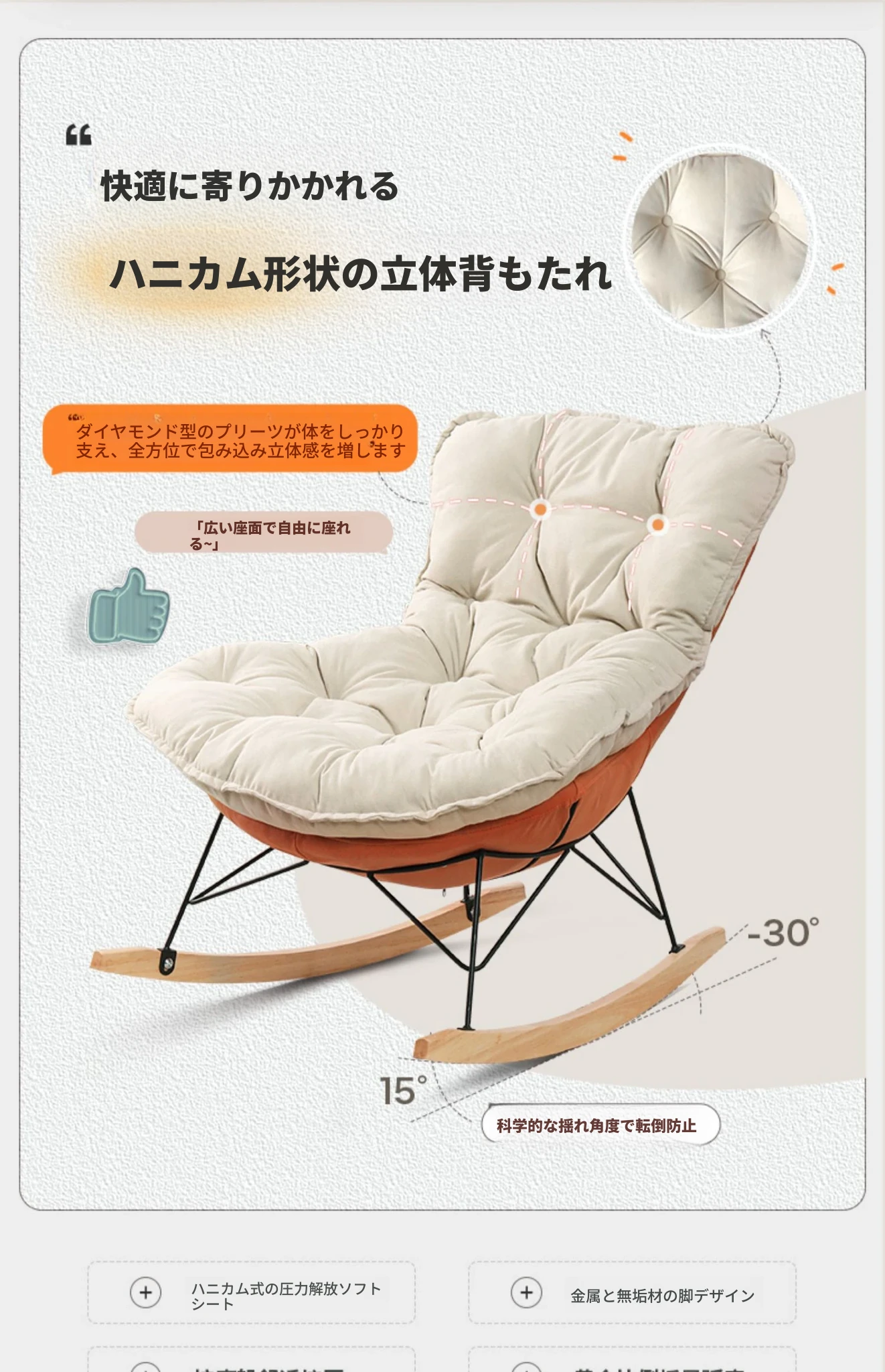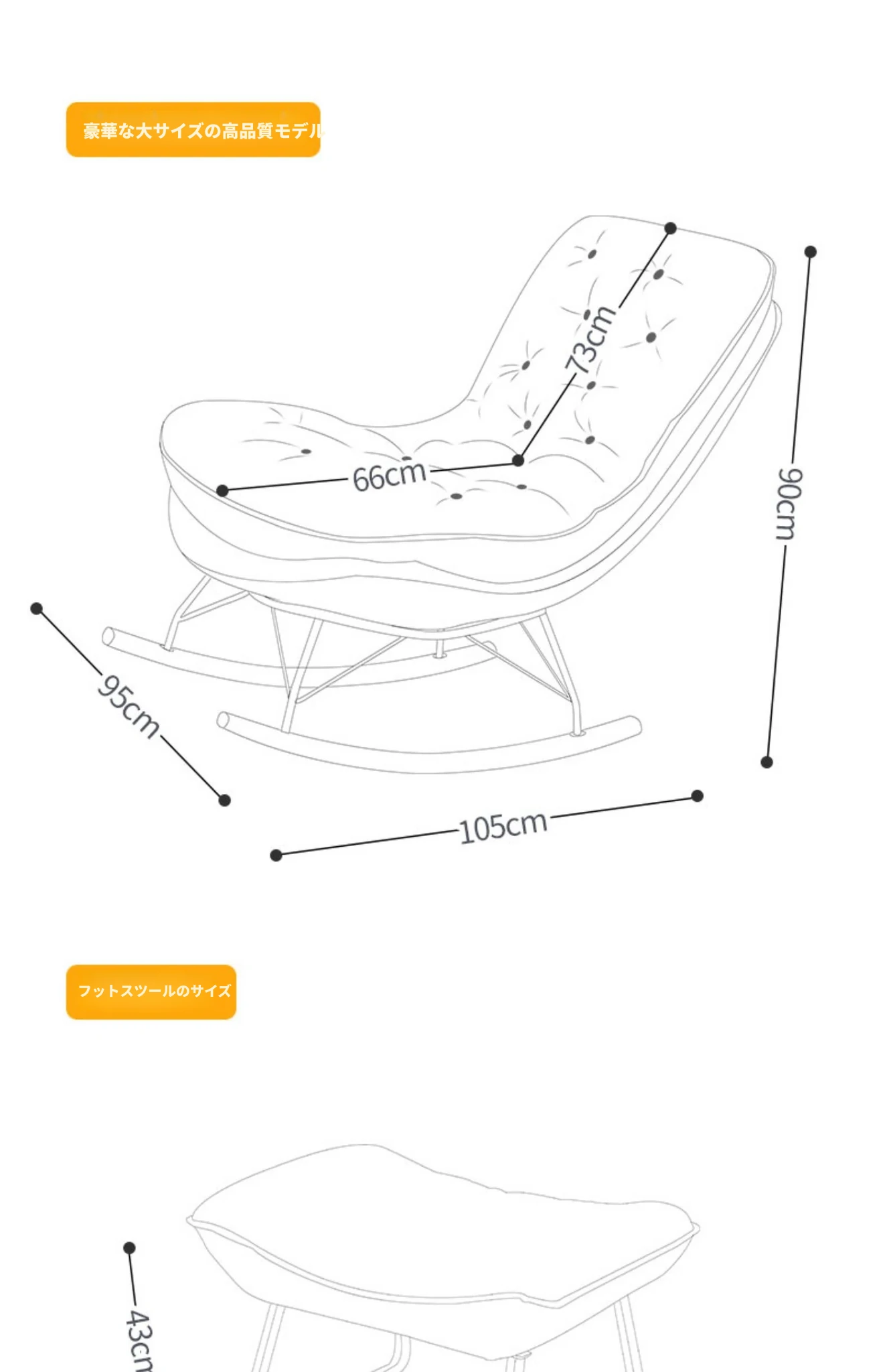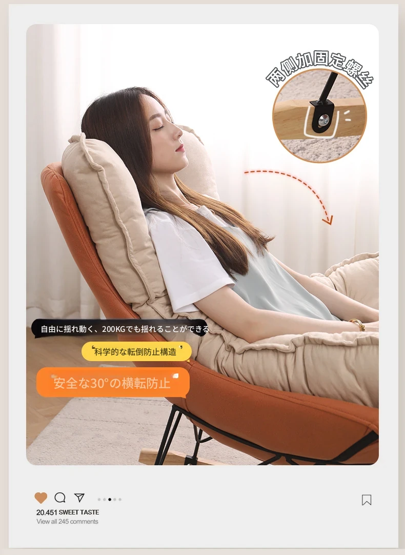 【豪華な無垢材脚品質版+フットレスト金色脚】オレンジ