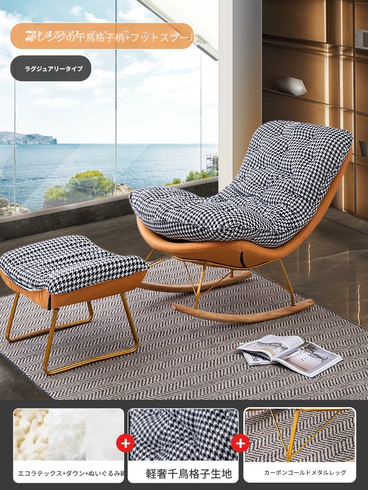 【豪華な無垢材脚品質版+フットレスト金色脚】【コットンリネン】オレンジと千鳥格子