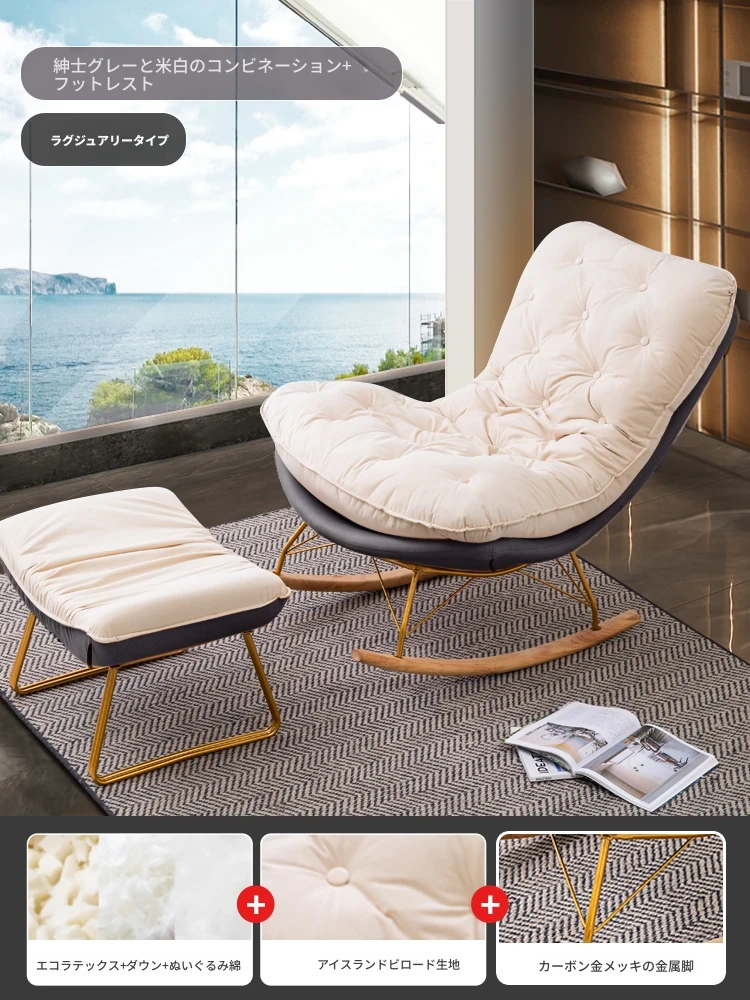 【豪華な無垢材脚品質版+フットレスト金色脚】【ベルベット】紳士グレーとクリームホワイト