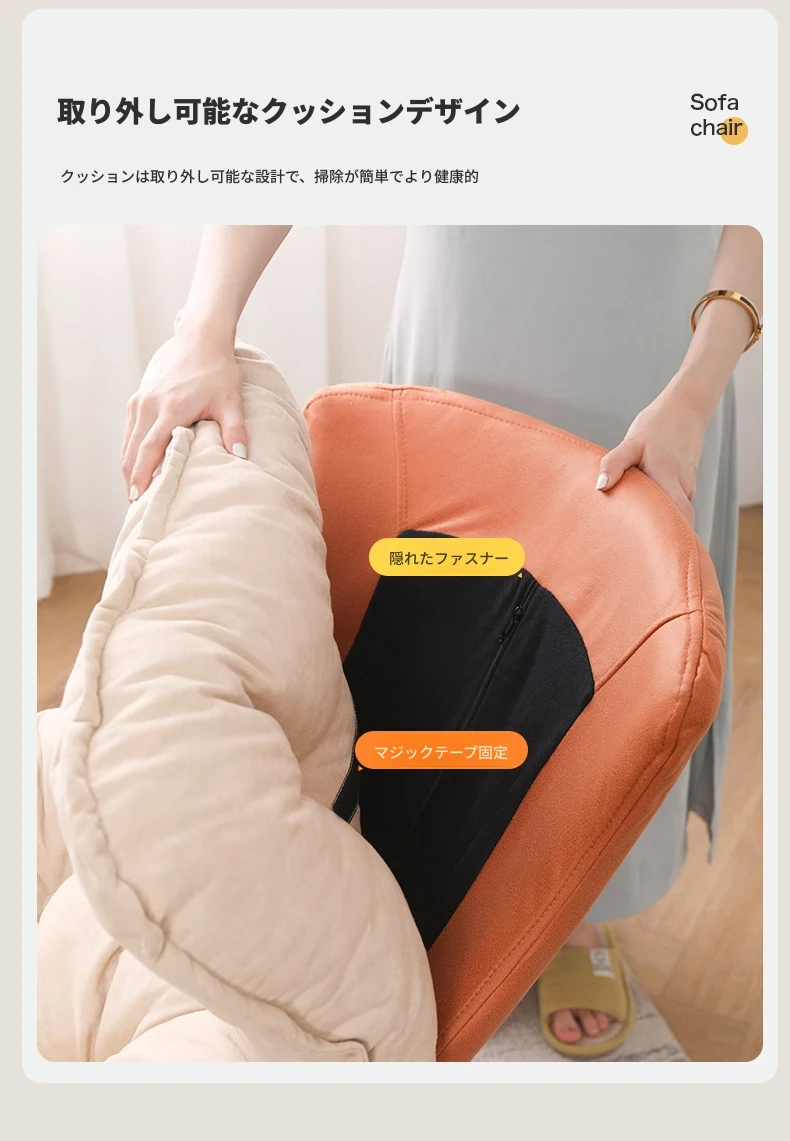 【豪華な無垢材脚品質版ベルベット金色脚】オレンジとホワイト